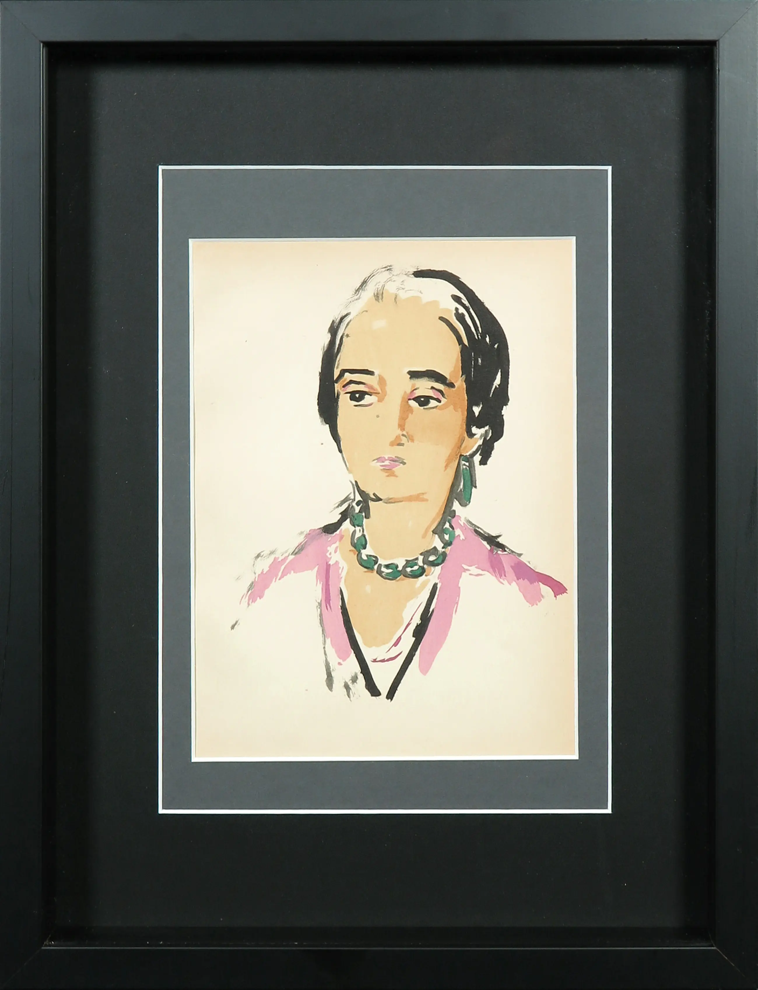 Ongesigneerd pochoir, getiteld Tête de femme, uit de in 1925 verschenen uitgave van Edouard des Courières over Kees van Dongen. De uitgave was getiteld: 'Van Dongen'.