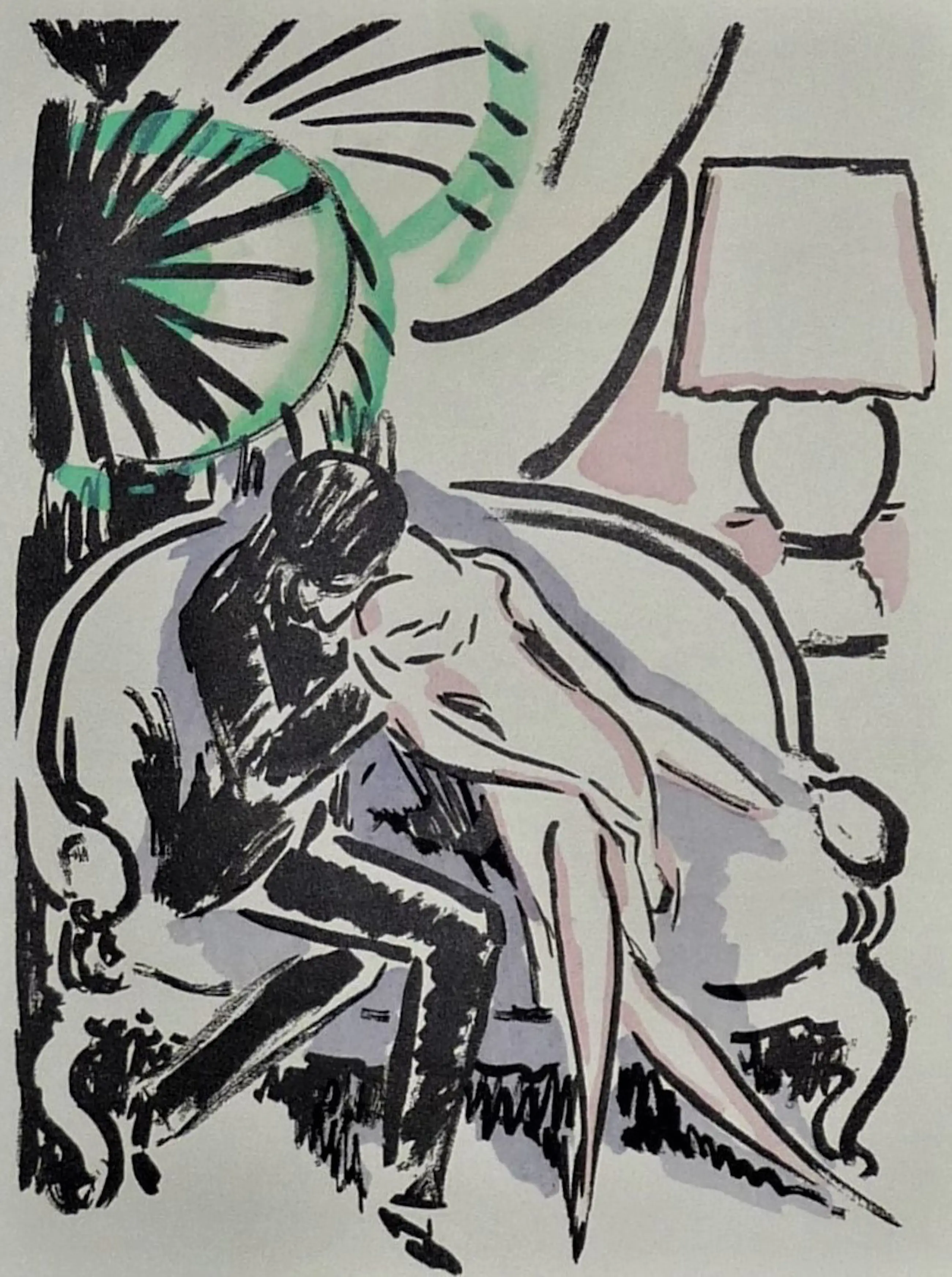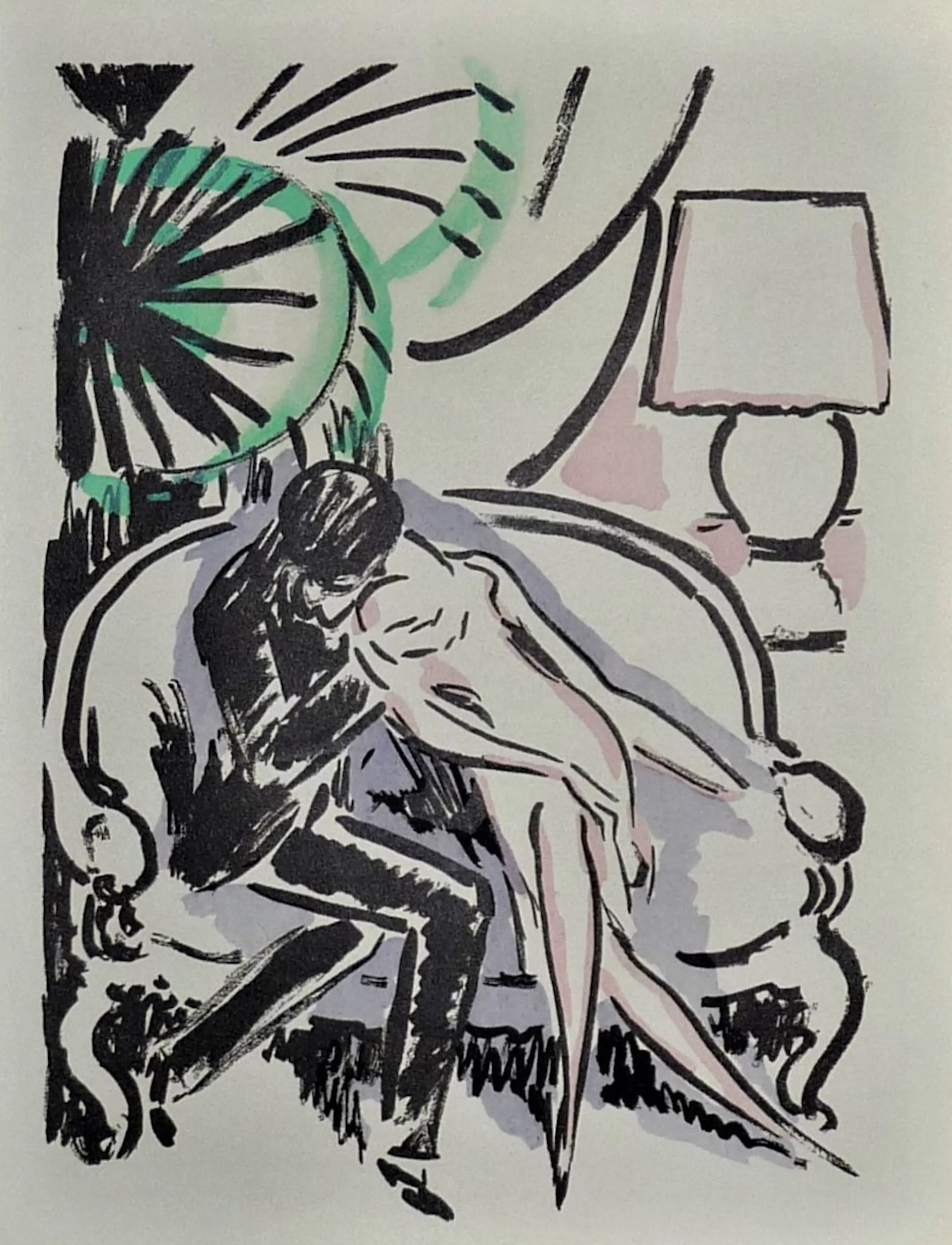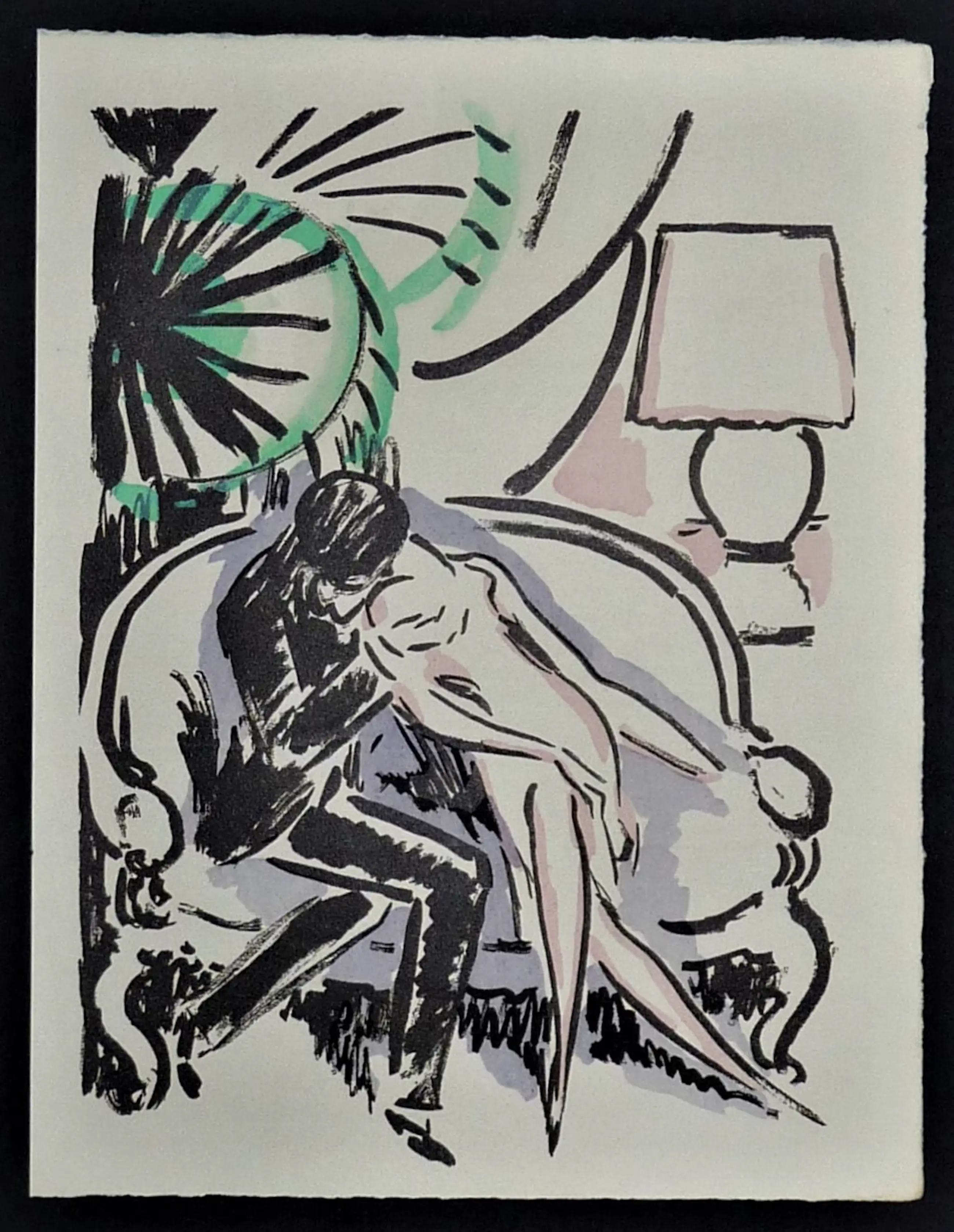 *Originele grafiek van Kees van Dongen in de fraaie pochoirtechniek uit het boek La Garconne van Victor Margueritte uit het jaar 1925. Terug te vinden in het overzichtsboek - Het grafisch werk - blz. 122-125 van Jan Juffermans over Kees van Dongens grafisch oeuvre.