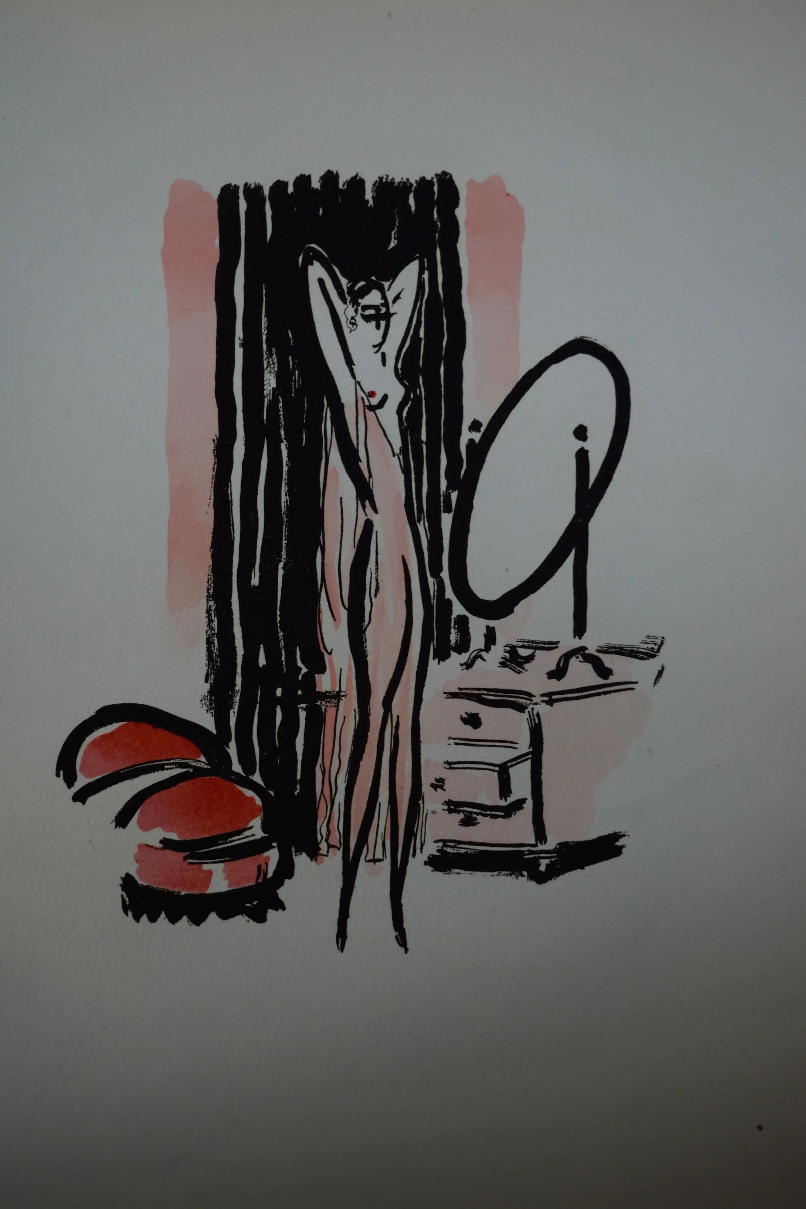 Deze afbeelding gaat over een dame die zich aan staat te kleden om naar een feestje te gaan. Eric Clapton zal er 60 jaar later nog een liedje over schrijven. You look wonderful tonight.