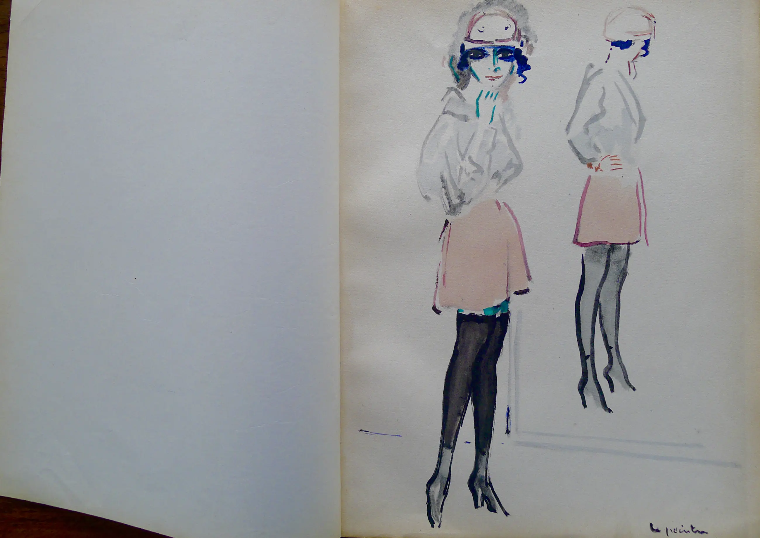 Druk gesigneerd met : 'le Peintre'. Uit het boek : 'van Dongen ' van Edouard des Courières. Zie bladzijde 136 en 137 van : 'Juffermans' (foto 3 en 4 ). 'Croquis' is een van de 8 pochoirs zie foto's. Schutblad zit nog aan deze pochoir vast. Kleuren zijn helder , want niet aan de buitenlucht blootgesteld.