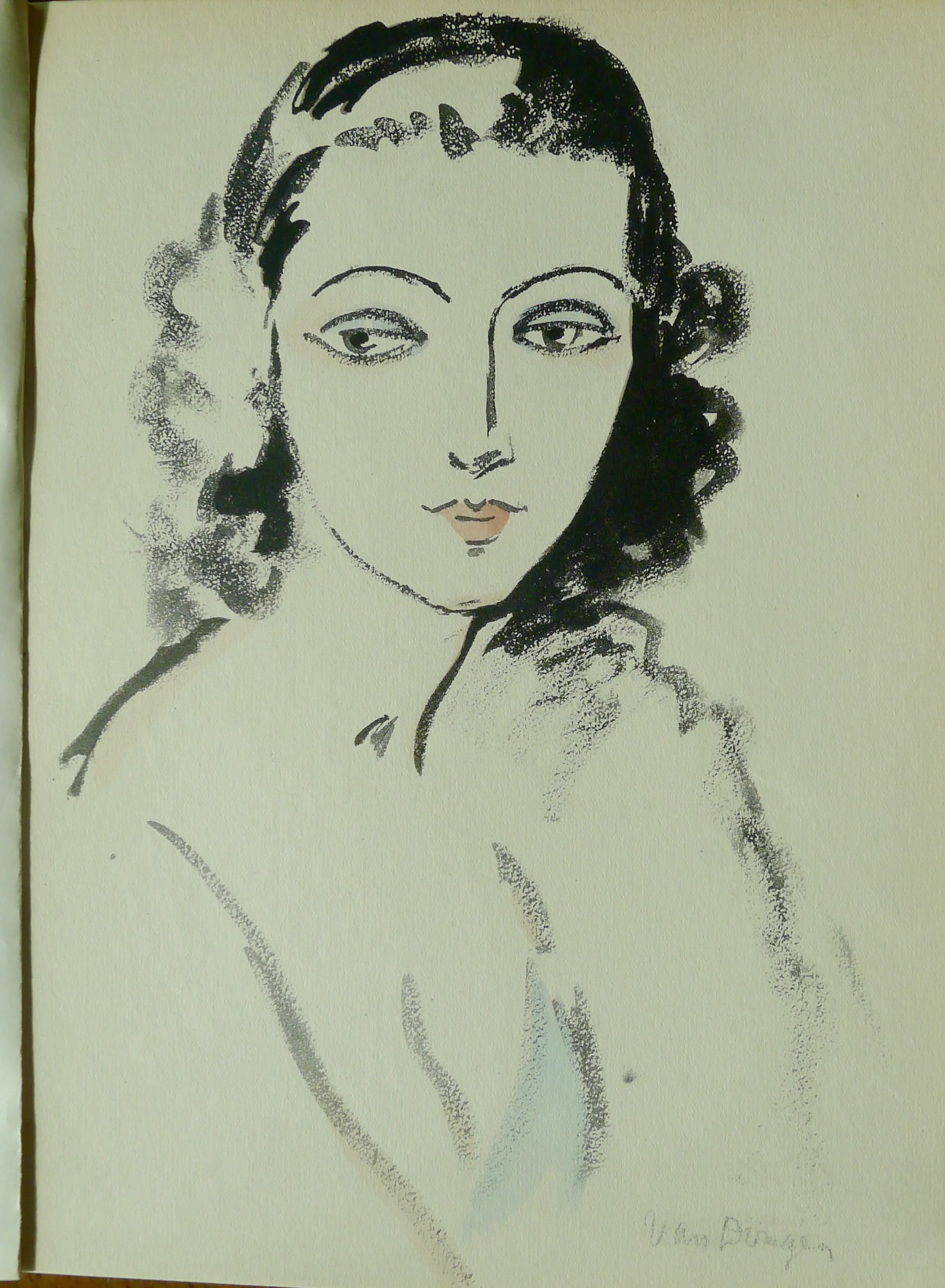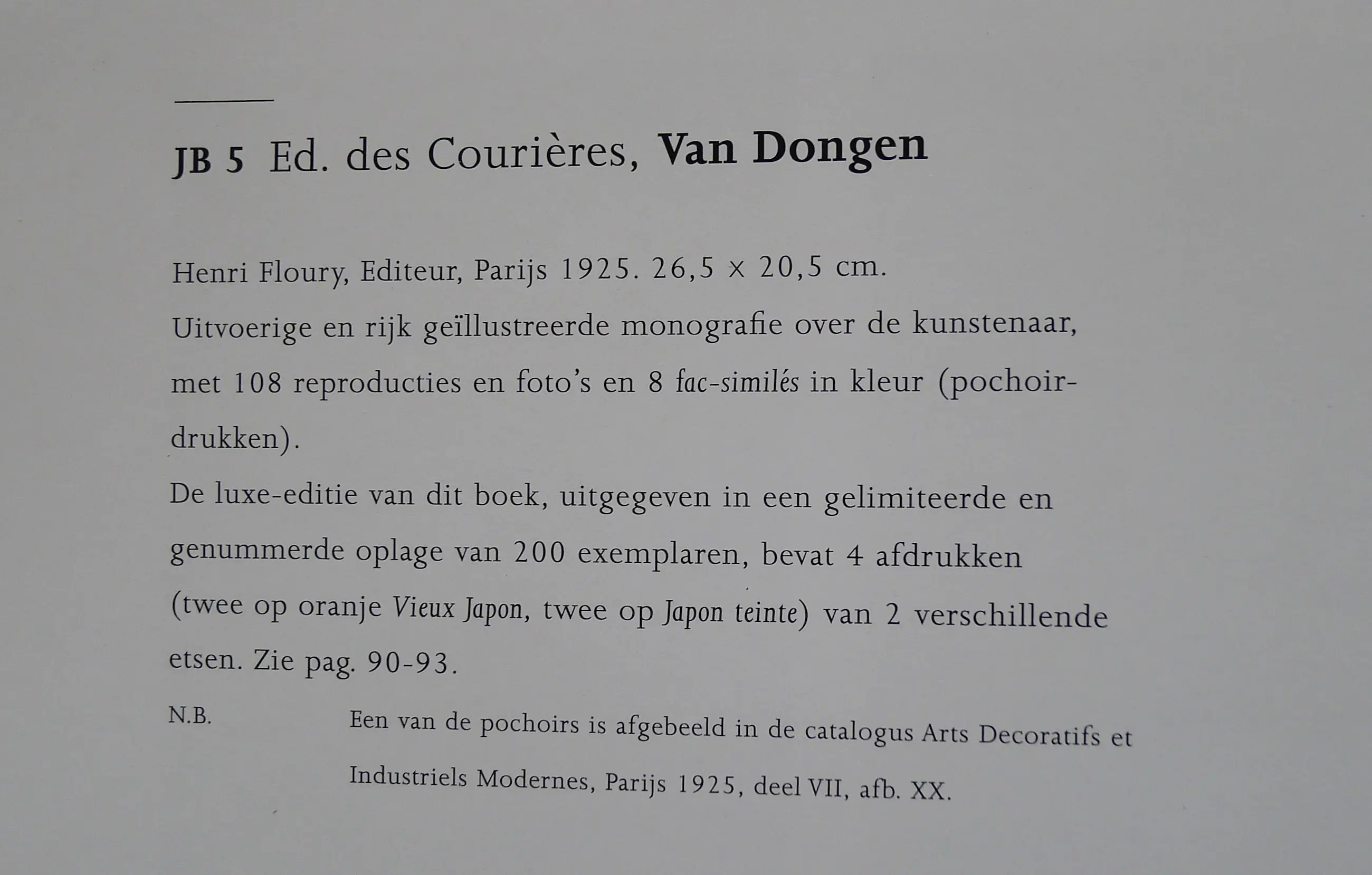 Een van de 8 pochoirs uit : 'van Dongen', biografie door Edouard des Courières uit 1925. Bladzijde 136 en 137 van : 'Juffermans' toont beschrijving van dit boek(zie foto 5 en 6). Met 'Jeune femme au chien 'en 'Colère' de drie populairste van de 8. Het originele schutblad zit nog aan pochoir vast(foto 4).