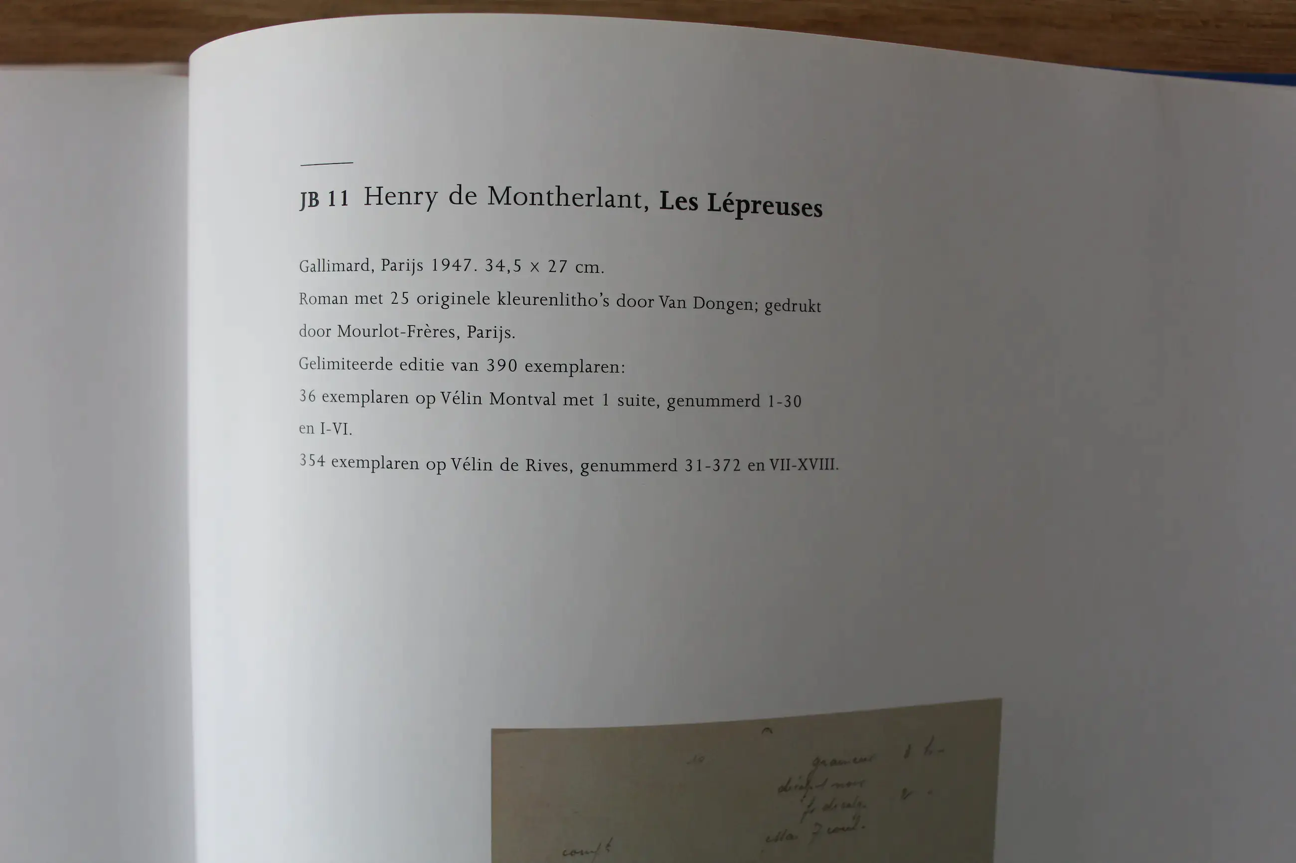 Dit betreft nummer :154, op Vélin de Rives B.F.K. papier. In totaal zijn er op dit papier 354 exemplaren uitgegeven ( 342 genummerde exemplaren en 12 Horse commerce exemplaren). De totale oplage bedroeg 390 stuks.