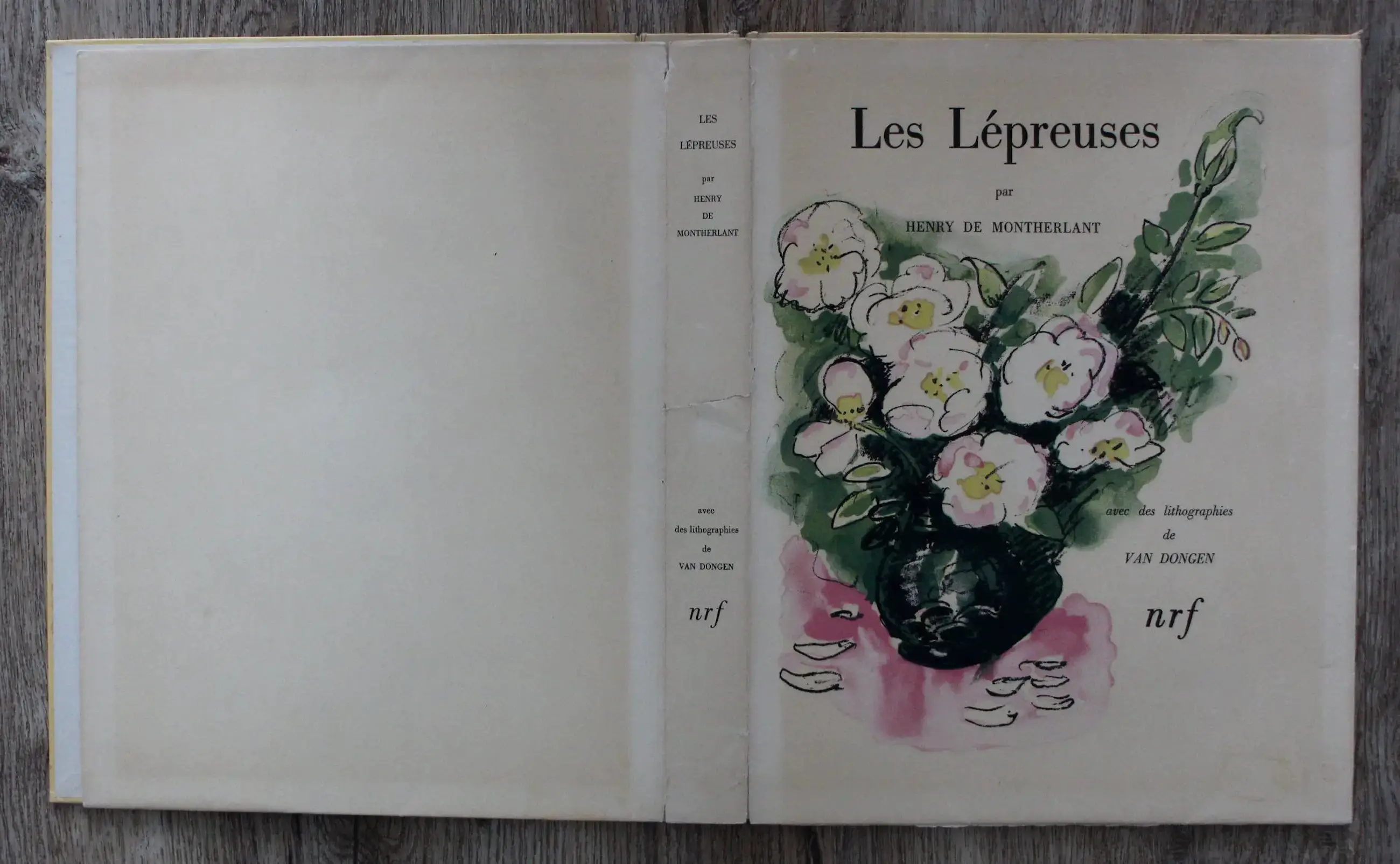 Roman met 25 originele kleuren litho's van Kees van Dongen, gedrukt door Mourlot-freres, Paris. Titel: Les Lepreuses. Jaar: 1947. Afmetingen map: H34 x b26cm. Afgebeeld in Juffermans 'Kees van Dongen, blz 143,nummer : JB11. Zie foto. Het boek wordt niet meegeleverd.