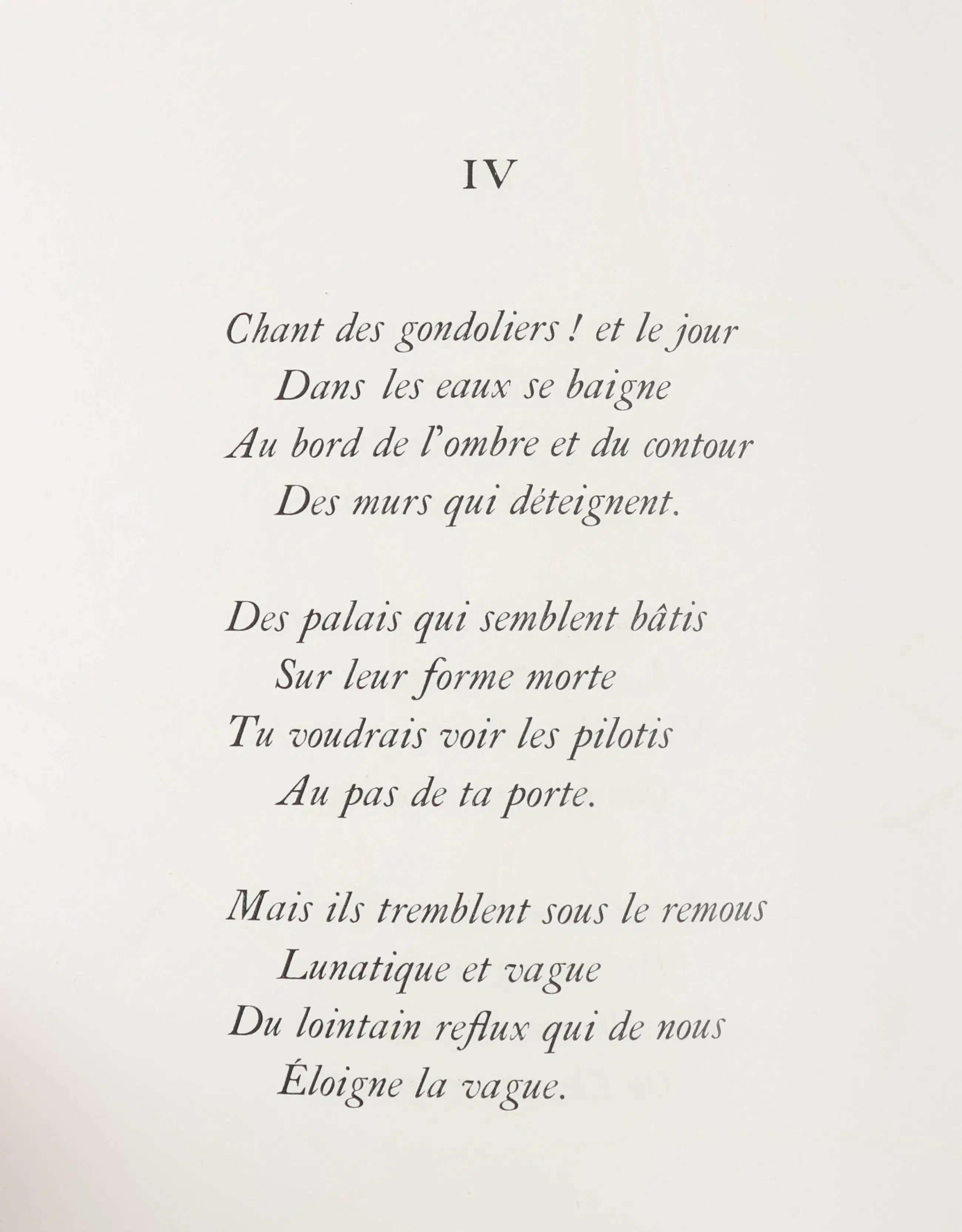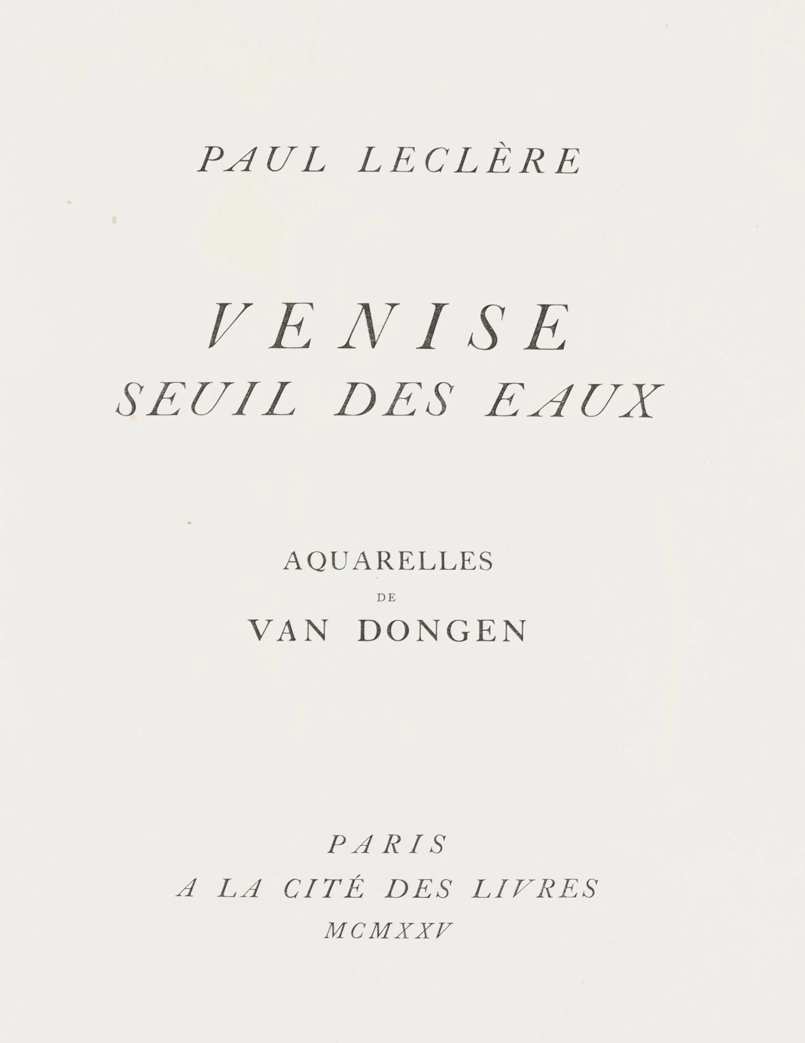 Venise is een poëtisch kunstboek geschreven door Paul Leclère en uitgegeven in 1925 in een gelimiteerde oplage van 316 exemplaren, waarvan dit exemplaar nummer 61 is. Het werk behoort tot de fraai vormgegeven Franse kunstuitgaven uit het begin van de twintigste eeuw en is bijzonder geliefd onder verzamelaars.