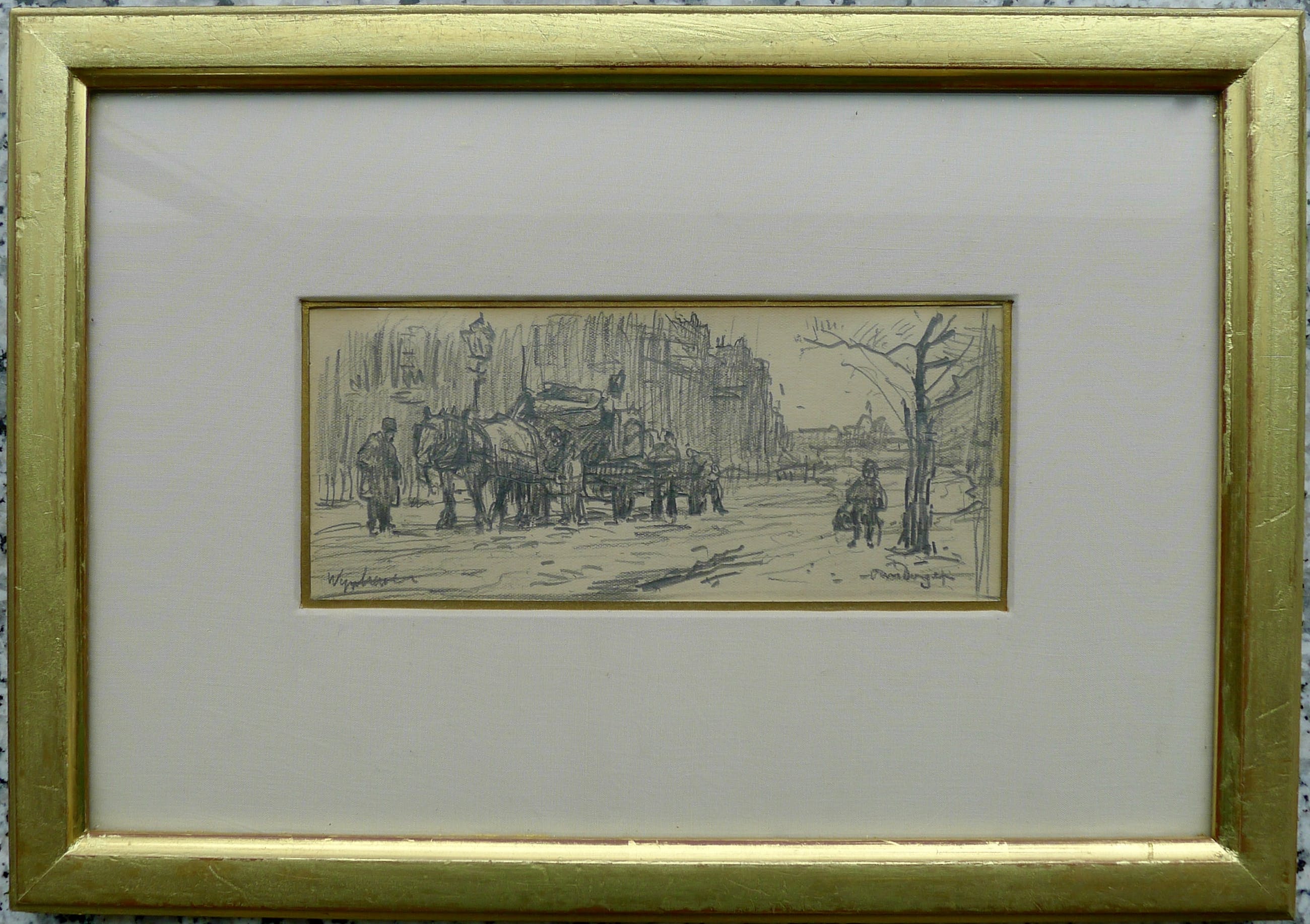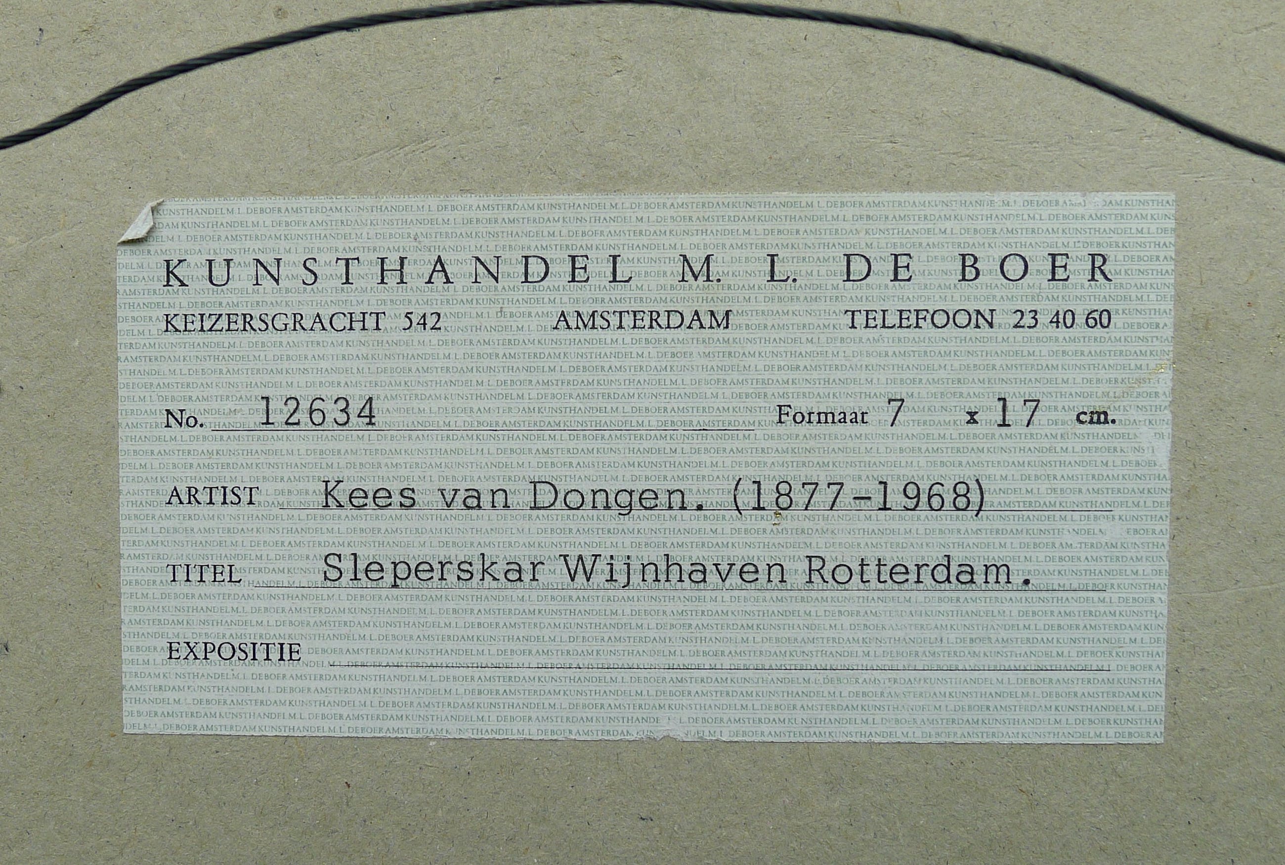 Voordat Van Dongen naar Parijs vertrok(1897) zat hij op de kunstacademie van Rotterdam. Uit die tijd dateert waarschijnlijk deze houtskool tekening . Hij liet zich door taferelen in Rotterdam inspireren zoals hier de 'Wijnhaven'(foto 5). Provenance o.a. foto 4. Stoffen passe-partout en gouden randje extra( zie foto's).