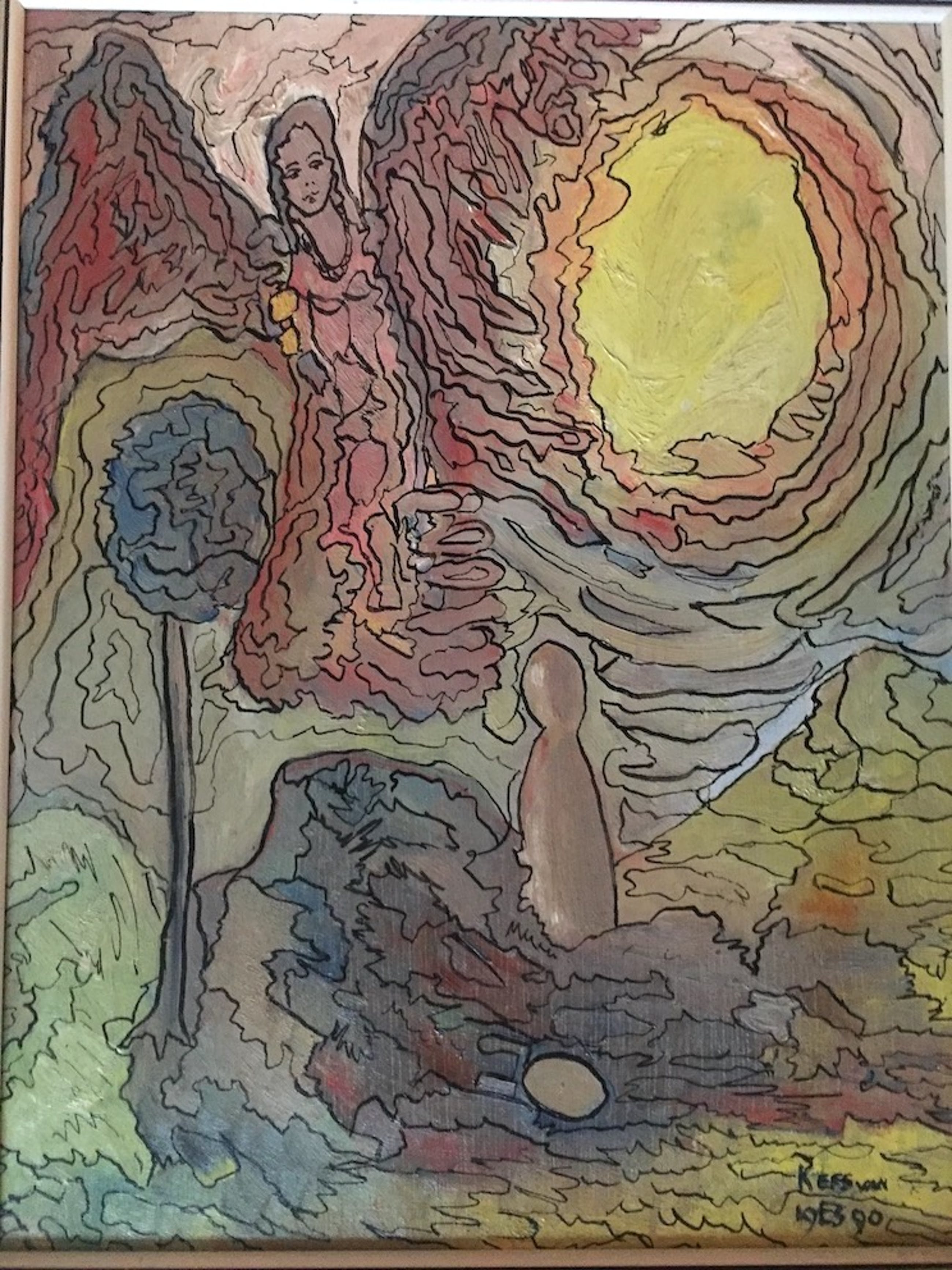 A2 23 Kees van Es Landschap met Engel Olieverf op paneel 1990 50 x 40 cm