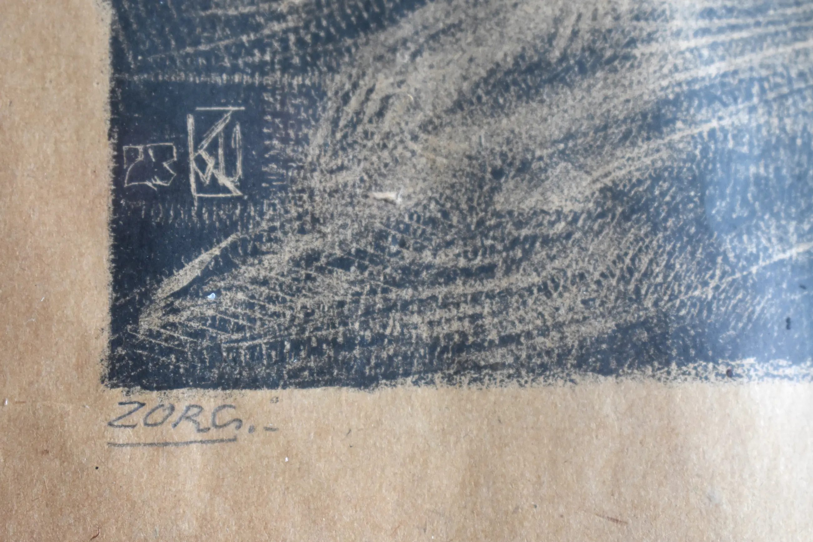 Dit werk is nog oorspronkelijk ingelijst, lijst is heel, werk is gesigneerd, benoemd , gedateerd en gemonogrammeerd en in goede conditie.