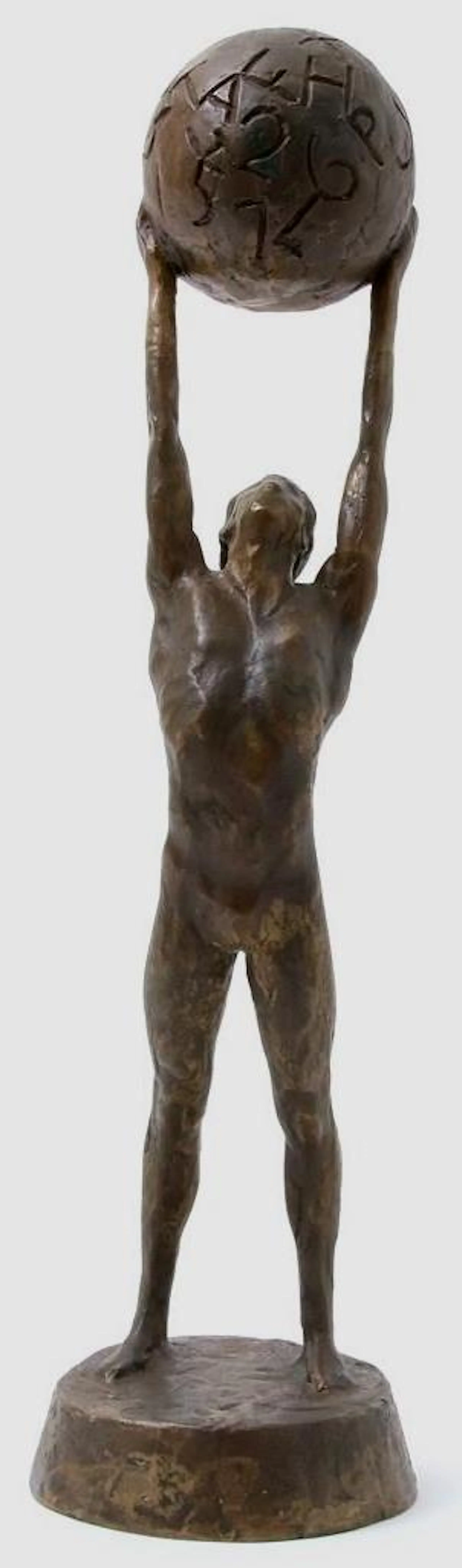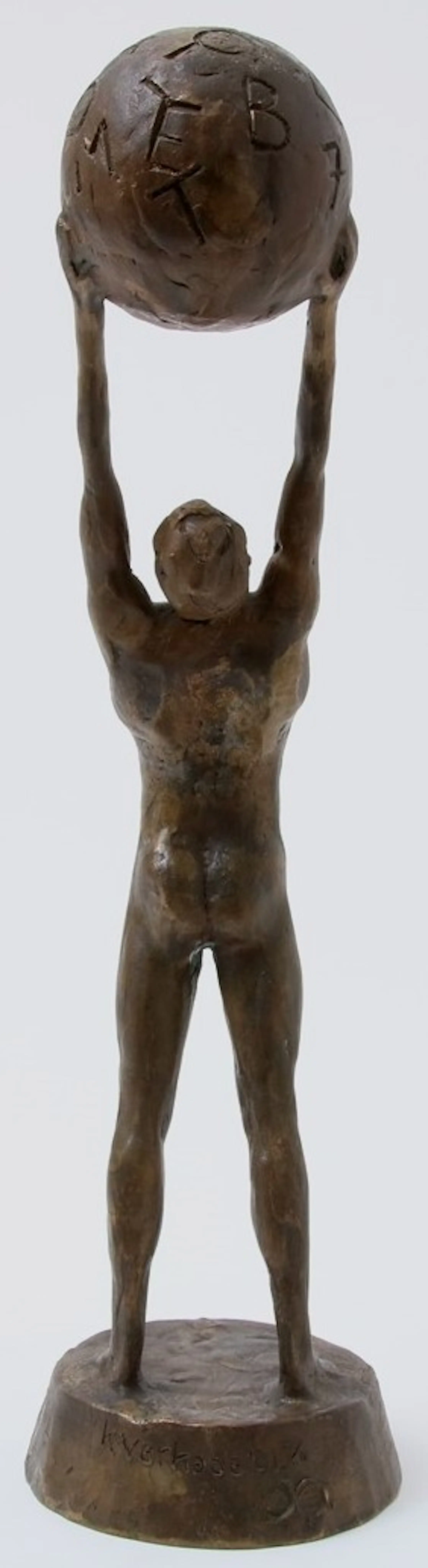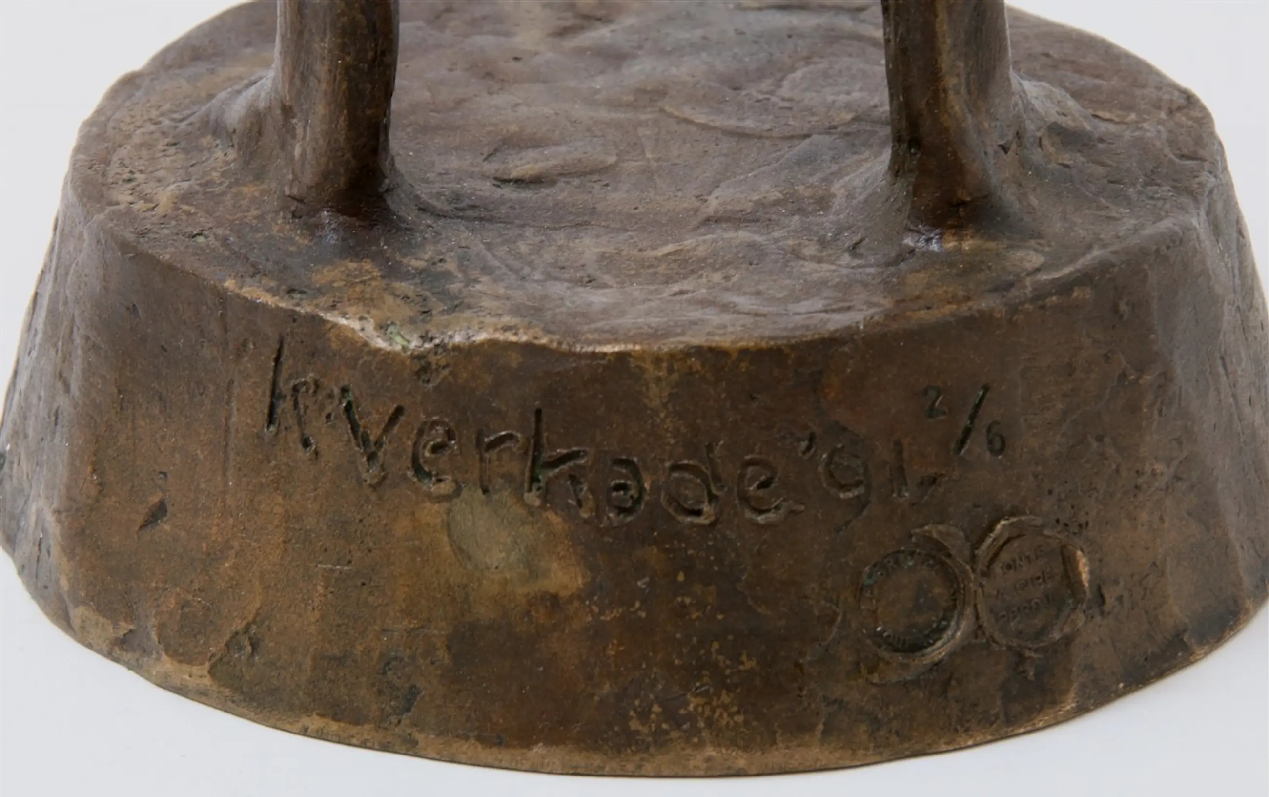 Bronzen sculptuur van Kees Verkade. Titel: "Trophée des chiffres et des lettres". Jaar: 1991. Oplage: 2/6. Afmetingen beeld: H48.5cm. Het beeld is, midden achter, gesigneerd en voorzien van een stempel van gieterij Le Bronze Tourrettan, cire perdue. De authenticiteit van het aangeboden werk wordt volledig gegarandeerd. Een certificaat van echtheid kan, op aanvraag, worden gemaild.