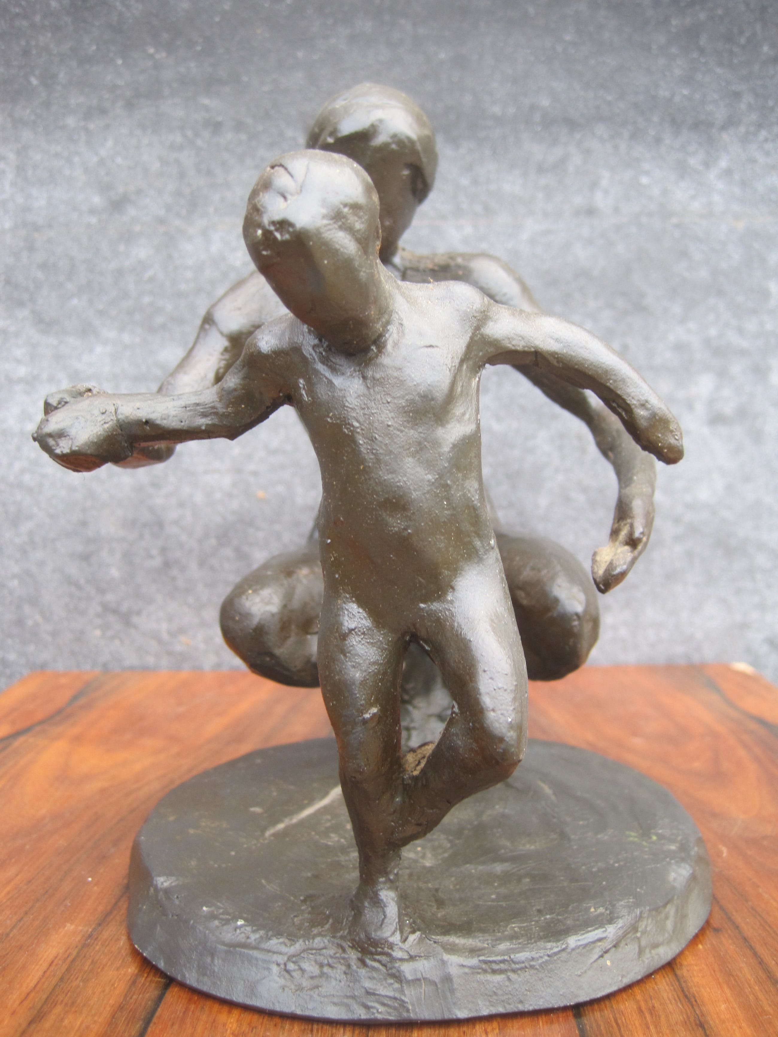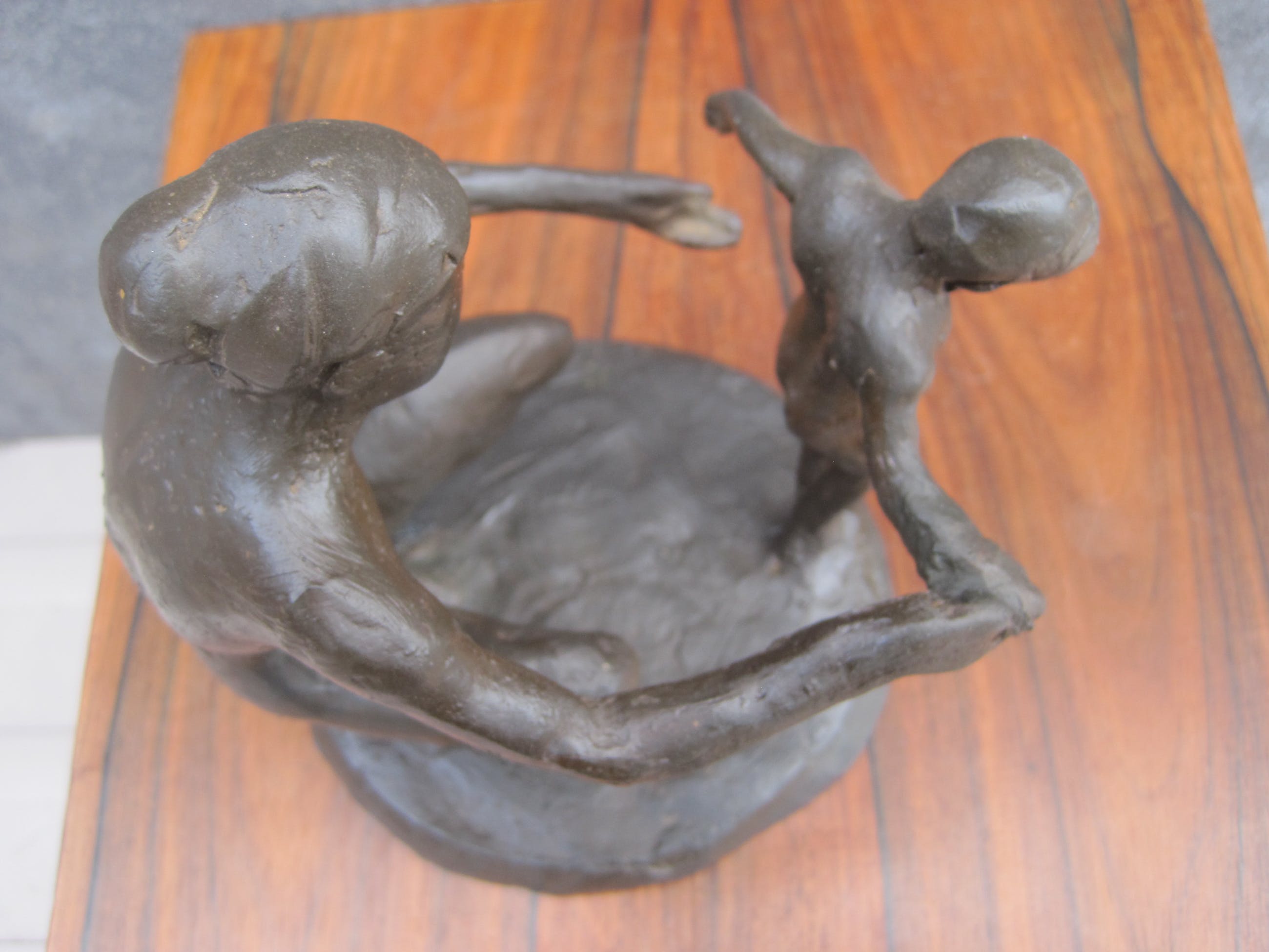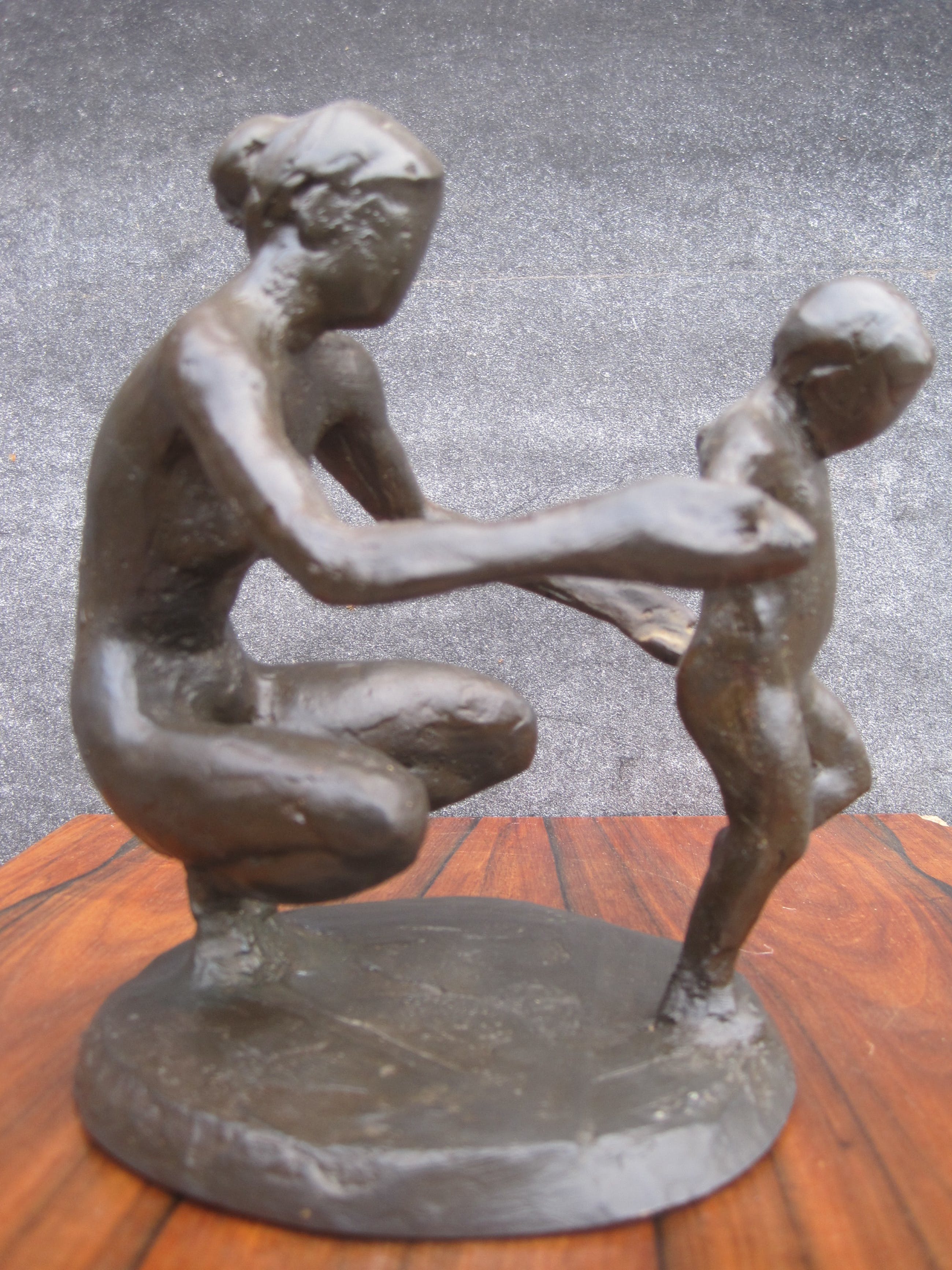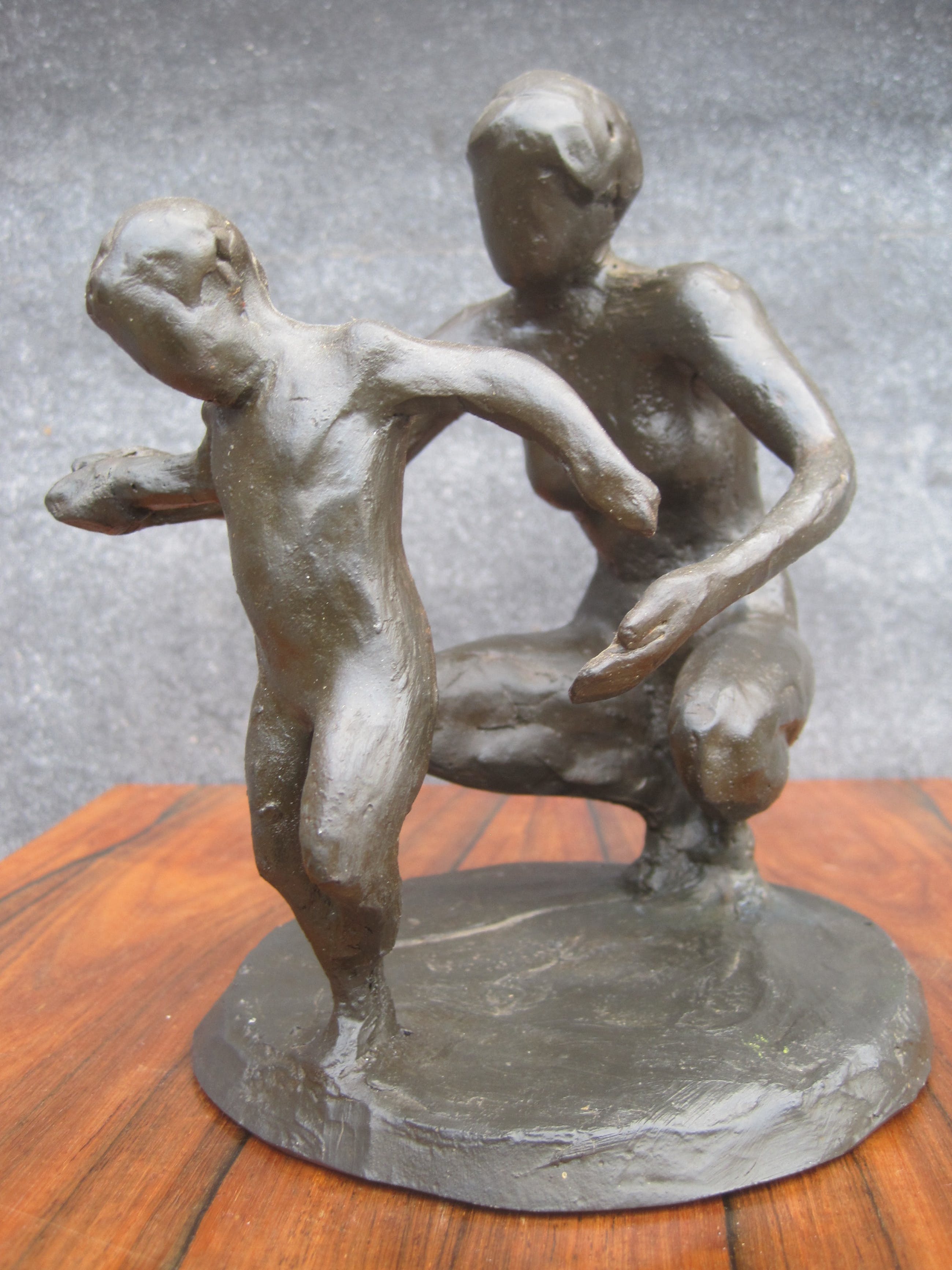 Kunststenen sculptuur "De eerste stap" / "Le premier pas". In 1987 heeft Kees Verkade in opdracht van AMRO Bank een bronzen sculptuur ontworpen en vervaardigd; "De eerste stap" / "Le Premier Pas" Dit sculptuur is vervolgens in gelimiteerd aantal in kunststeen uitgevoerd. Dit verbeeldt de ouderzorg voor het jonge kind bij de eerste, aarzelende stappen in het leven.