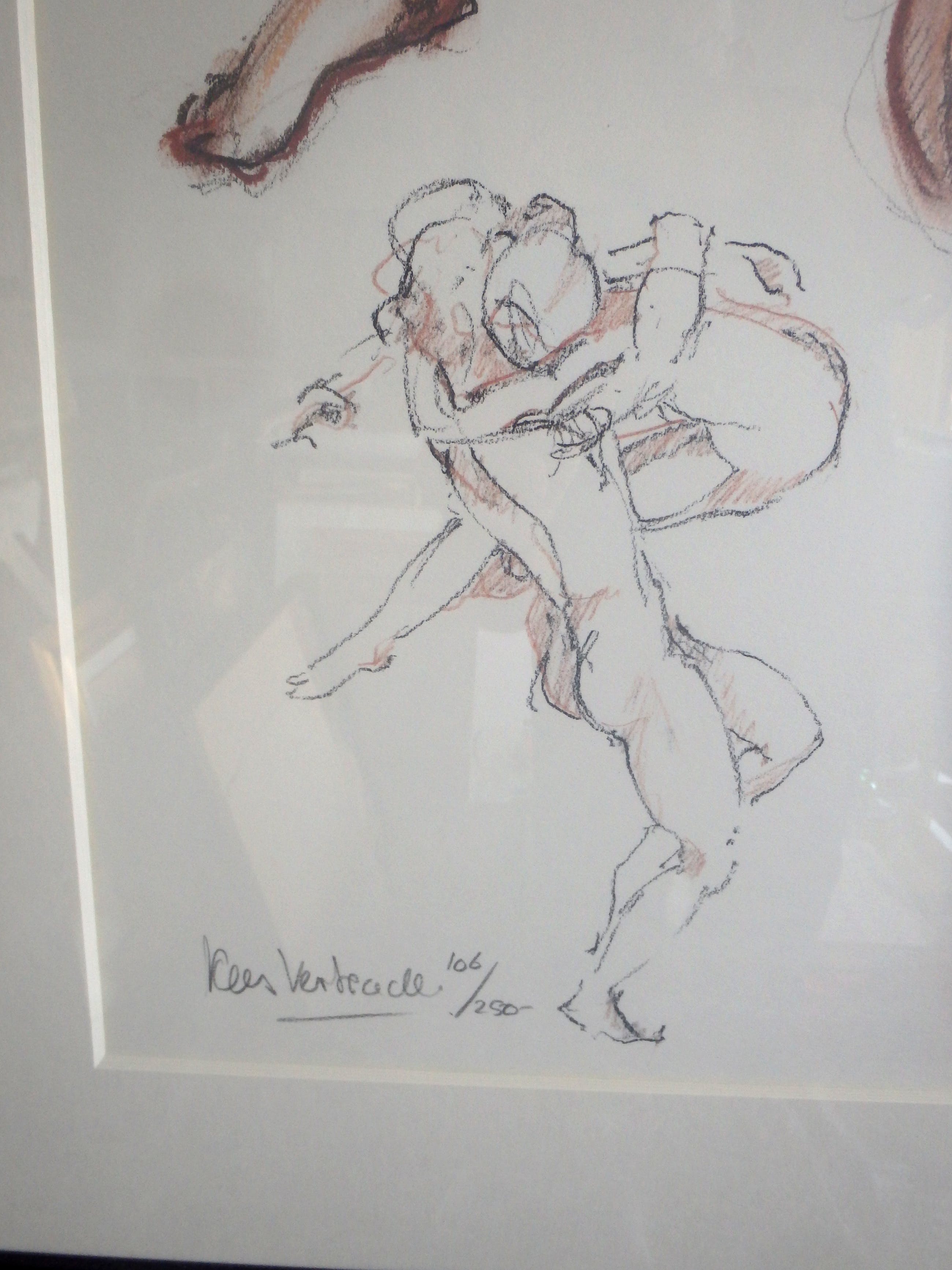 Kleurenlitho genummerd 80/200, met potlood gesigneerd Kees Verkade. heel mooi ingelijst in zwart metalen lijst.