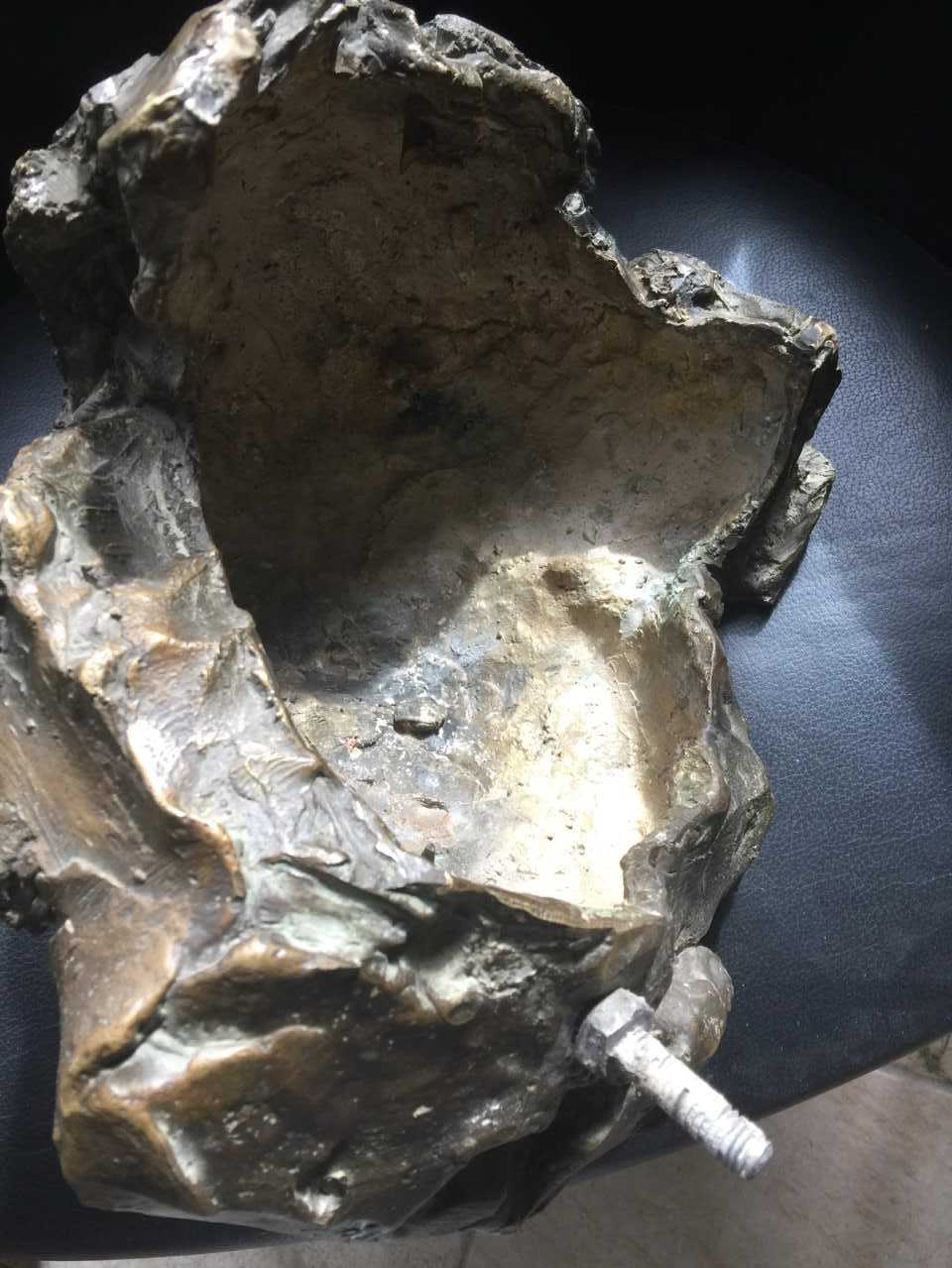 Ca. 30 x 28 x 25 cm., ongeveer 15 kilo zwaar, afgebeeld in het boek Kees Verkade Beeldhouwer (p. 26).