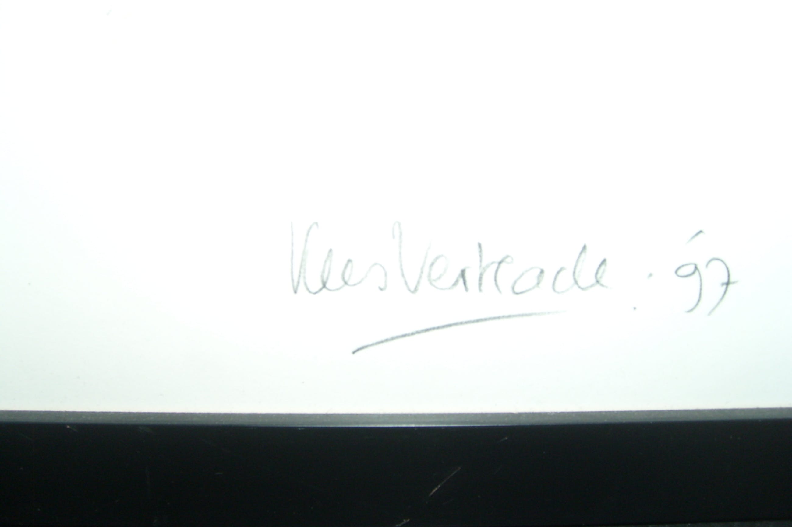 gesigneerd '97 / afm. excl. houten zwarte lijst met glas / 72 cm x 72 cm.