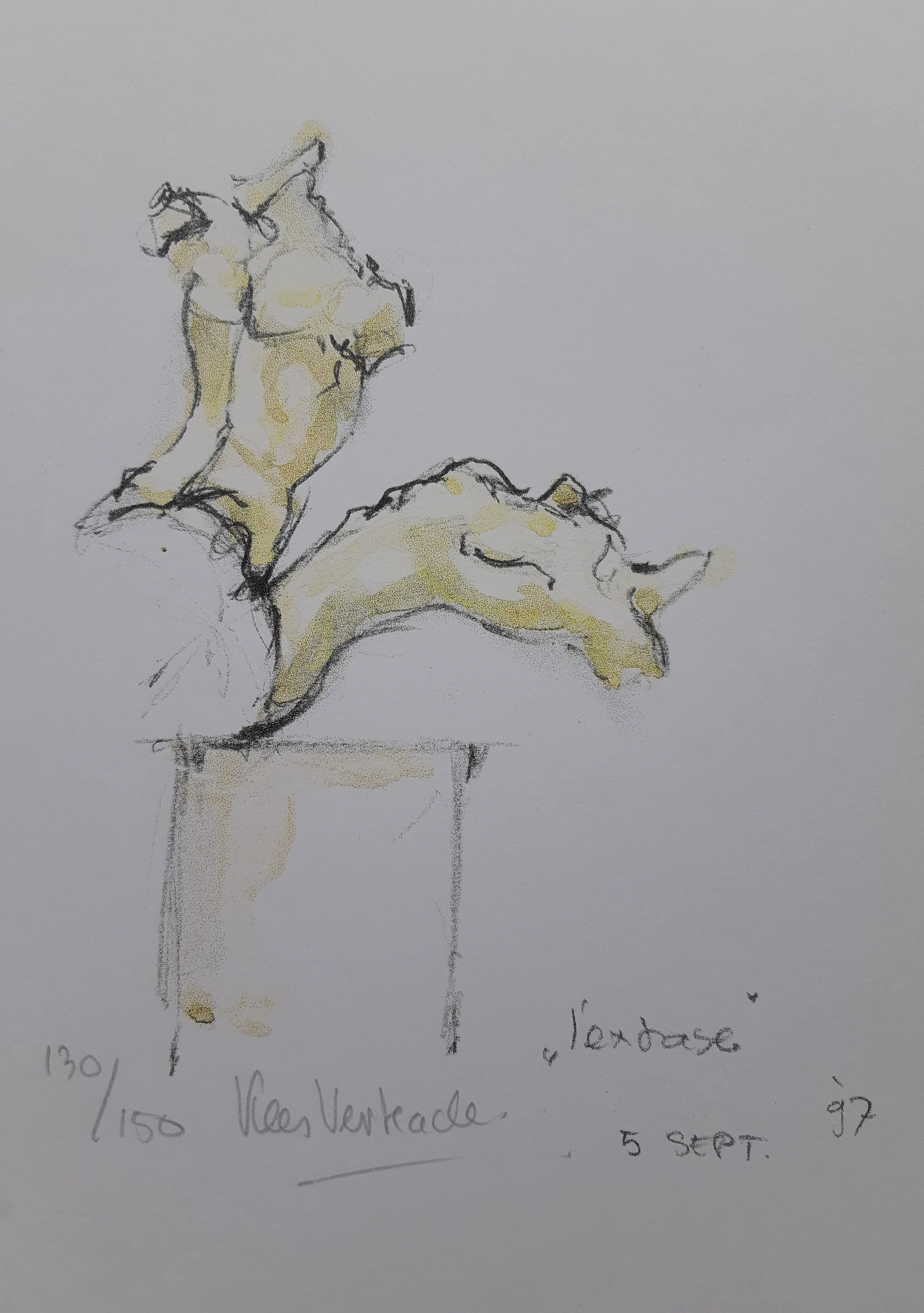 Fraaie litho van de internationaal vermaarde beeldhouwer Kees Verkade. Met potlood gesigneerd en genummerd. Titel en jaartal op de steen. De litho is in nieuwstaat.