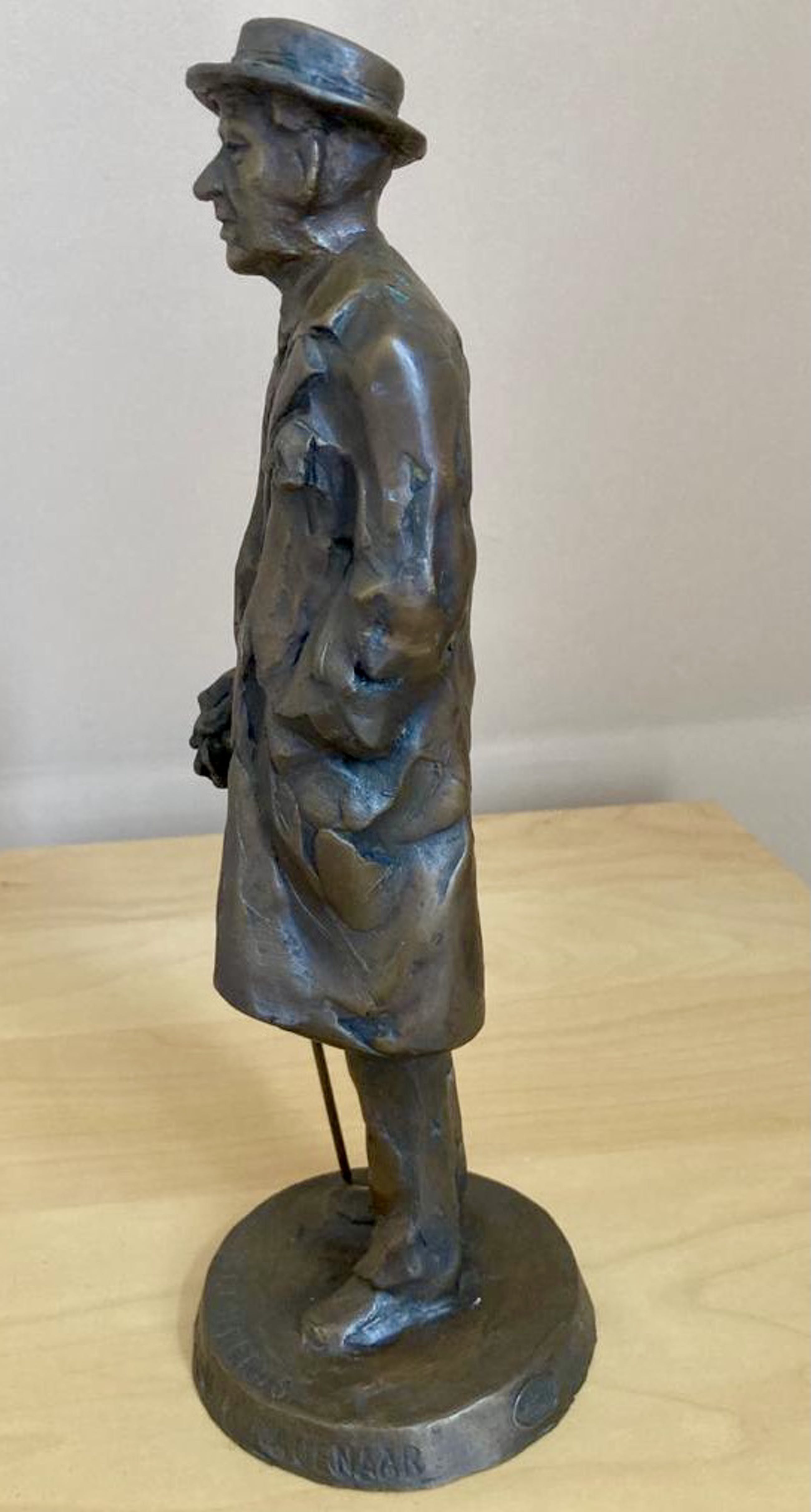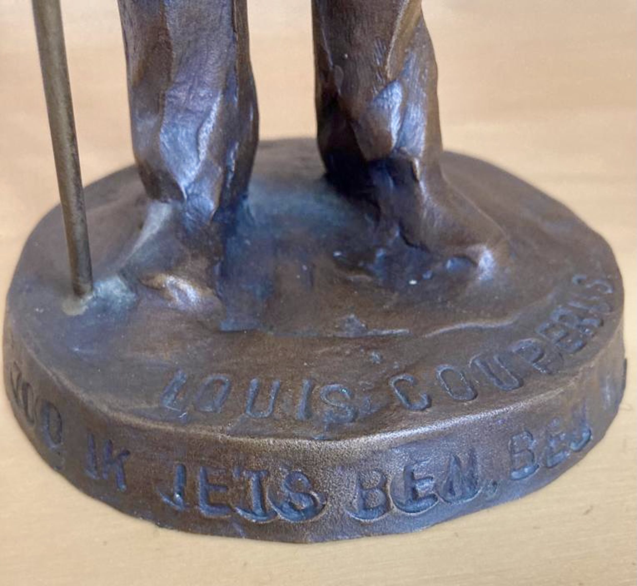 Bronzen beeld van de schrijver Louis Couperus. Miniatuur van het fameuze beeld dat geplaatst is aan het Lange Voorhout in Den Haag. Gegoten bij Venturi Arte in Bologna. Voorzien van datum, oplage en gietersstempel. In de voet staat het citaat "Zoo ik iets ben, ben ik Hagenaar" gegraveerd.