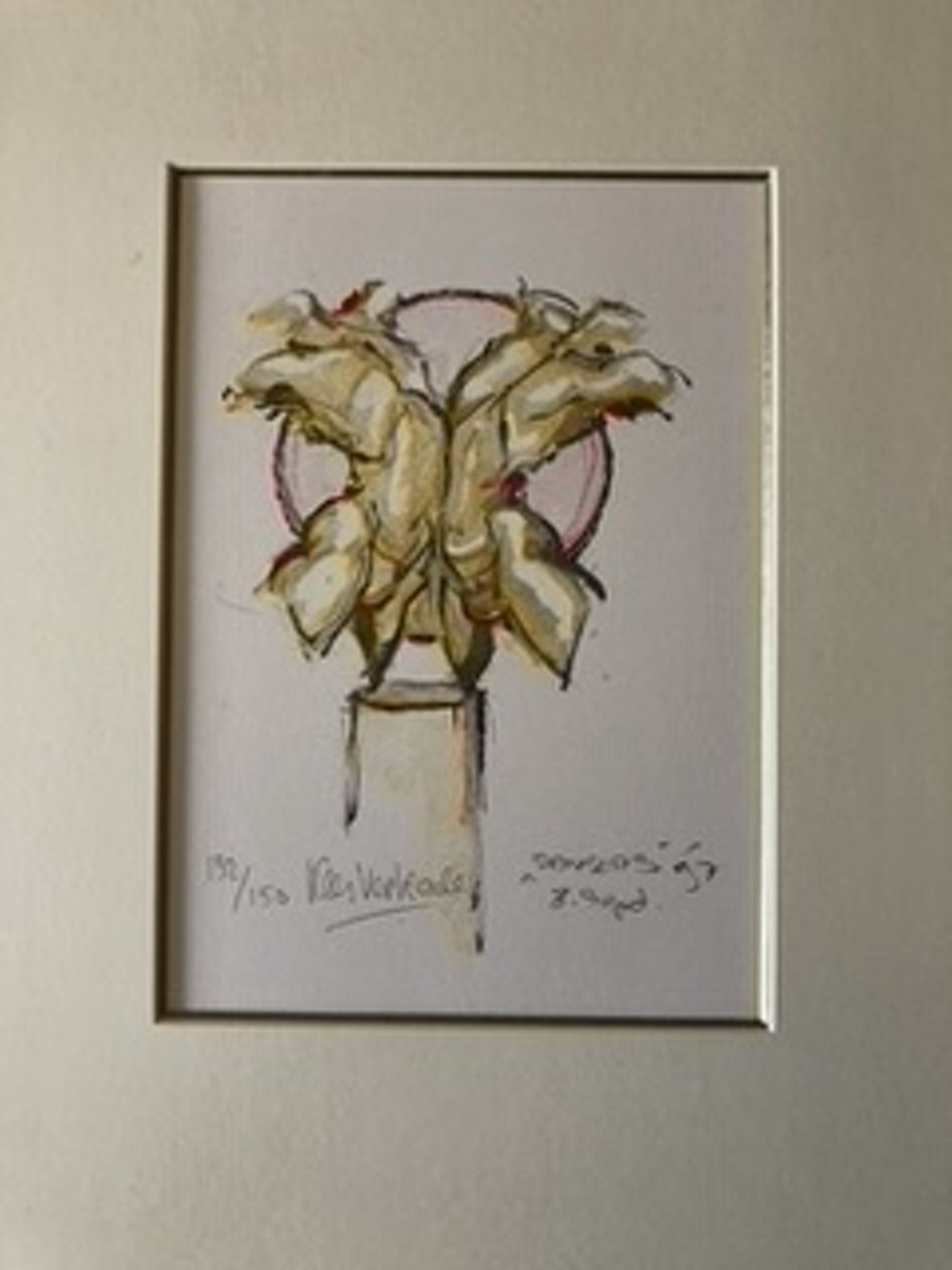 Een fraaie zeefdruk van Kees Verkade uit 1997. Het werk maakt onderdeel uit van een serie van twaalf zeefdrukken nummer 132 van 150. Zie voor de andere werken mijn andere advertenties.