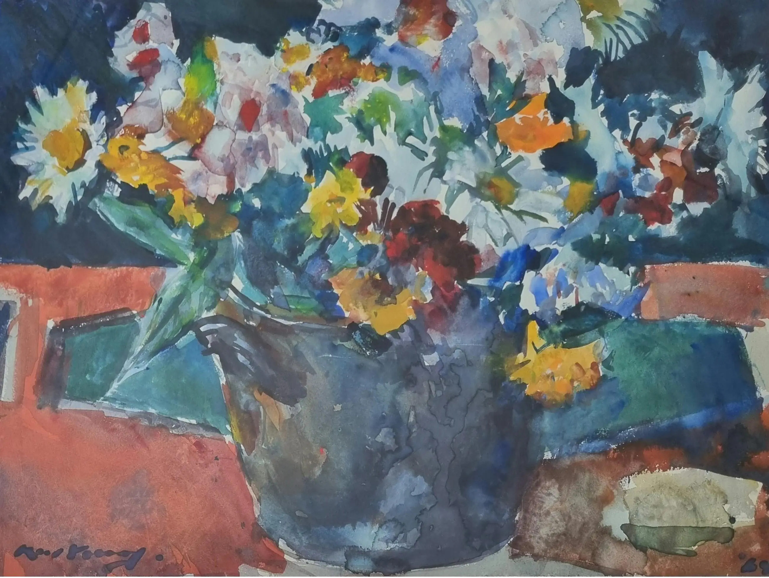 Linksonder gesigneerd. Rechtsonder gedateerd 1964. Aquarel verkeert in een uitstekende staat.