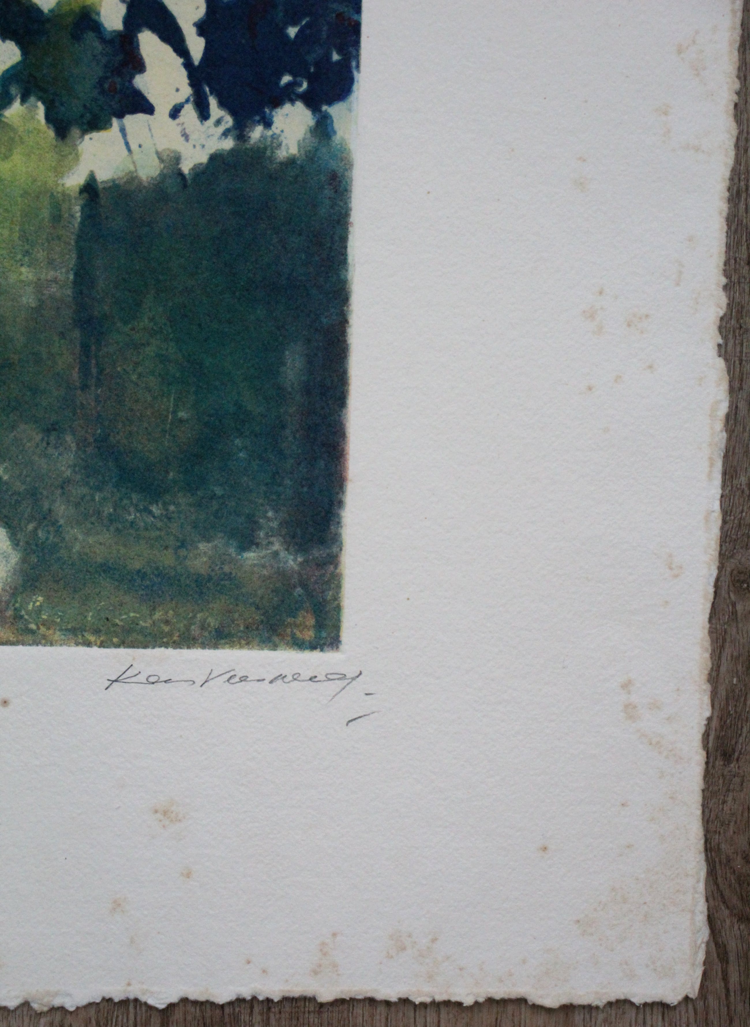 De voorstelling is in goede staat. Op de randen zitten wat oxidatie vlekjes(foxing) en kleine scheurtjes. Goed ingelijst, valt dit in de lijst/onder het passepartout.