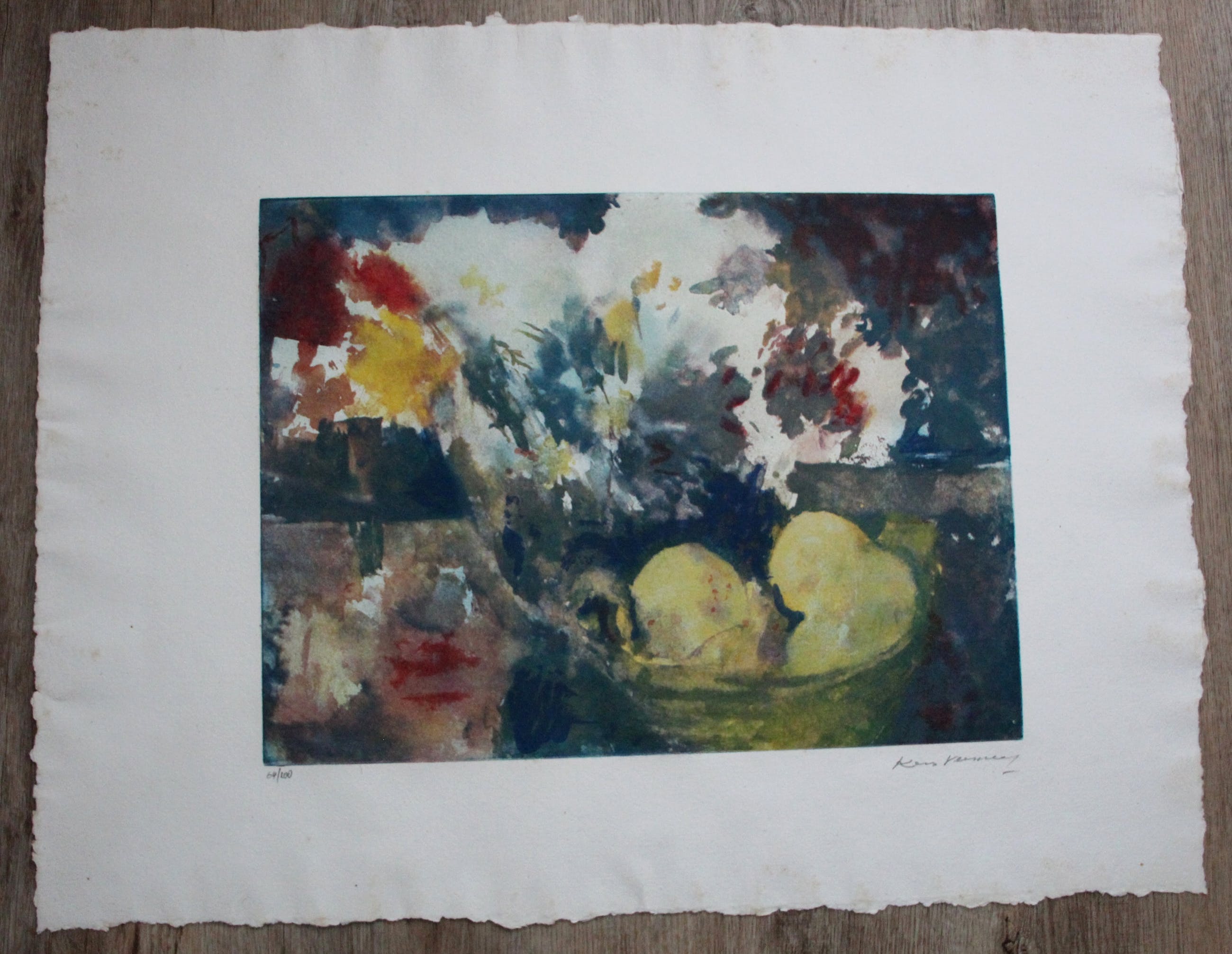 Ets/auatint van Kees Verwey. Bloemstilleven. Nummer: 64/100. Afmetingen blad: H82 x b64cm. Afmetingen voorstelling: H39.5 x b53cm. Het werk is rechtsonder aan gesigneerd door de kunstenaar. De authenticiteit van het aangeboden werk wordt volledig gegarandeerd. Een certificaat van echtheid kan, op aanvraag, worden gemaild.