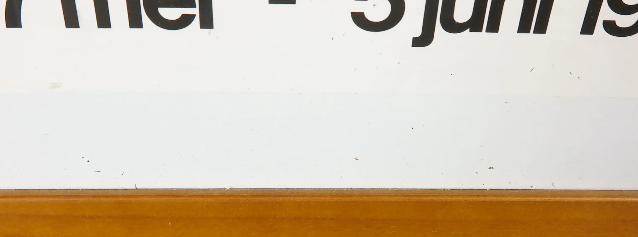 Er zit een vouwlijn aan de bovenzijde van het affiche. Daarnaast enkele vuiltjes achter de (plexi)glasplaat.