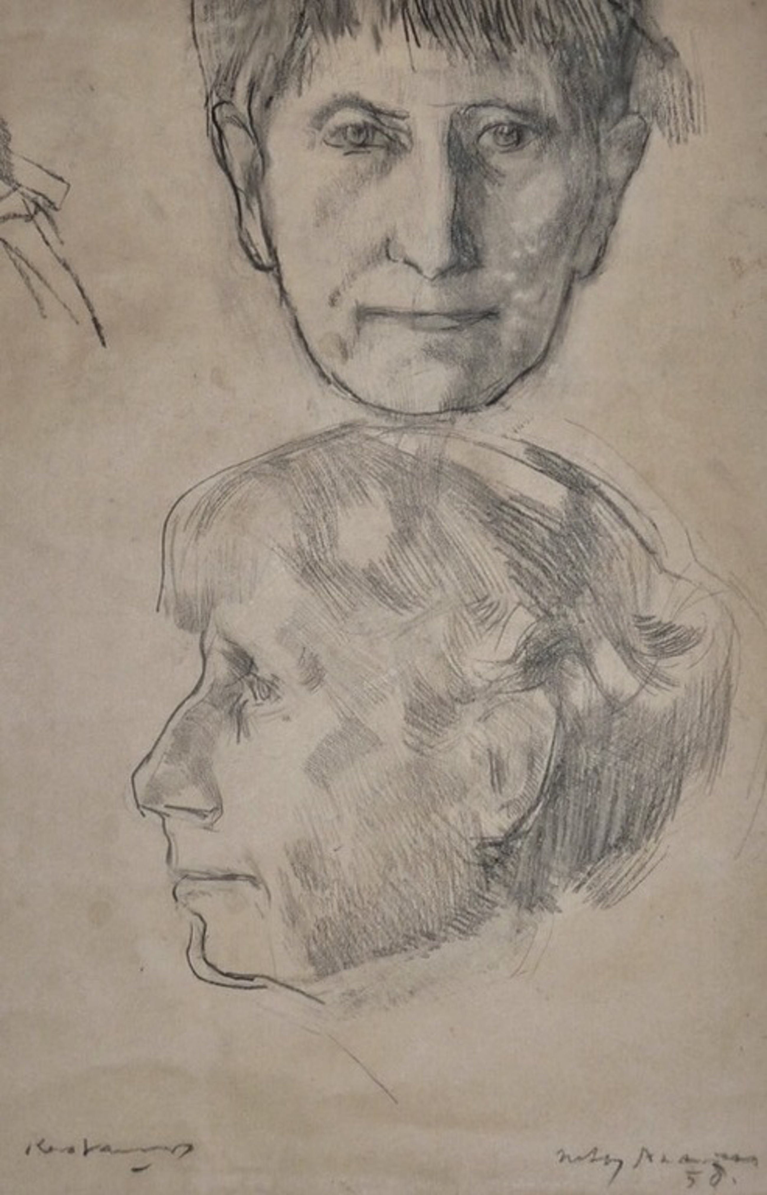 *Fraaie tekening uit het jaar 1958 van de Nederlandse kunstenaar Kees Verwey. Betreft een dubbel vrouwsportret van dezelfde vrouw. Haar naam is rechtsonder door de kunstenaar gezet. Werk is volledig gegarandeerd zijnde van Kees Verwey.