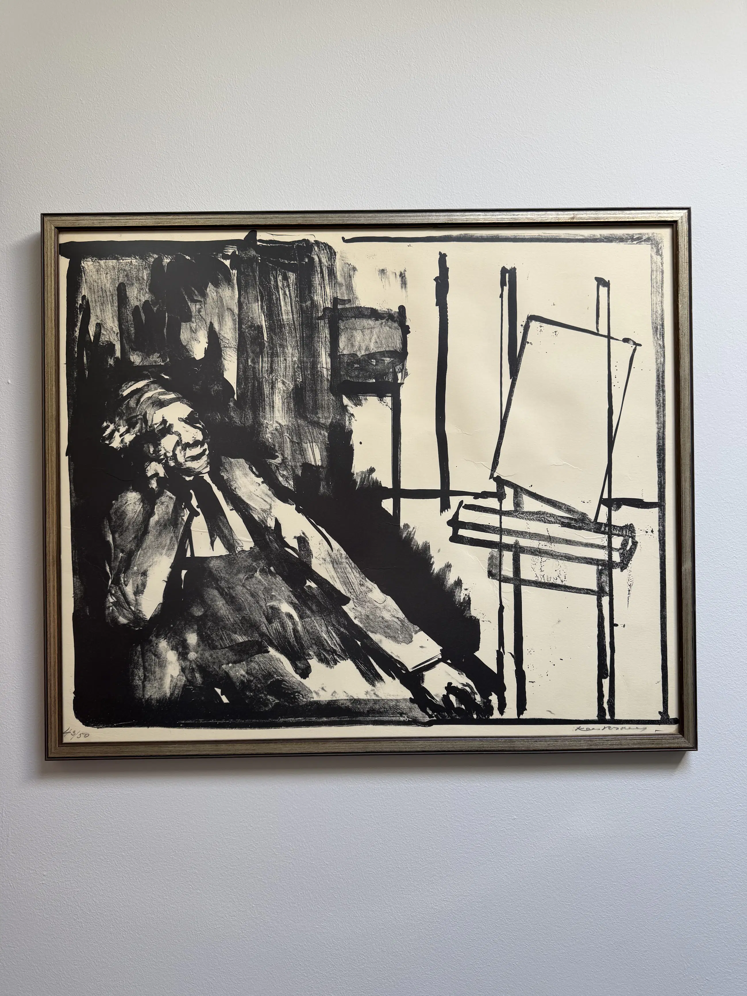 Een litho in oplage 50 en dit is 43, een zelfportret van de kunstenaar, deze is onbeschadigd