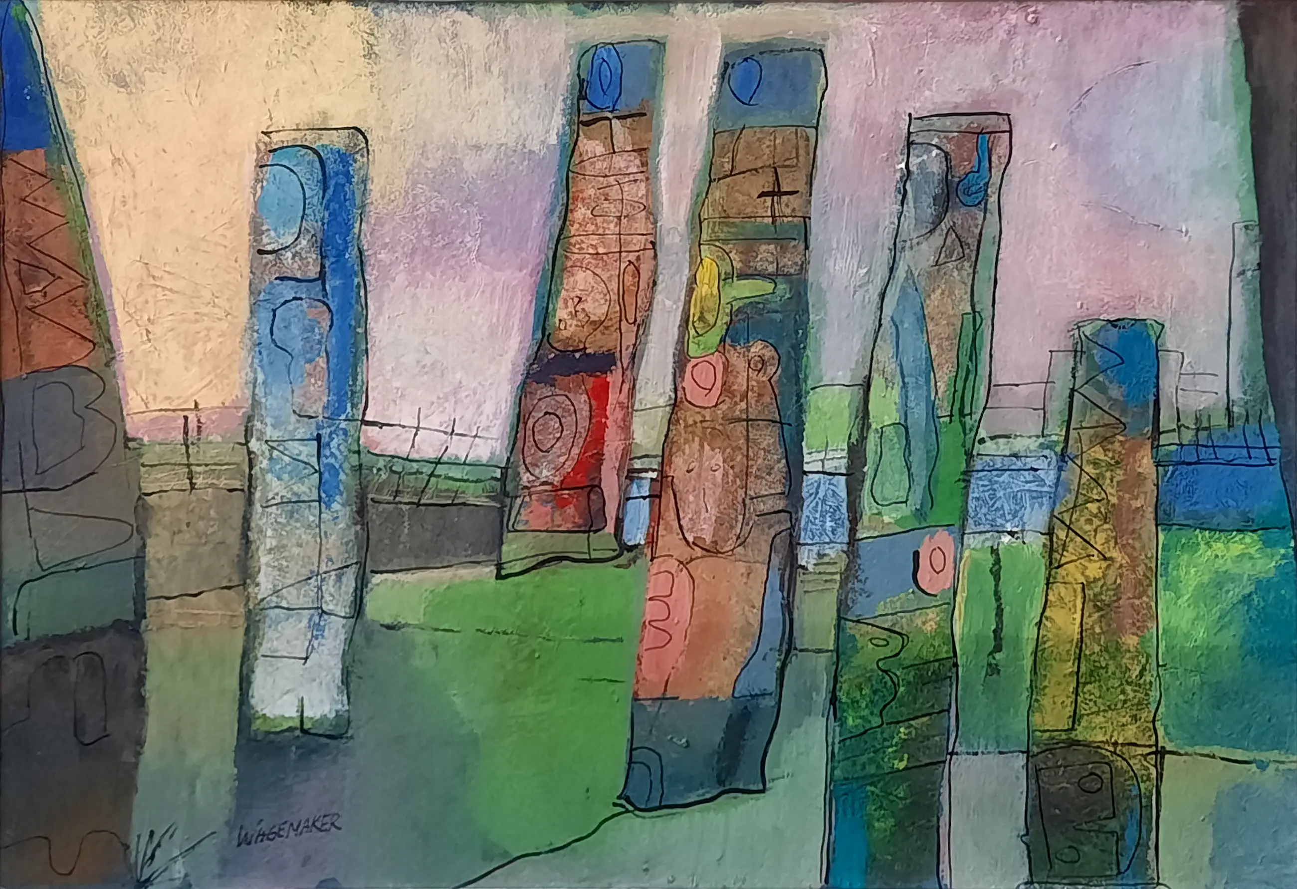 In nette witte lijst achter glas. Uitsnede 42 x 62 cm. Bij verzending wordt het werk verstuurd in een koker zonder lijst. Ophalen verdient de voorkeur.