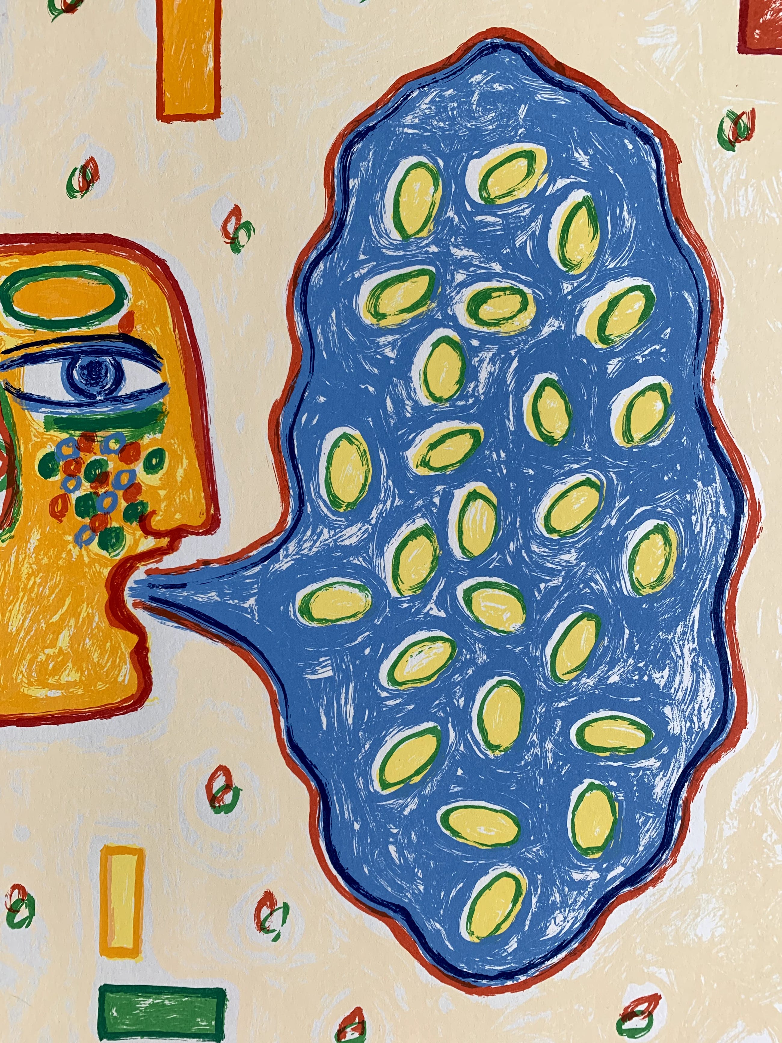 Lekkere kleurrijke zeefdruk van de hand van Keimpe Kootstra.