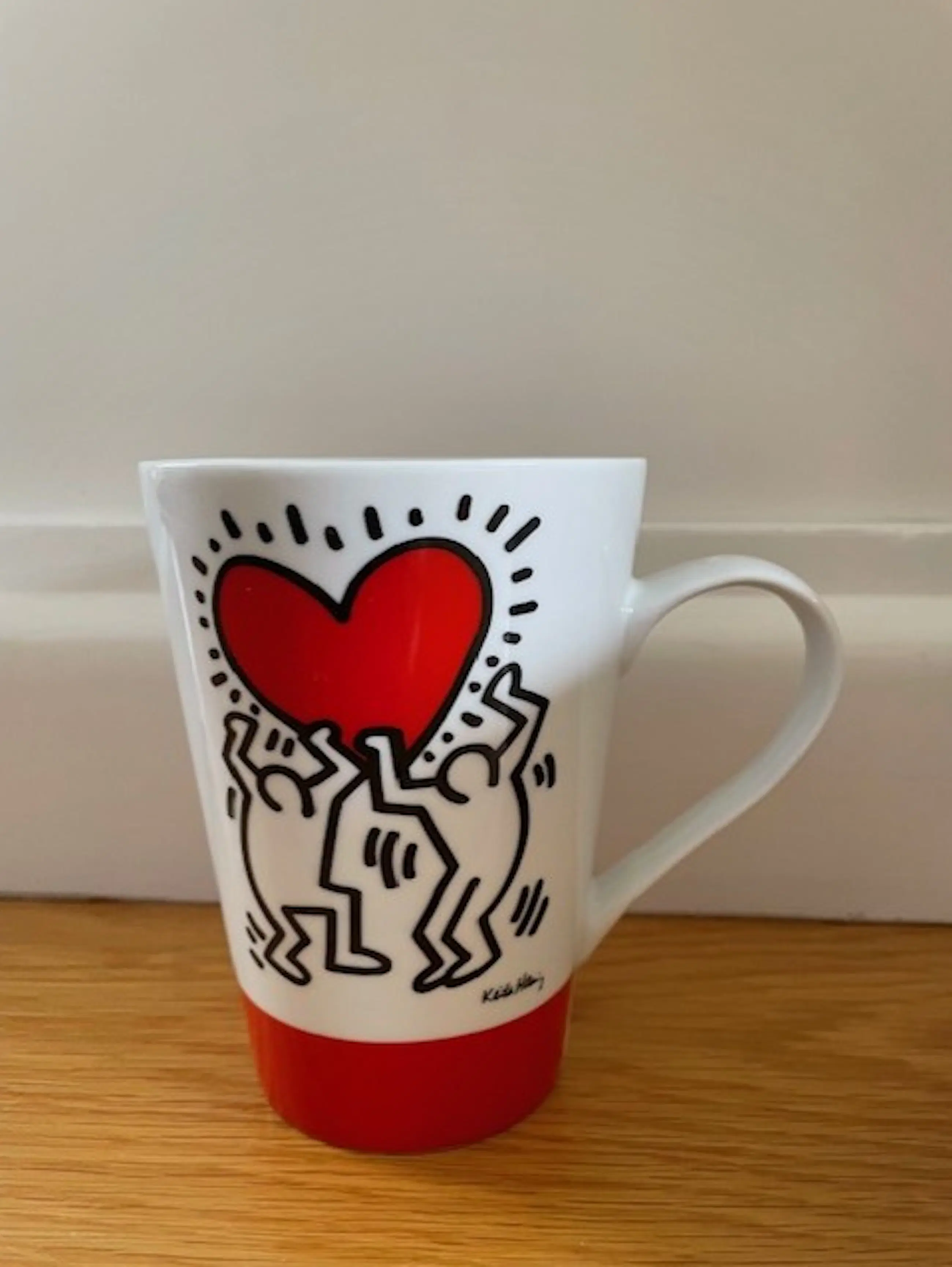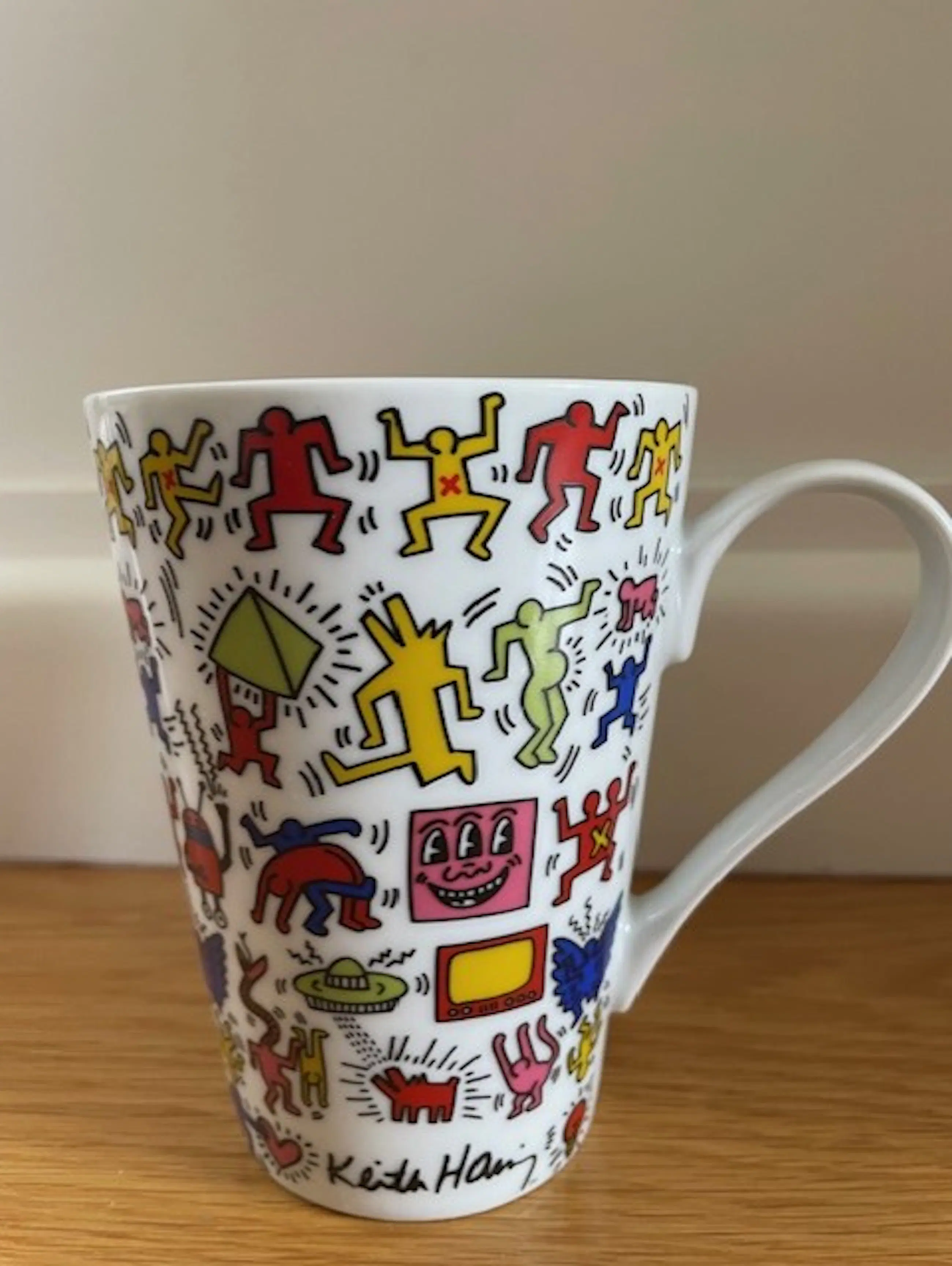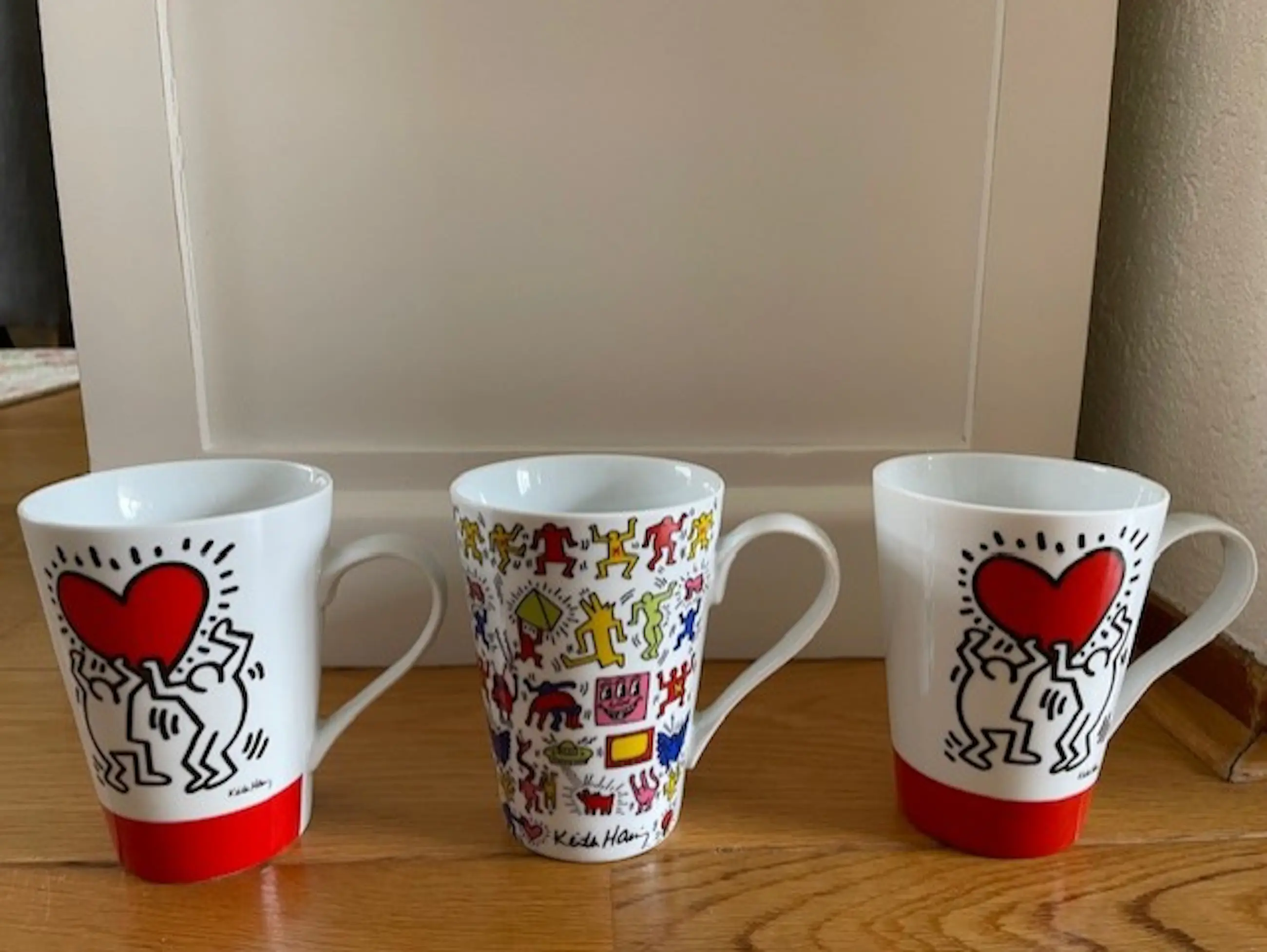 Het zijn drie mooie bekers van porselein en zijn typisch van de kunstenaar Keith Haring. Twee bekers met thema "liefde" en een beker met dansende poppetjes in de stijl van Keith Haring.
