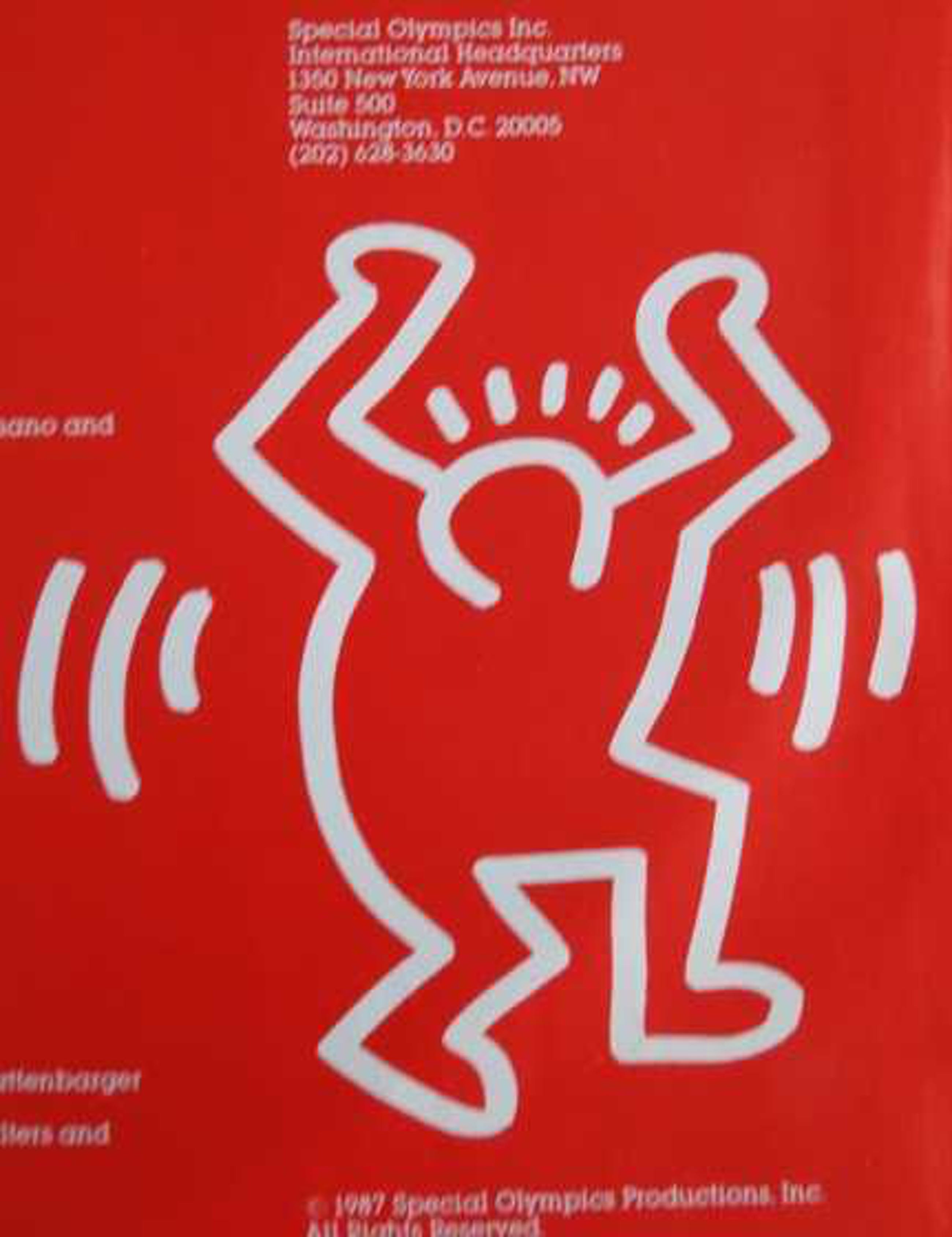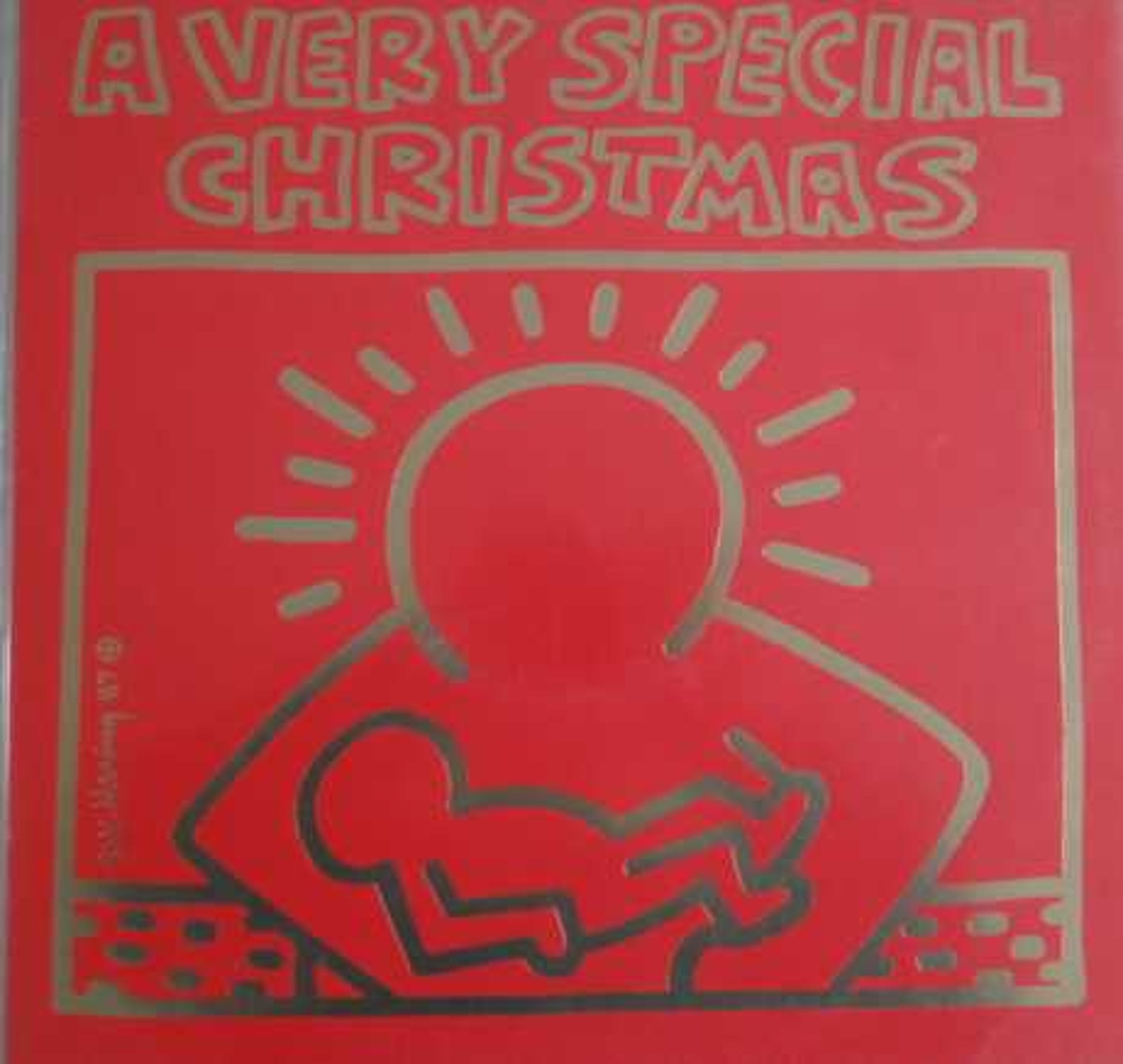 Wederom een fraai ontworpen lp-hoes van Keith Haring. The special Olympics Christmas Album, met bijdrage van o.a. Bryan Adams, Bon Jovi, Eurytmics en vele anderen. Schitteren gedrukt hoes met goud op rood.