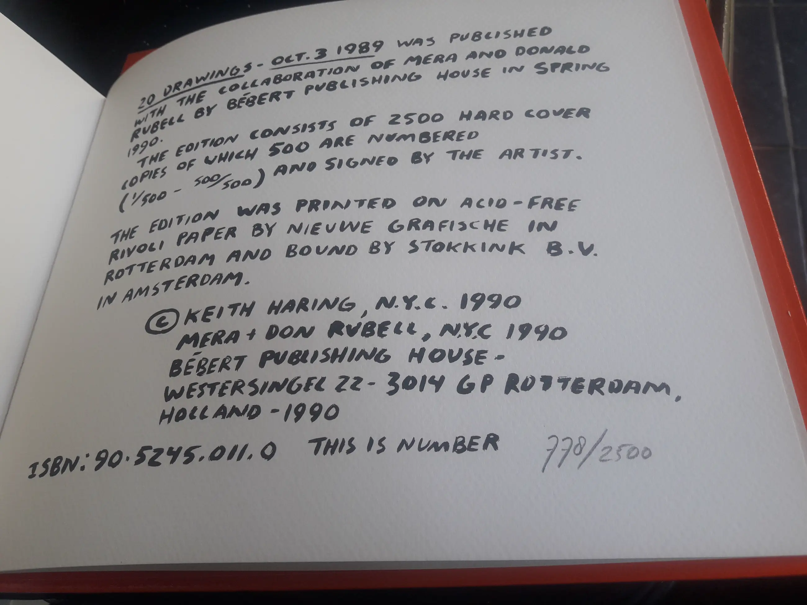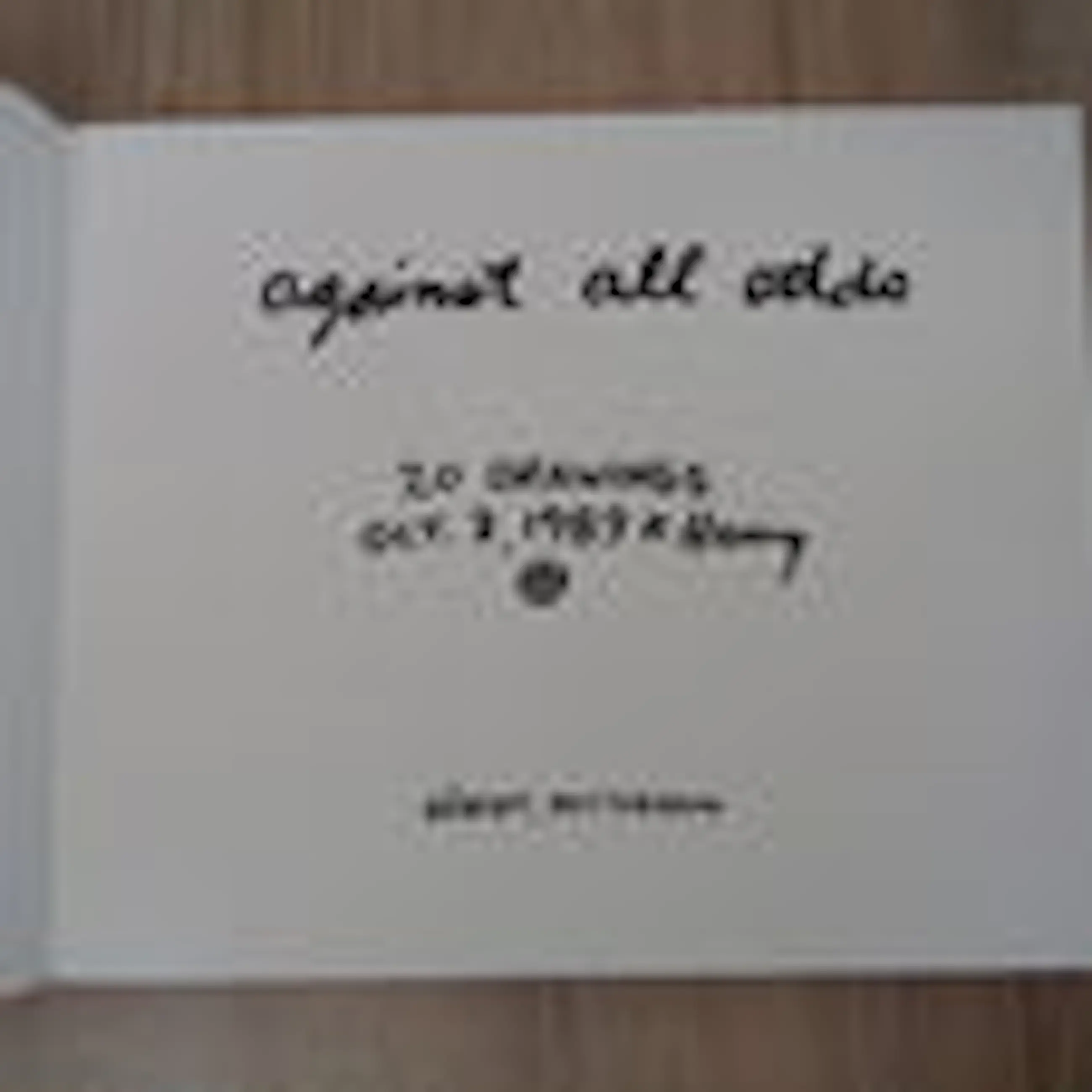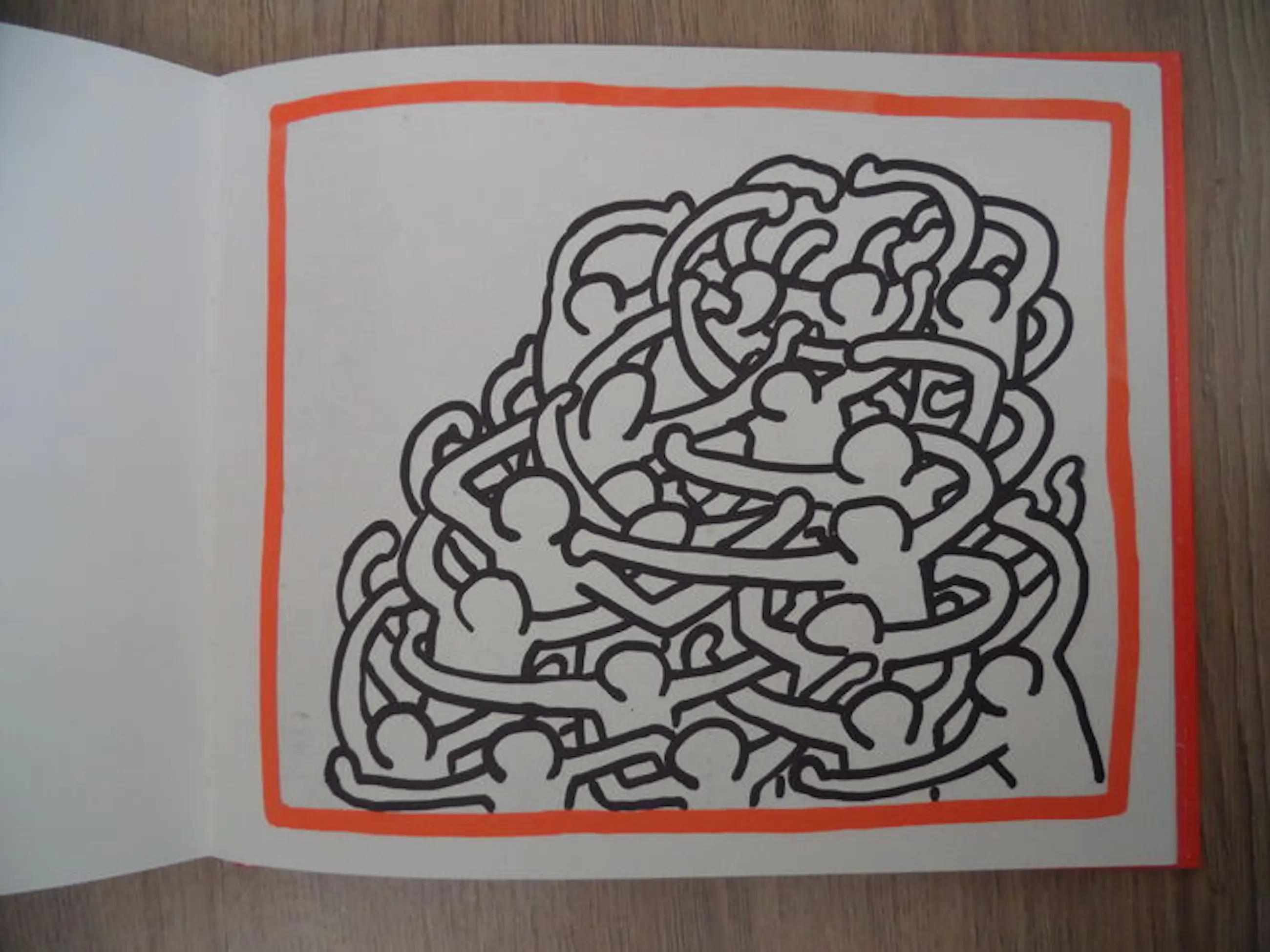 Keith Haring Met rood linnen beklede cassette met het hardcover boek against all odds van Keith Haring. Met 20 originele lithografien op geschept papier. Uitgever; Bebert Rotterdam dit is nummer 778/ 2500 Gebonden door Stokking Er zijn geen gesigneerde exemplaren Enkele lichte gebruikssporen op de cassette. Boek in perfecte staat