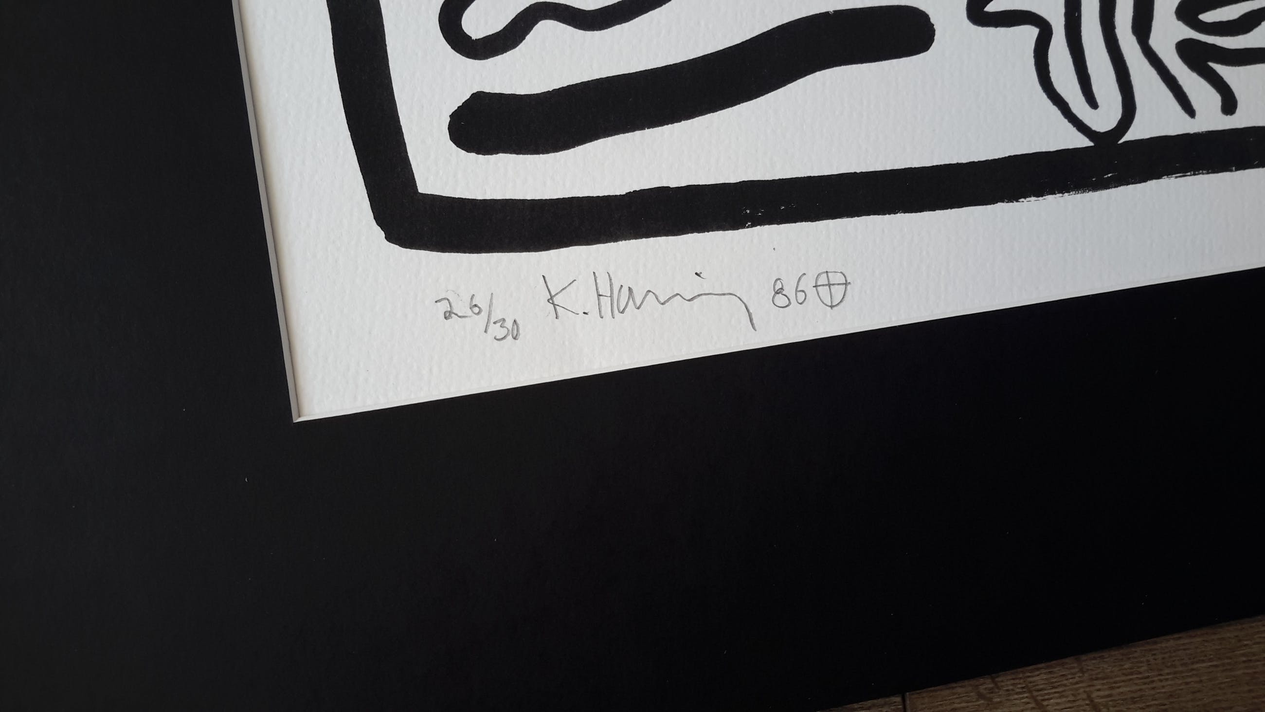 Zeefdruk van Keith haring Bad boys 26/30 uitgegeven door Bebert Rotterdam , Handgesigneerd en genummerd met potlood door Keith Haring.