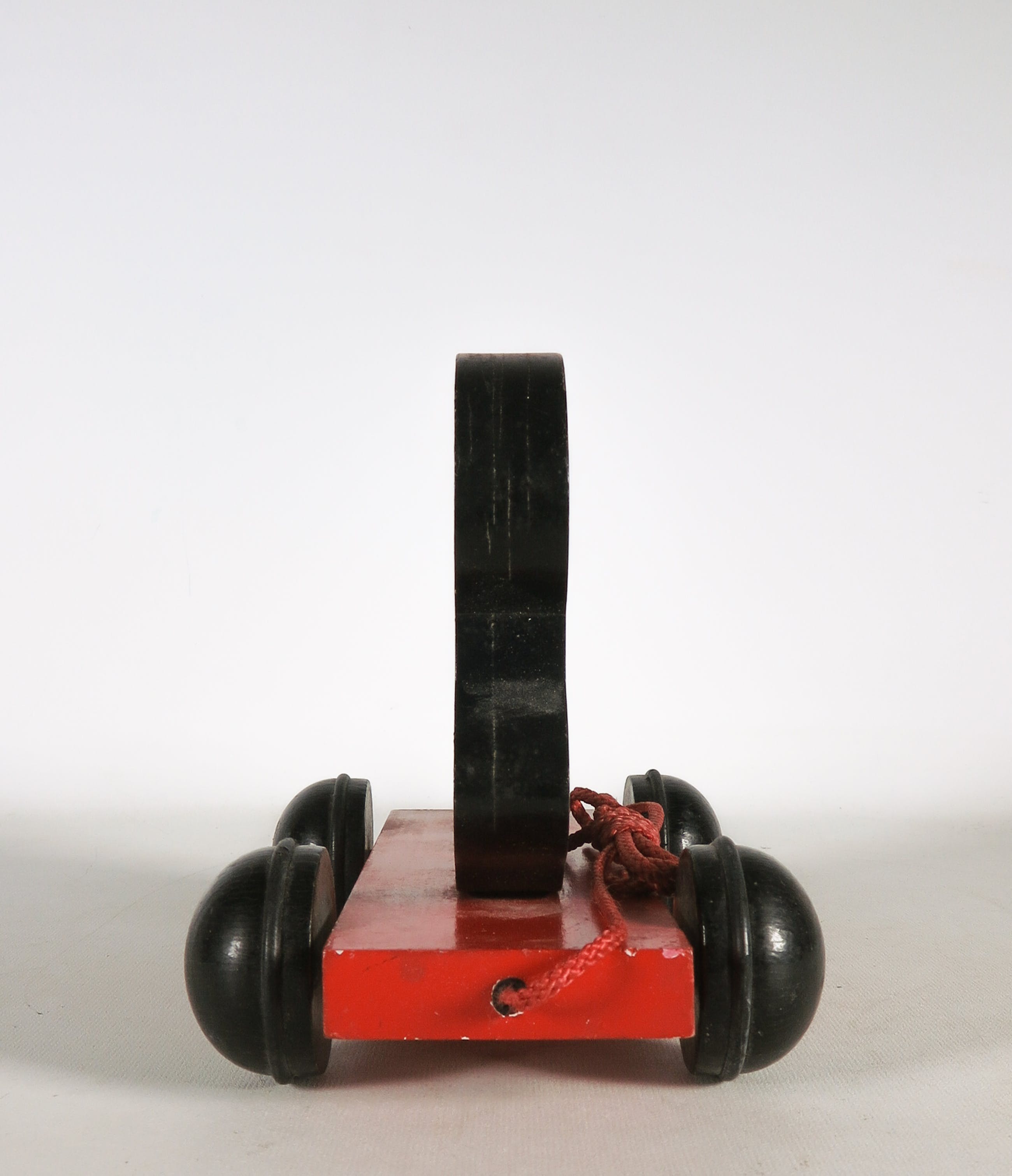 | Zeer goede staat, maar met wat gebruikssporen/leeftijdssporen. Het koord is wat verschoten. Een enkele lichte beschadiging aan de wieltjes. Het figuur van de baby heeft enkele butsjes/vlekjes. | |||