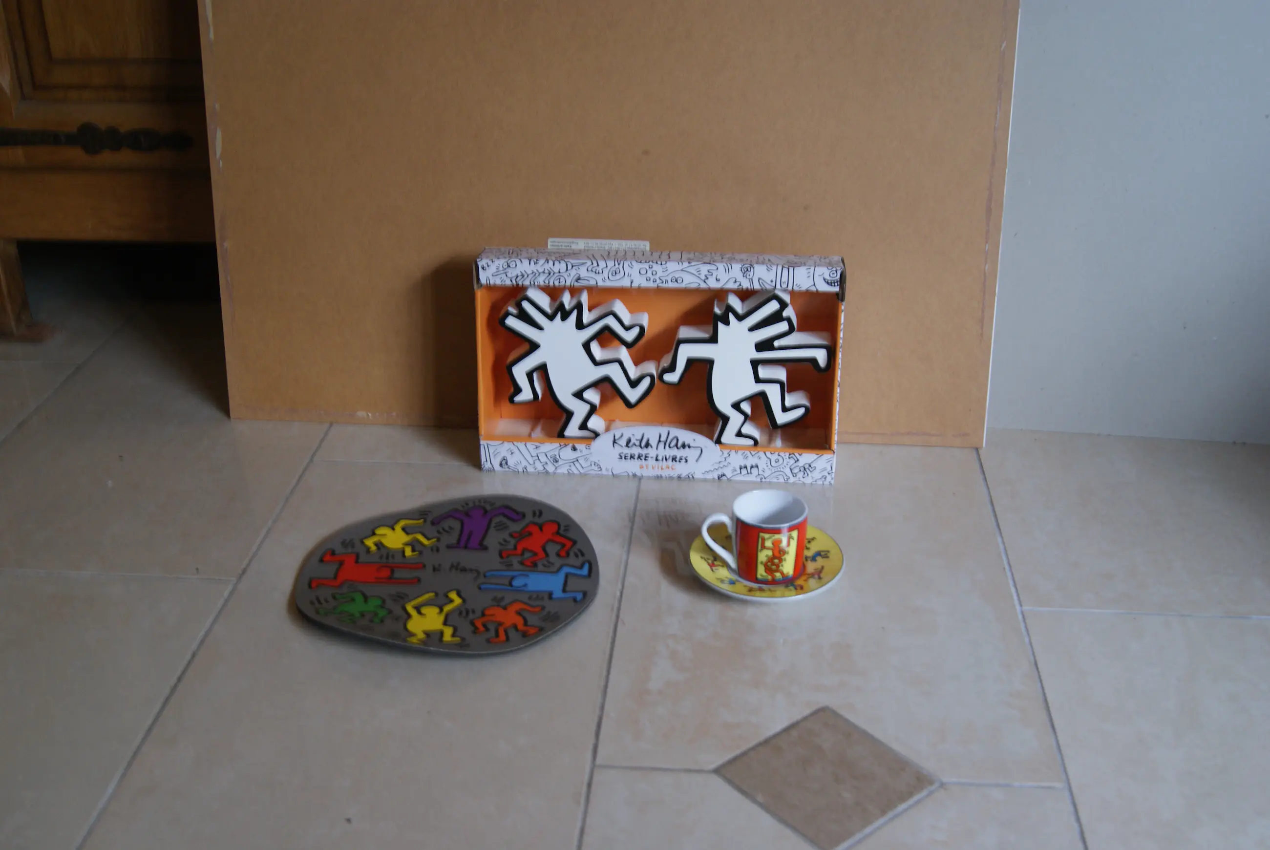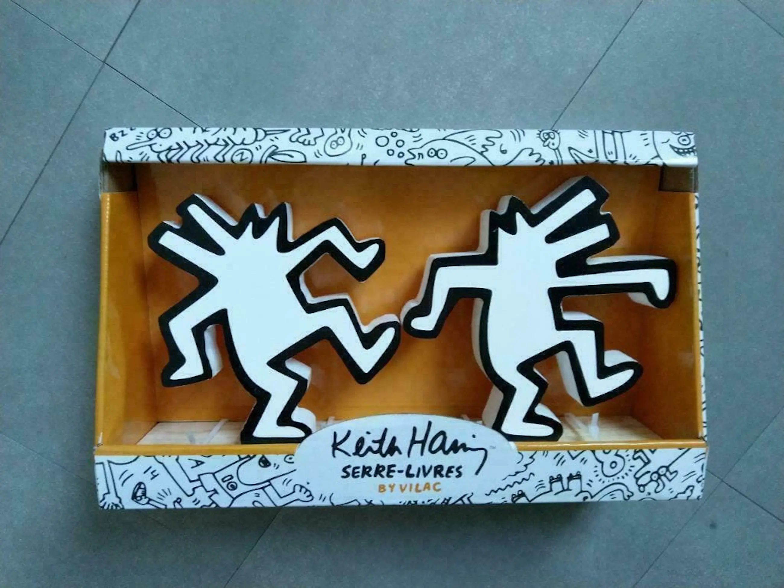 Boekensteunen geautoriseerd door de amerikaanse pop art kunstenaar Keith Haring. Gemaakt van hout en geproduceerd door Vilac.