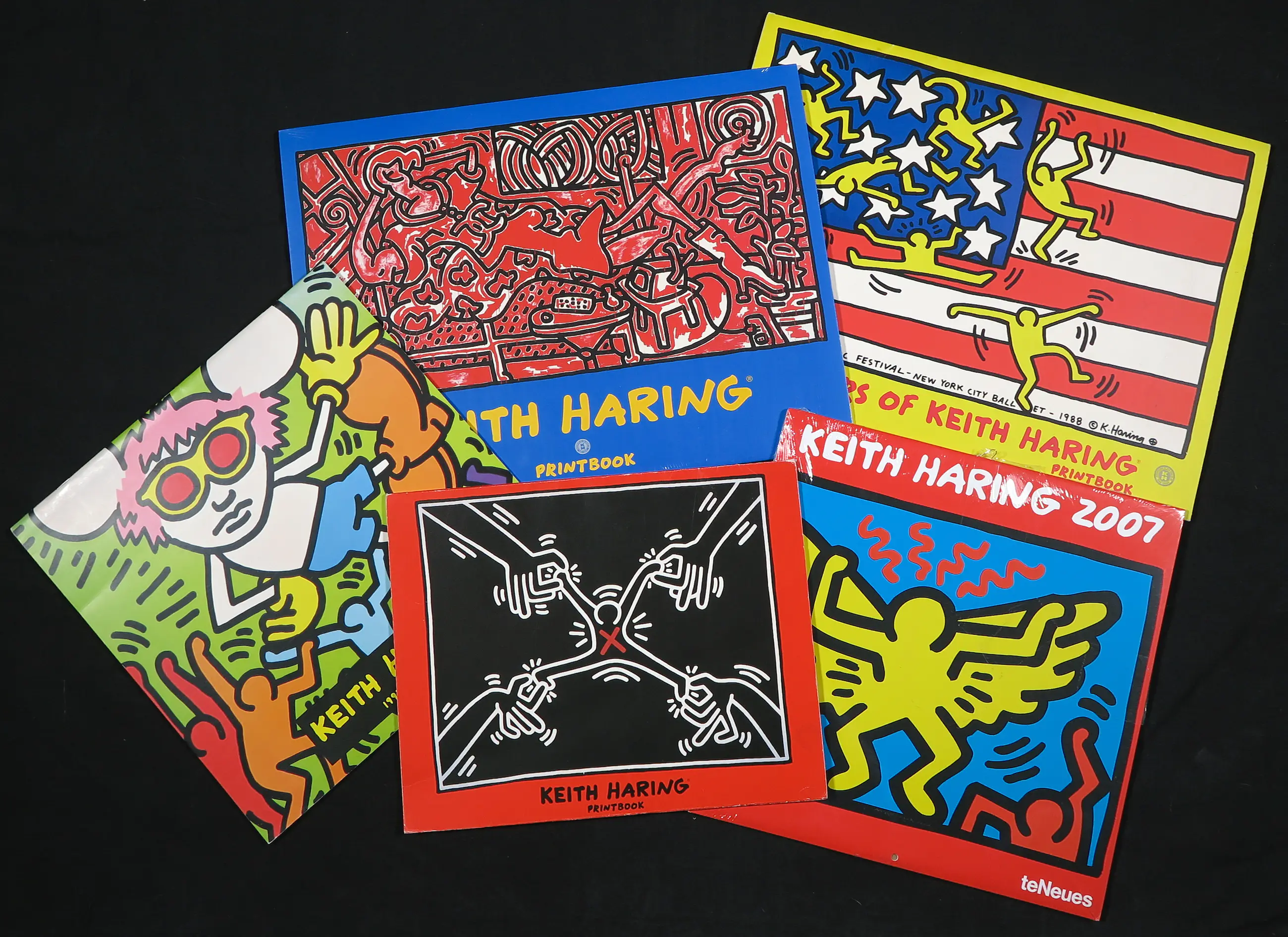 Plus een set Haring merchandise, bestaande uit twee kalenders (1993 en 2007) en drie printbooks. Een kalender en een printbook zijn nog geseald. De niet gesealde items hebben (lichte) gebruikssporen.
