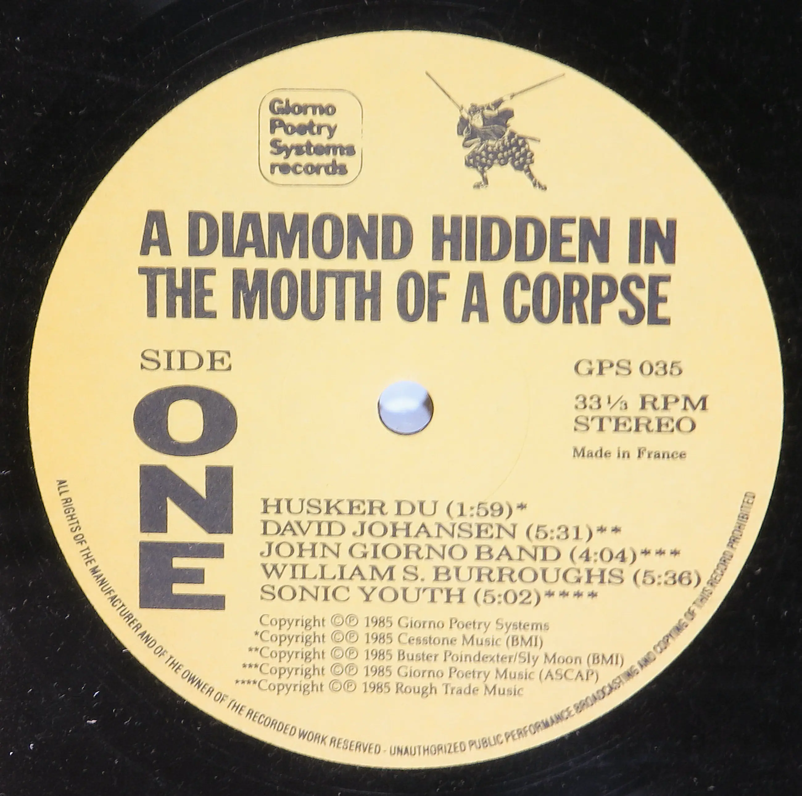 LP-hoes ontworpen en met de hand gesigneerd door Keith Haring én door William S. Burroughs, voor het album A Diamond hidden in the Mouth of a Corpse (1985) door verschillende artiesten.