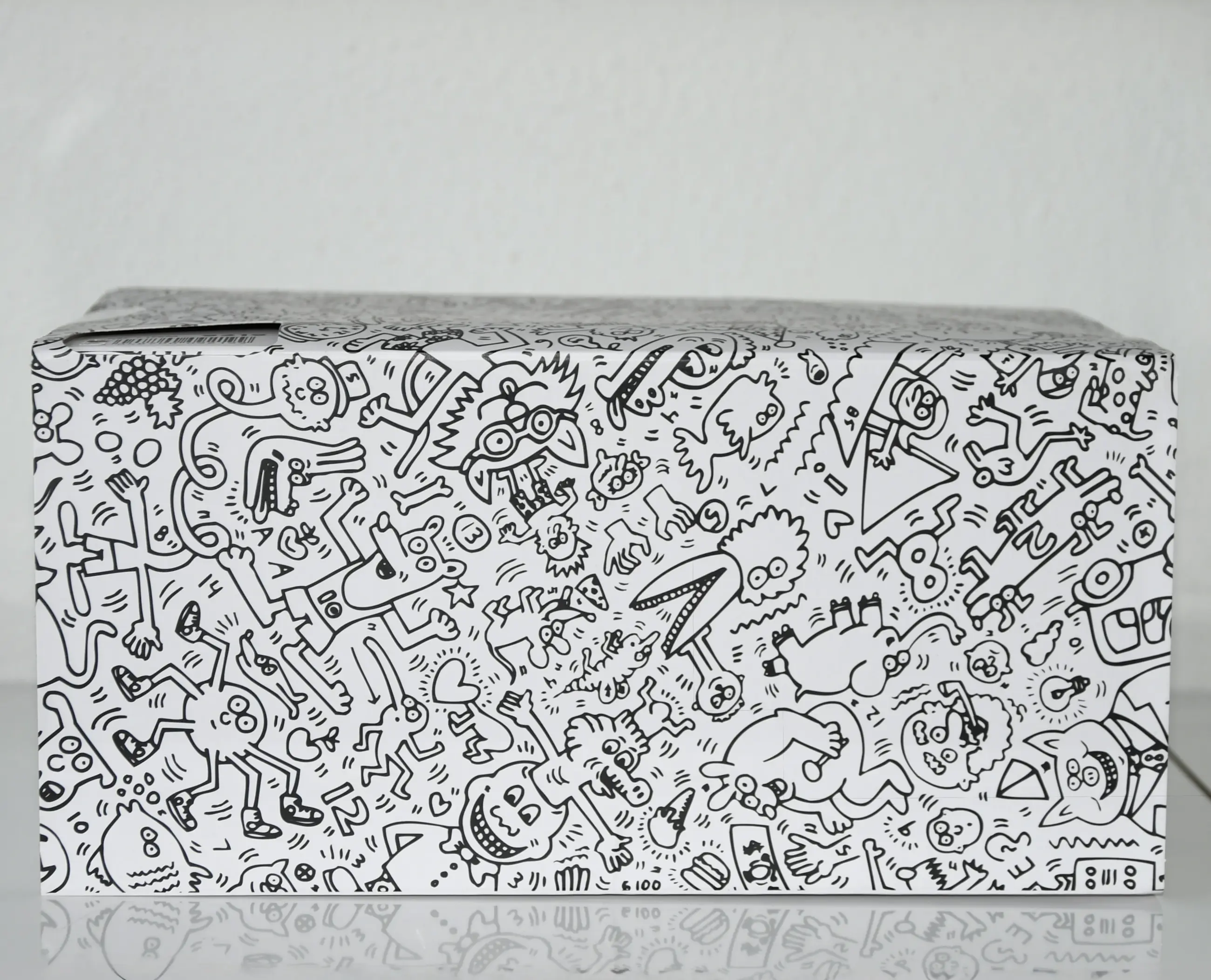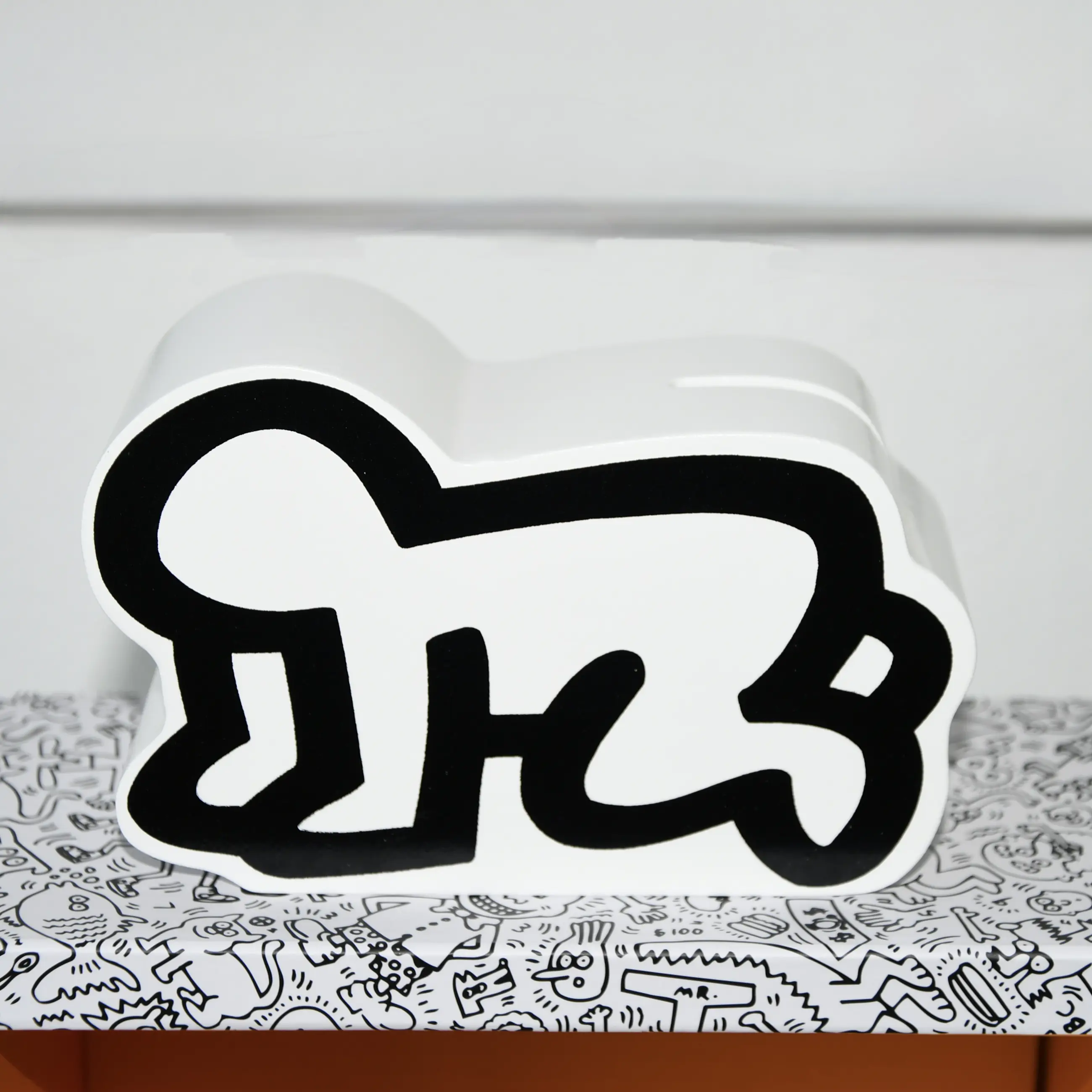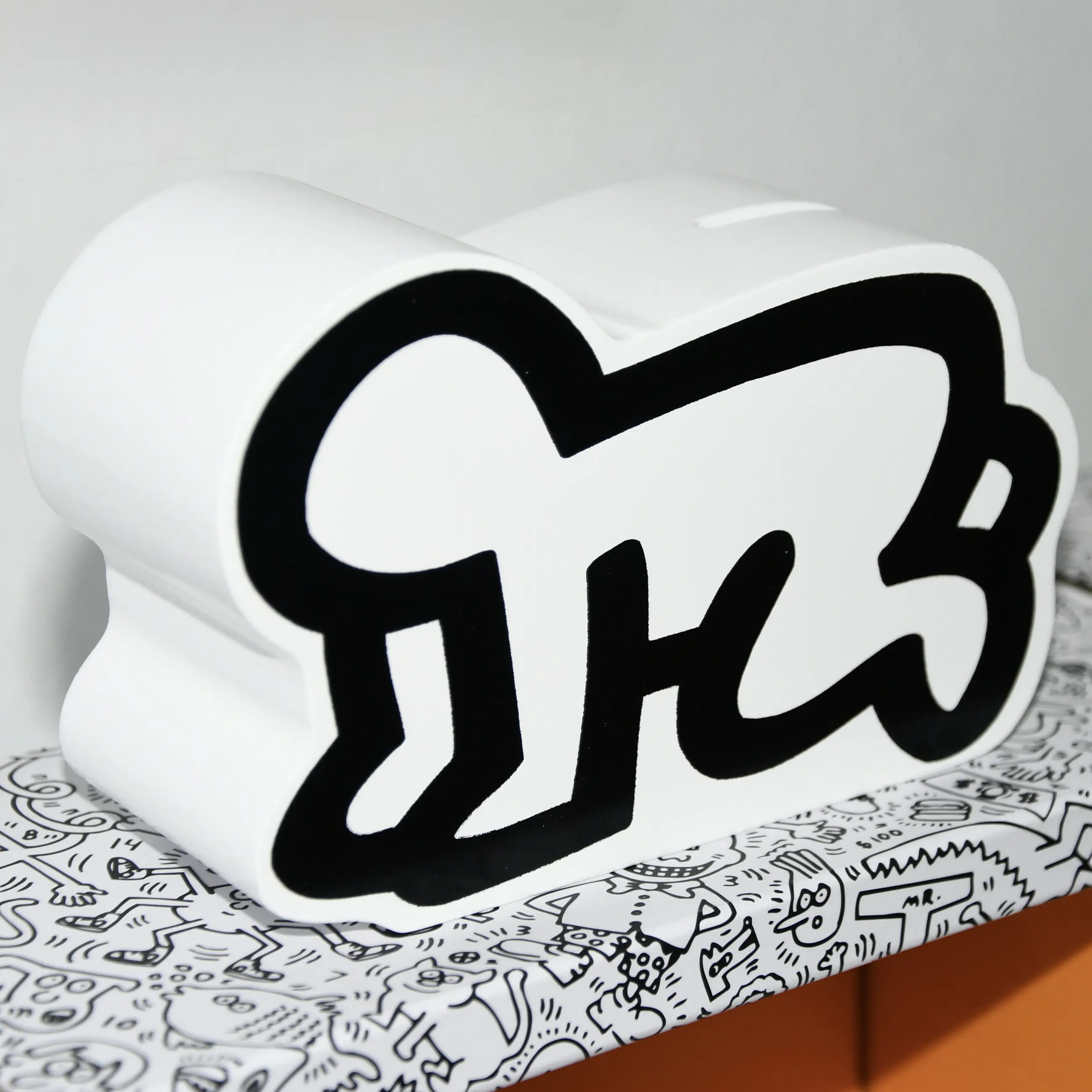 De handtekening van de kunstenaar staat aan de achterkant en deze spaarpot is in samenwerking geproduceerd met de Keith Haring Foundation.
