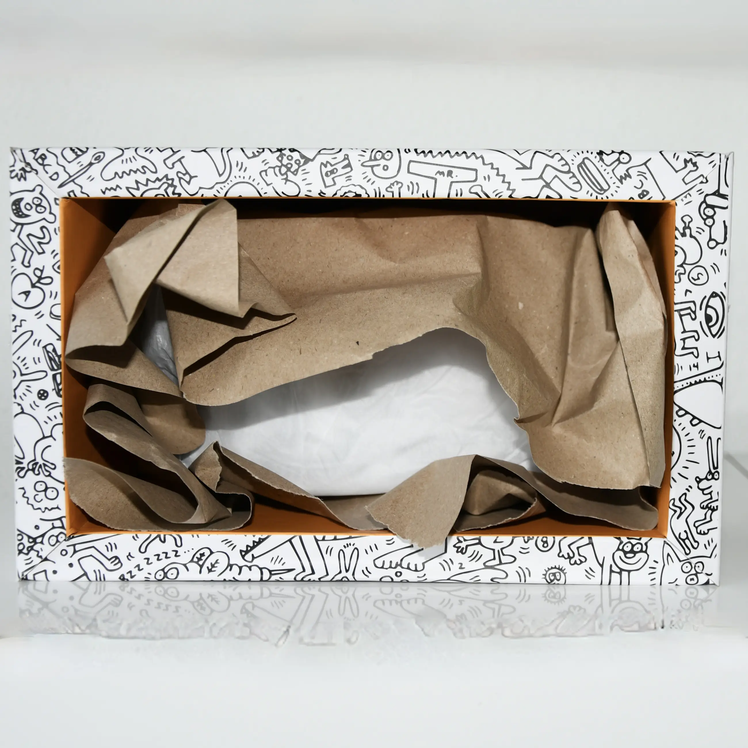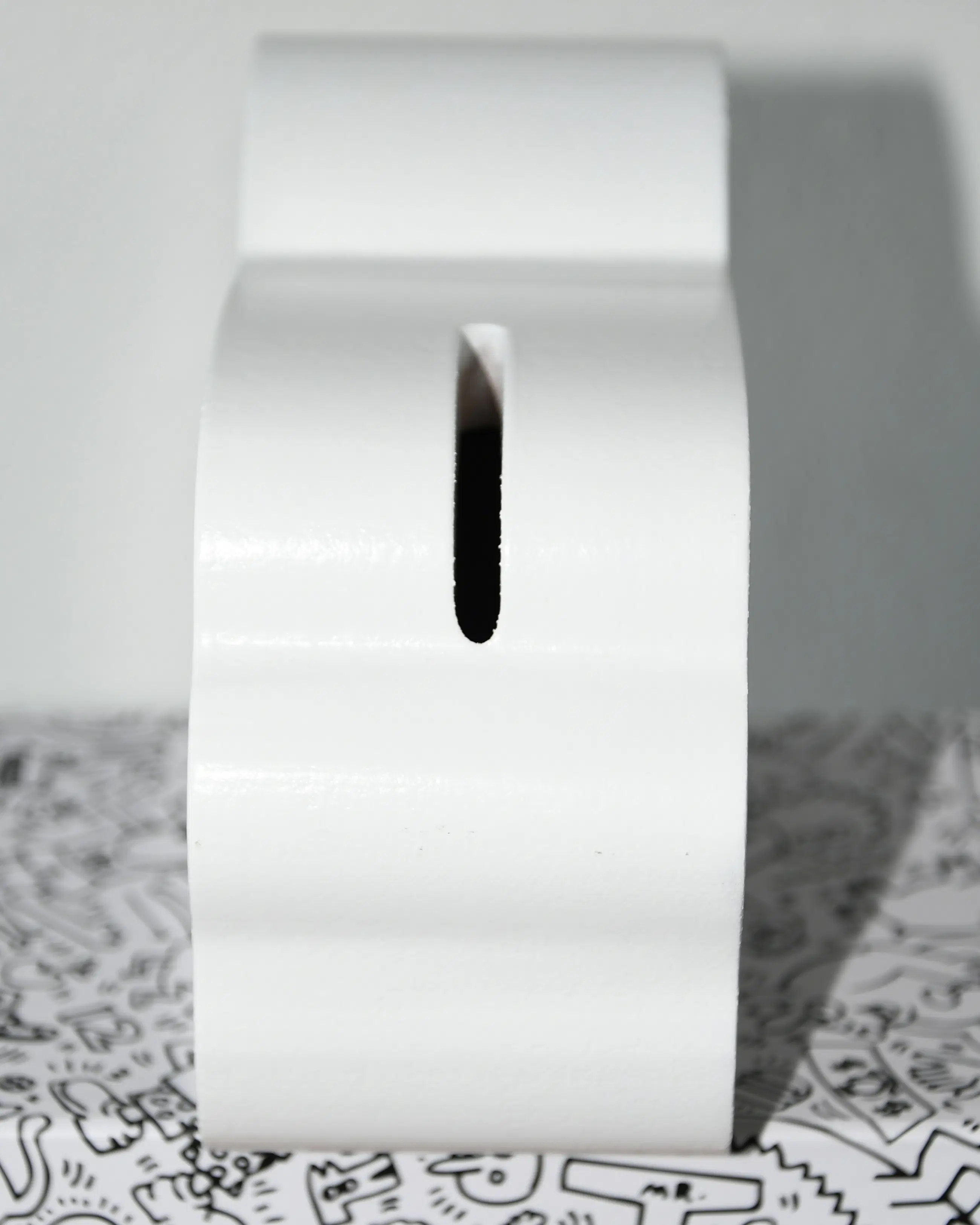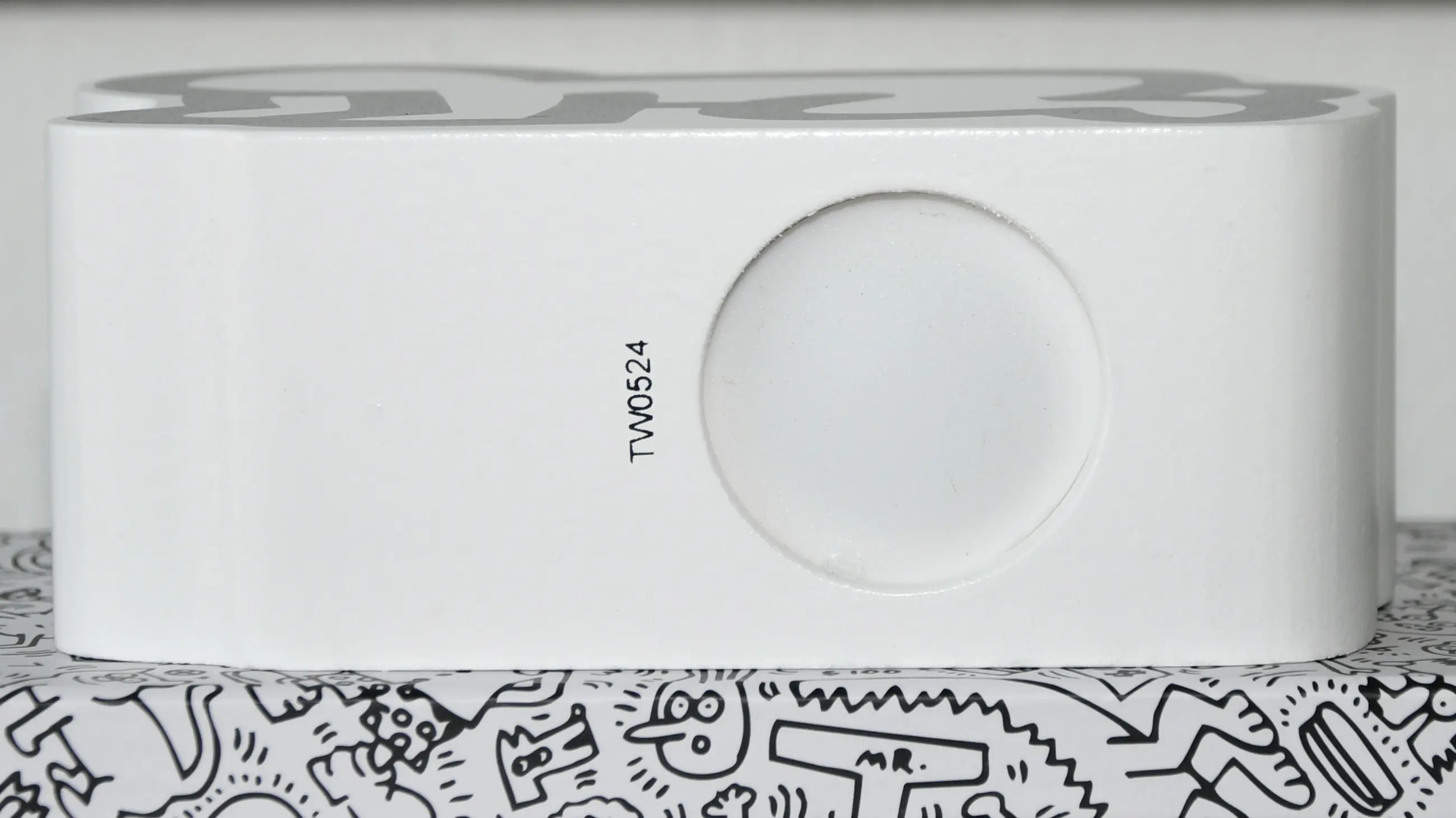 De handtekening van de kunstenaar staat aan de achterkant en deze spaarpot is in samenwerking geproduceerd met de Keith Haring Foundation.