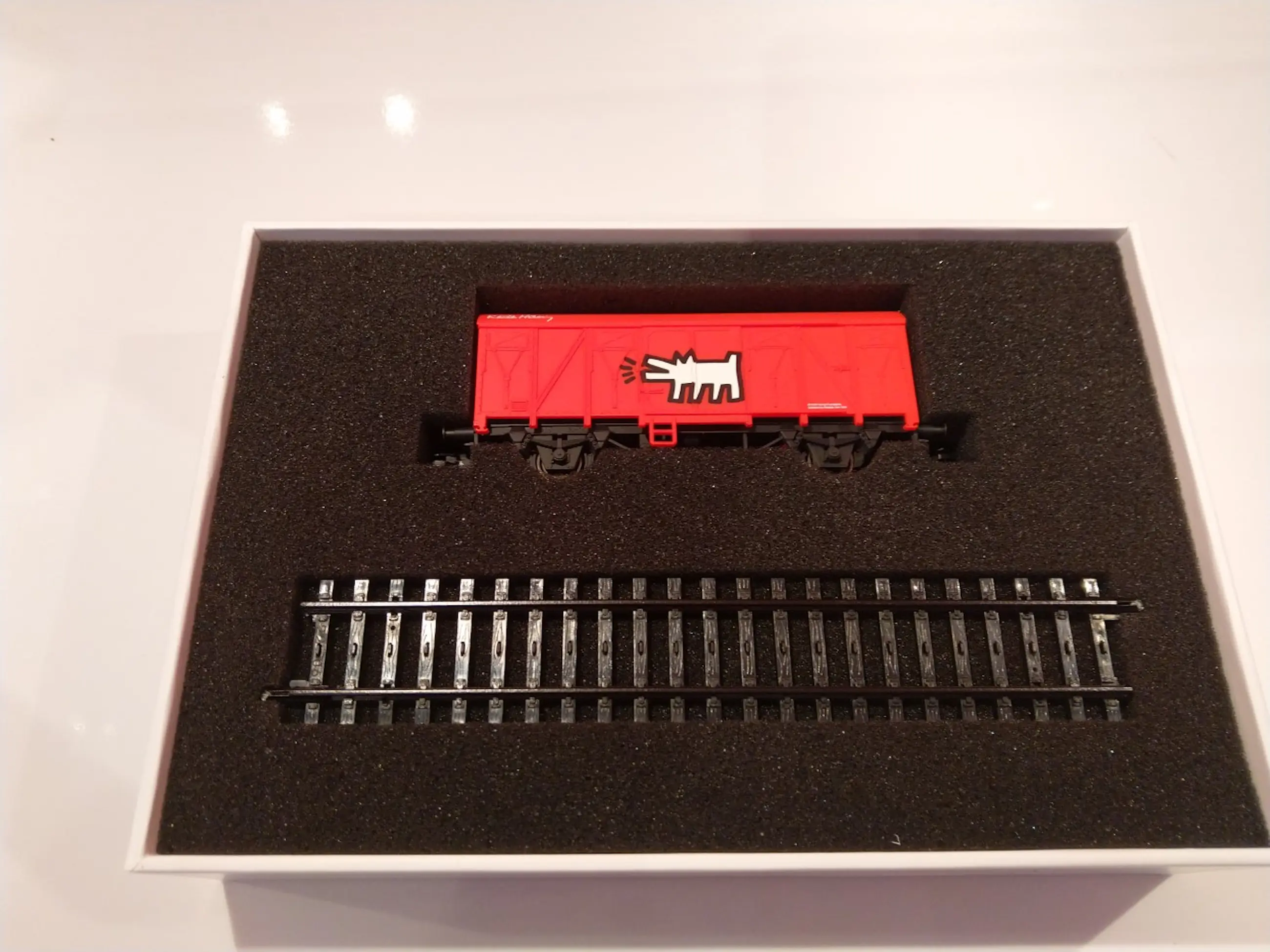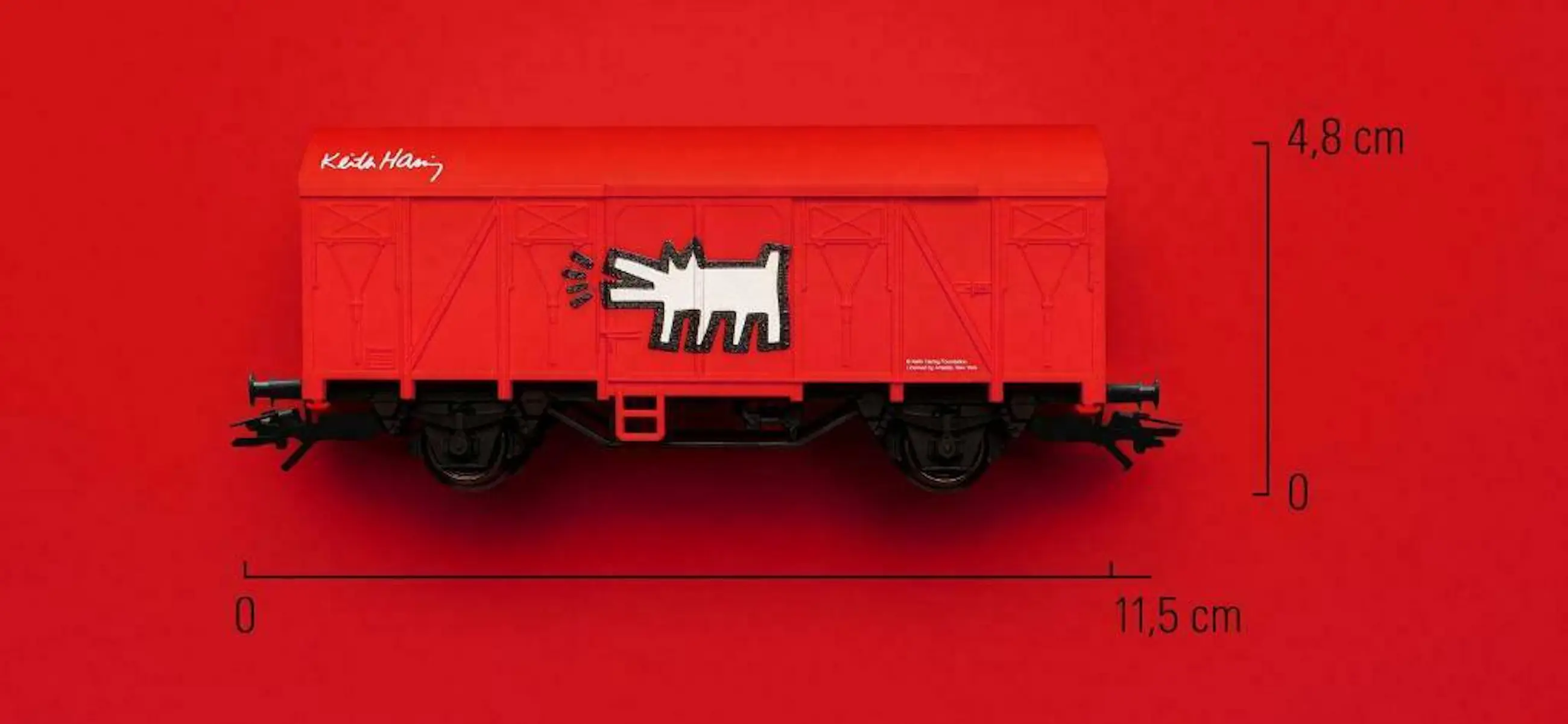 With the Message Wagon „Keith Haring“ in H0 Scale, the collection of Message Wagons with important messages of significant artists can be continued. The Wagon transports the artist's message from the past to the present in the form of a representative, fascinating art toy in the living room.Length: 11,5 cm (4.5 inch)