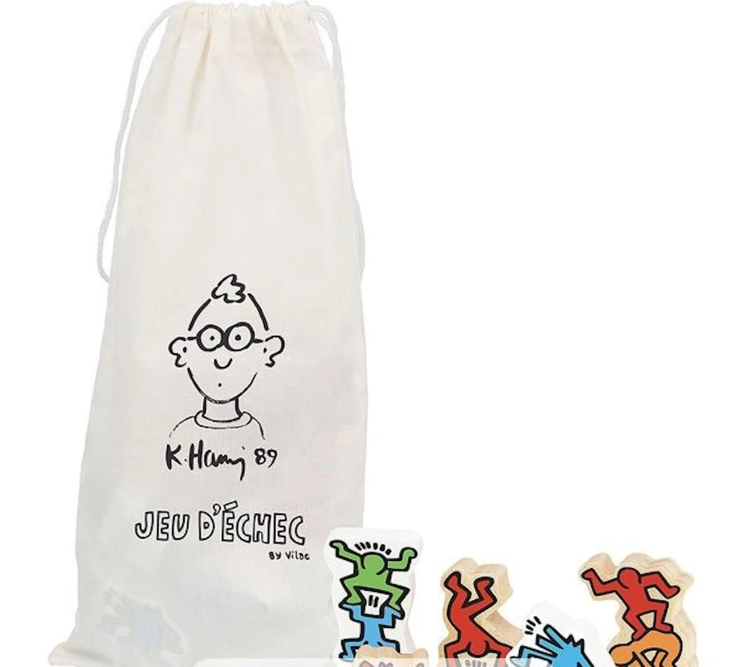 Enjoy a more playful game of chess with pieces adapted from some of Haring’s most beloved works. A cheerful set shaped after sketches that will be instantly recognizable to anyone familiar with the artist, the Keith Haring Chess Set features pawns made of Haring’s barking dogs and castles shaped like men with their arms in the air. Crafted of turned and lacquered wood by the venerated toy firm Vilac, the Keith Haring Chess Set includes a white fabric bag to hold the pieces when not in use that features the artist’s 1989 self-portrait.