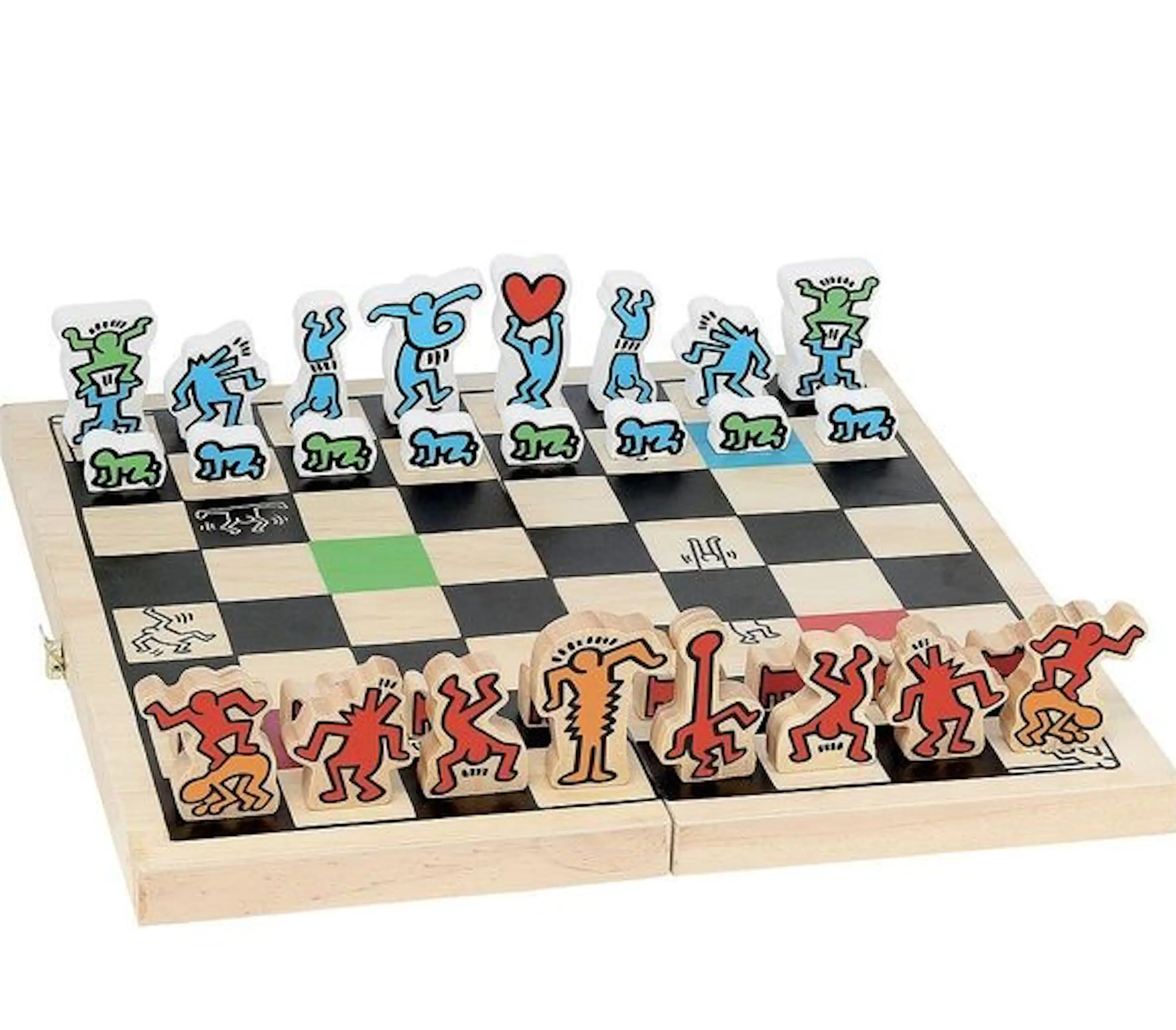 Bijzonder Keith Haring schaakbord met karakteristieke stukken (Nieuw !!)