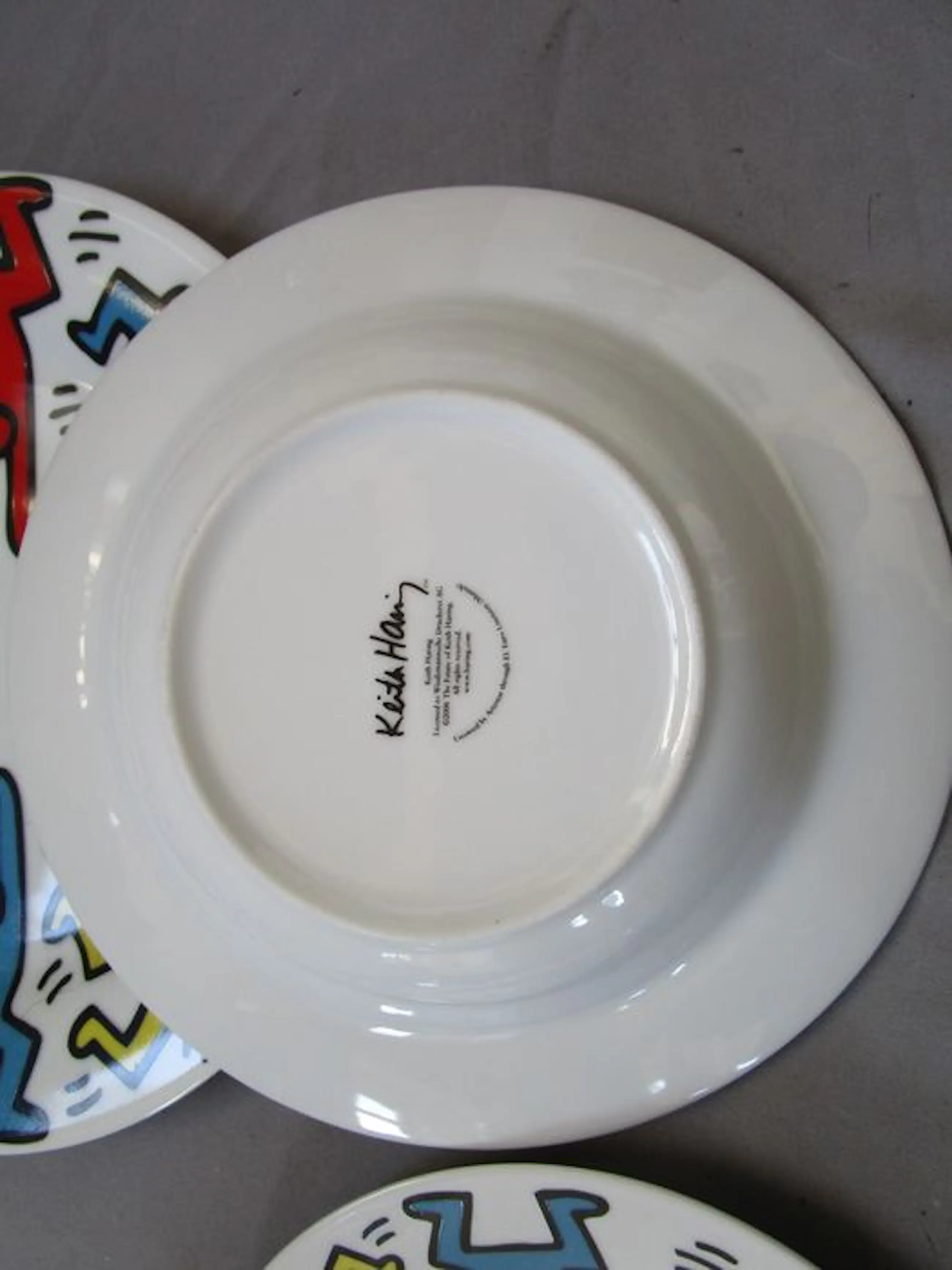 Keith Haring Servies: 3 verschillende maten borden, 1 koffiekop en schotel.