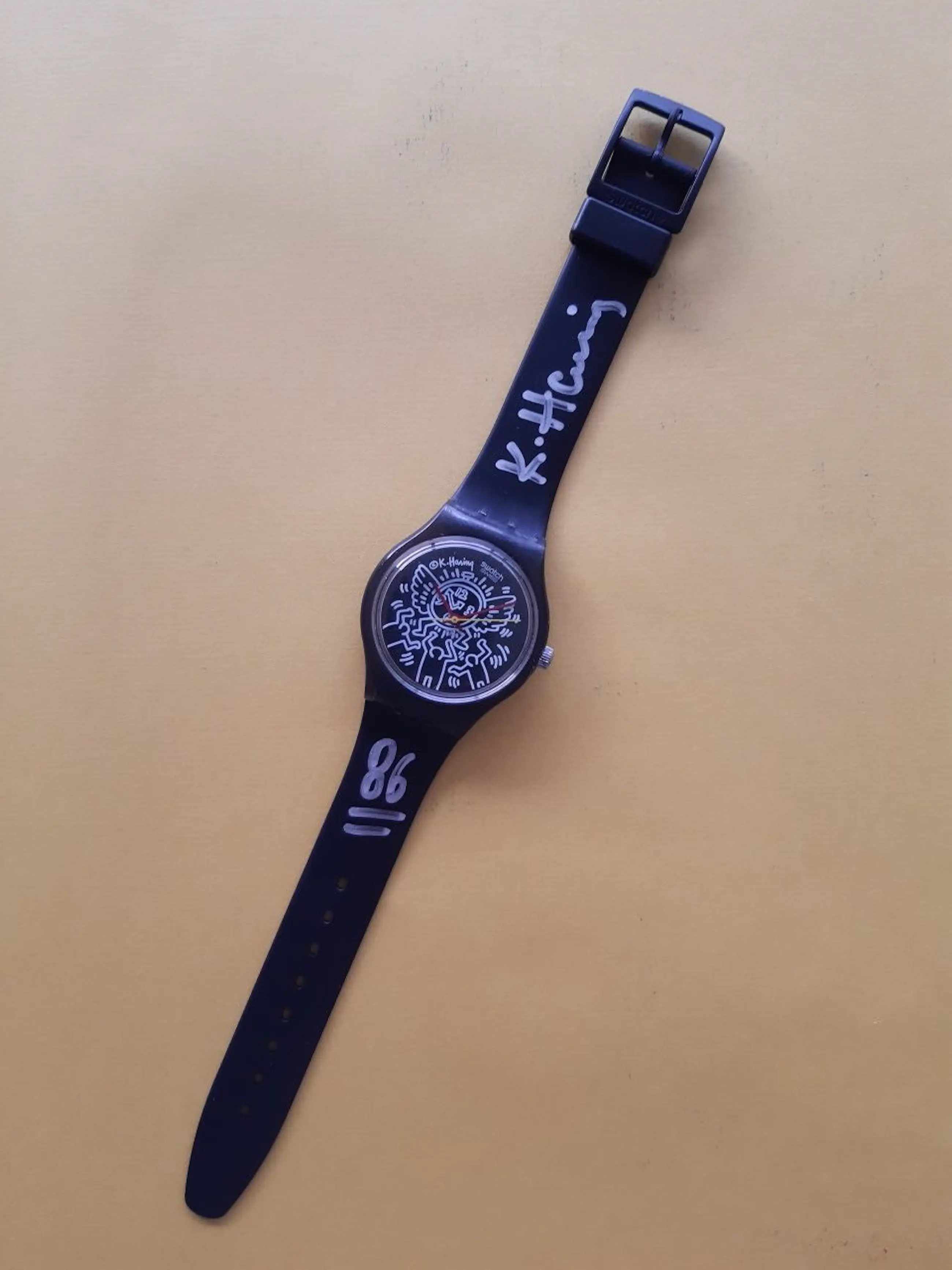 Copyright Swatch Keith Haring 1986 Gesigneerd in zilveren marker Zeer mooie, werkende staat, weinig gedragen Omgebouwd tot automatic om te vermijden dat de batterij uitloopt Wordt verzekerd verzonden voor het totaal geboden bedrag met track & trace