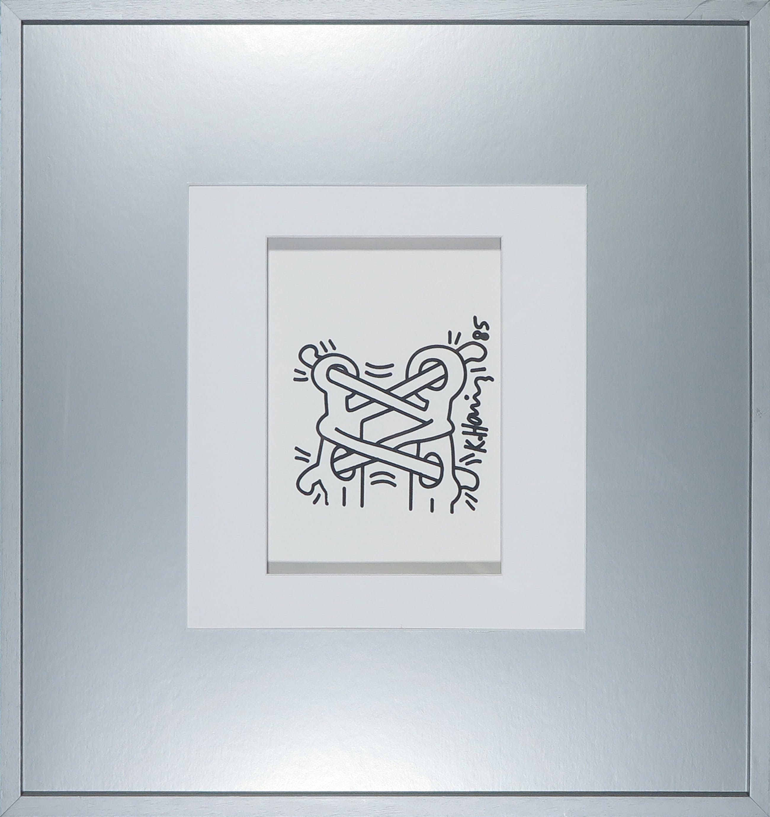 Bijzondere en originele tekening in viltstift van de wereldberoemde kunstenaar Keith Haring. Het werk is met de hand gesigneerd en gedateerd (1985).