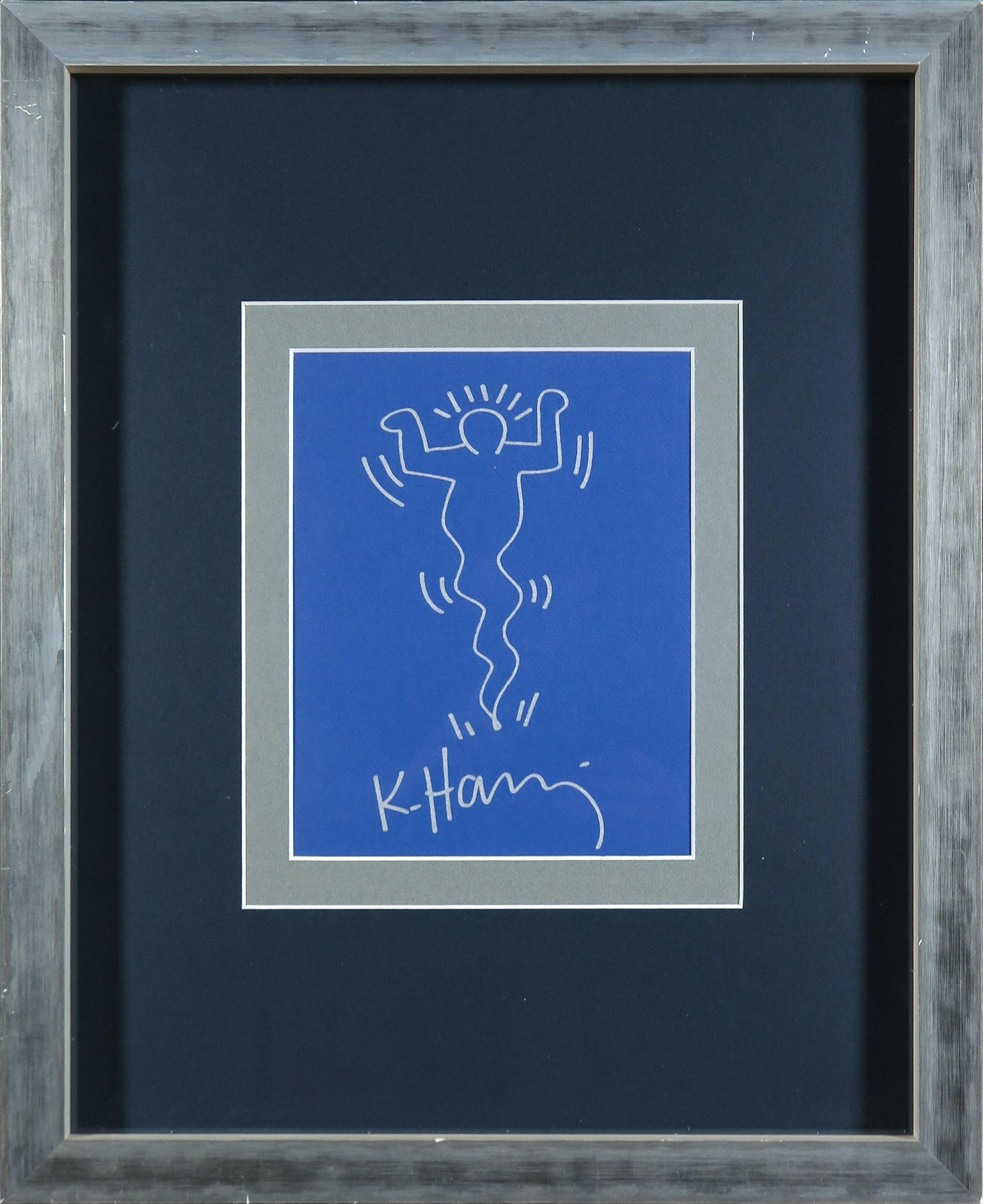Bijzondere originele tekening, door Keith Haring gemaakt met zilveren stift. Onder het figuur gesigneerd.