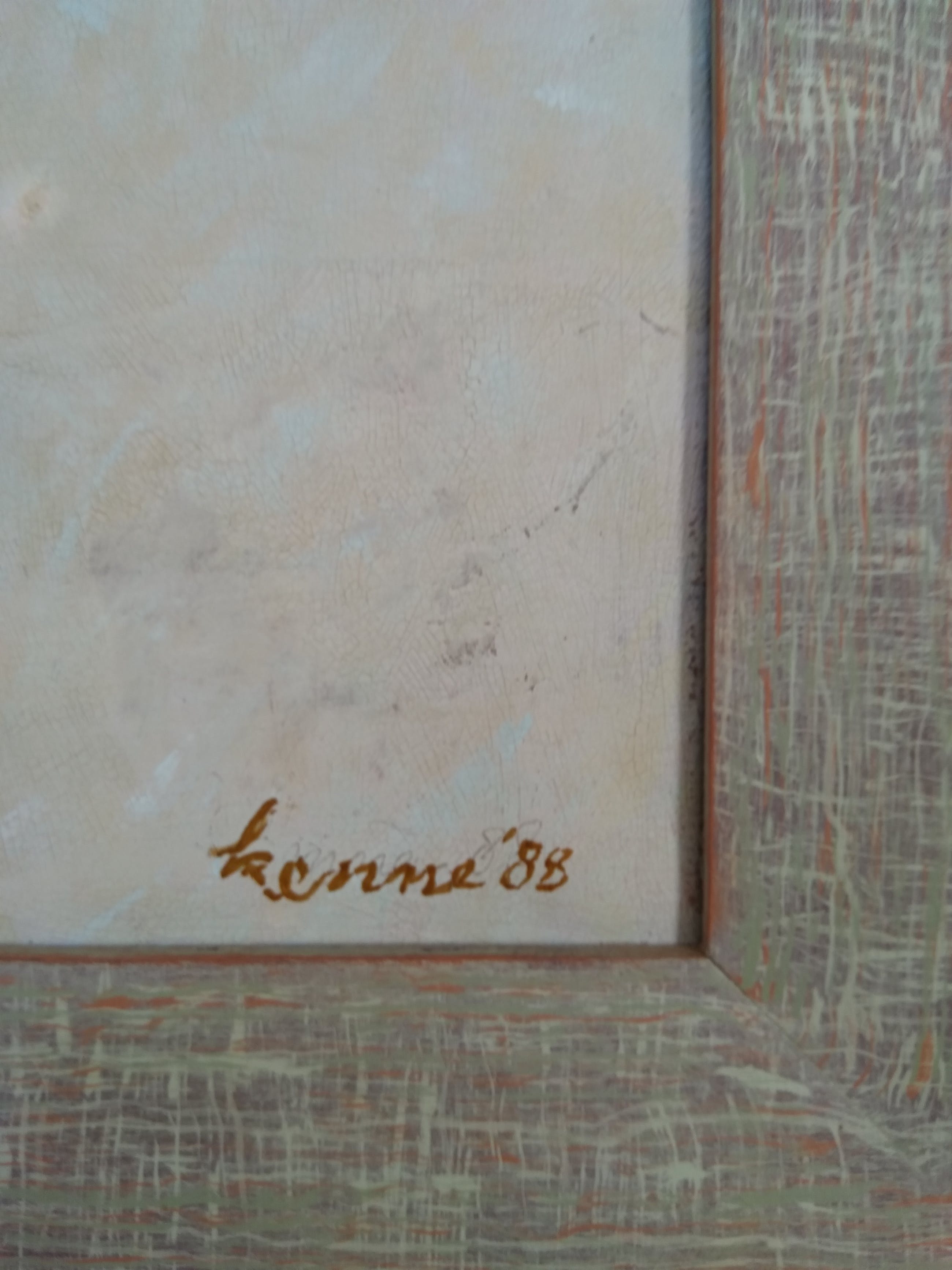Olieverf op doek, in door de kunstenaar gedecoreerde lijst. Het werk is niet vernist, is mat.