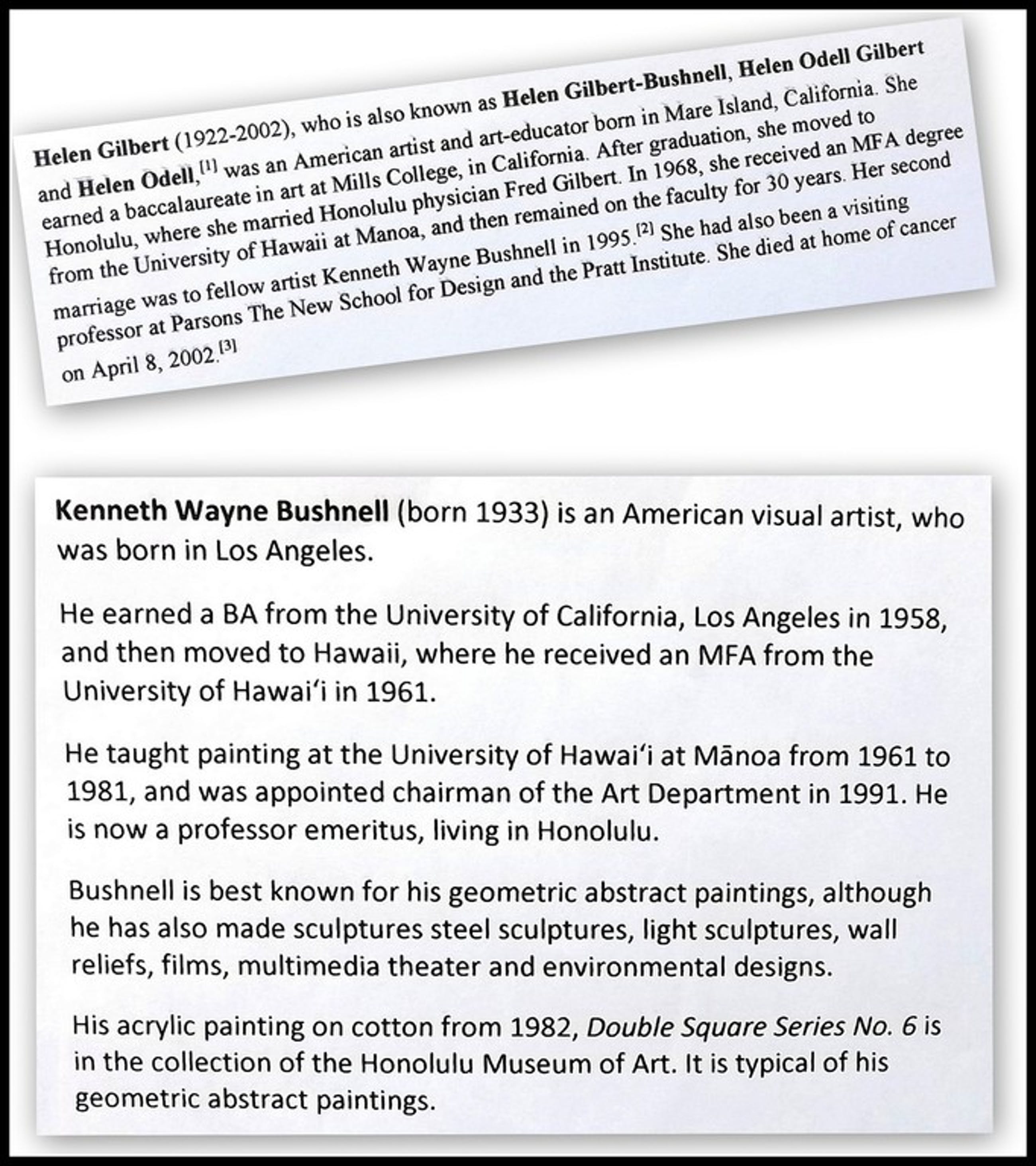 De Amerikaanse kunstenares Helen Gilbert (of Helen Odell) was getrouwd met de eveneens Amerikaanse kunstenaar Kenneth Bushnell. Zelden wordt van beide kunstenaars gelijktijdig gesigneerd werk aangeboden !