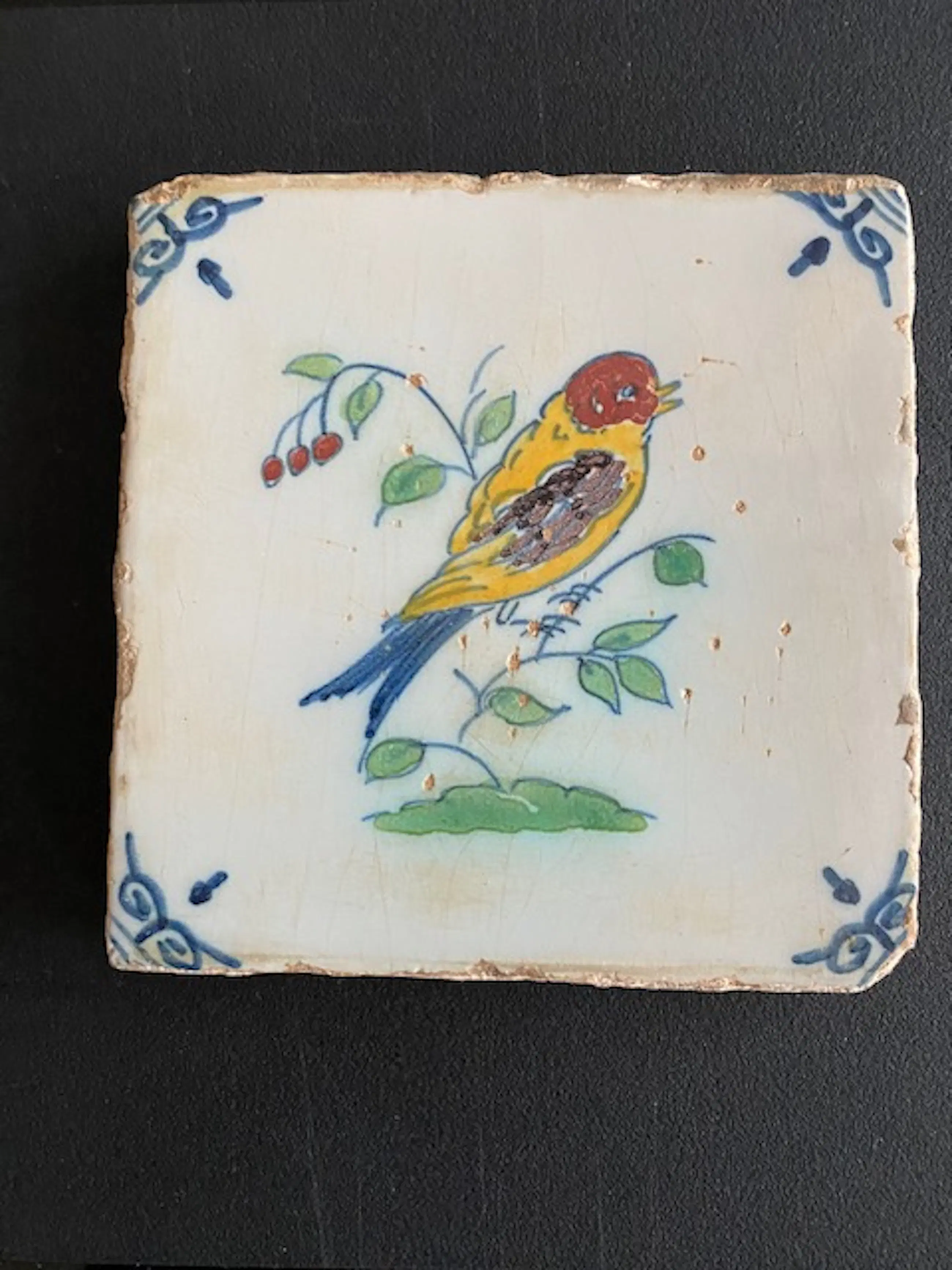 Keramiek overige - 17e eeuwse polychrome tegel met voorstelling vogel (Delft?)