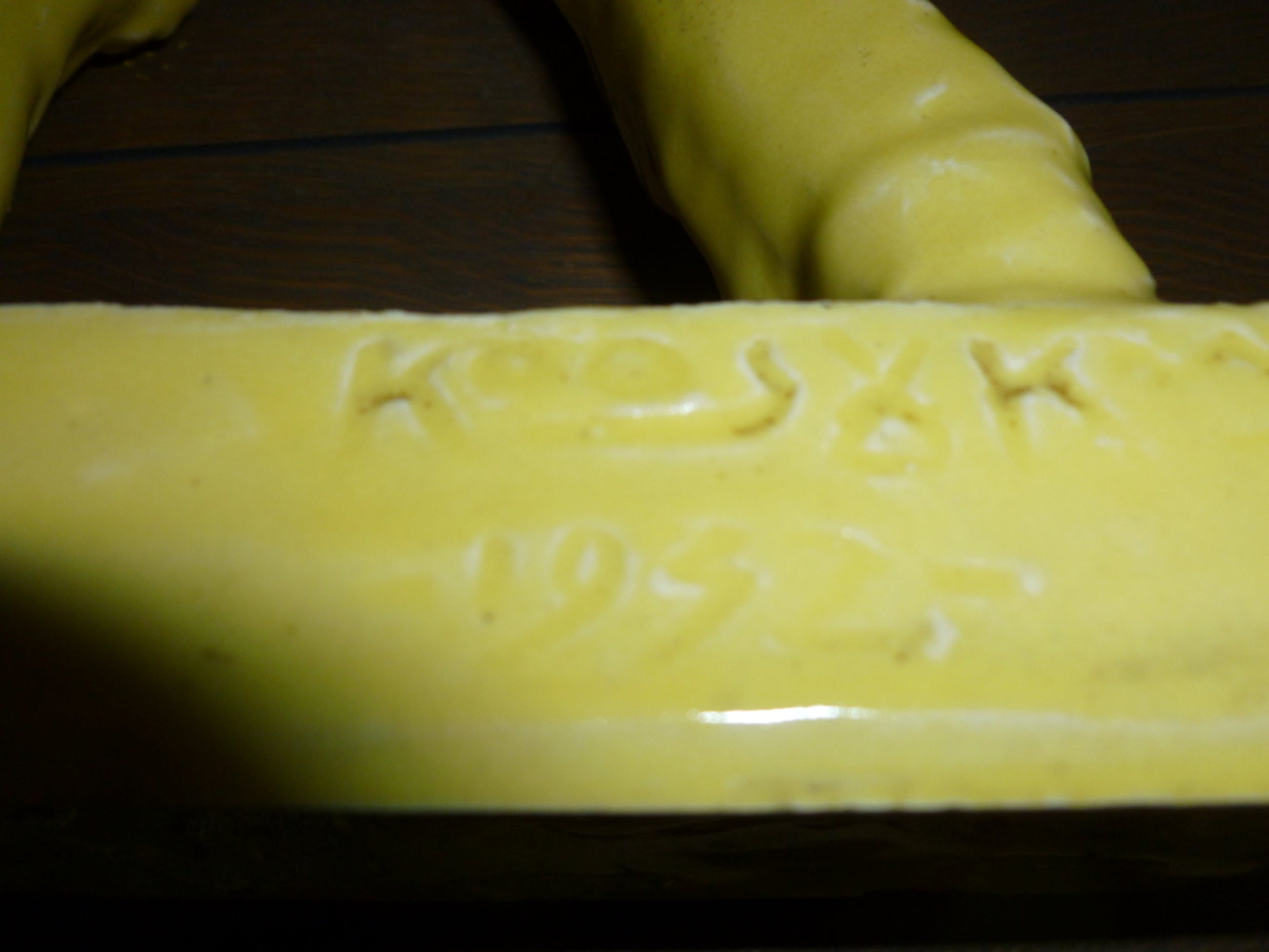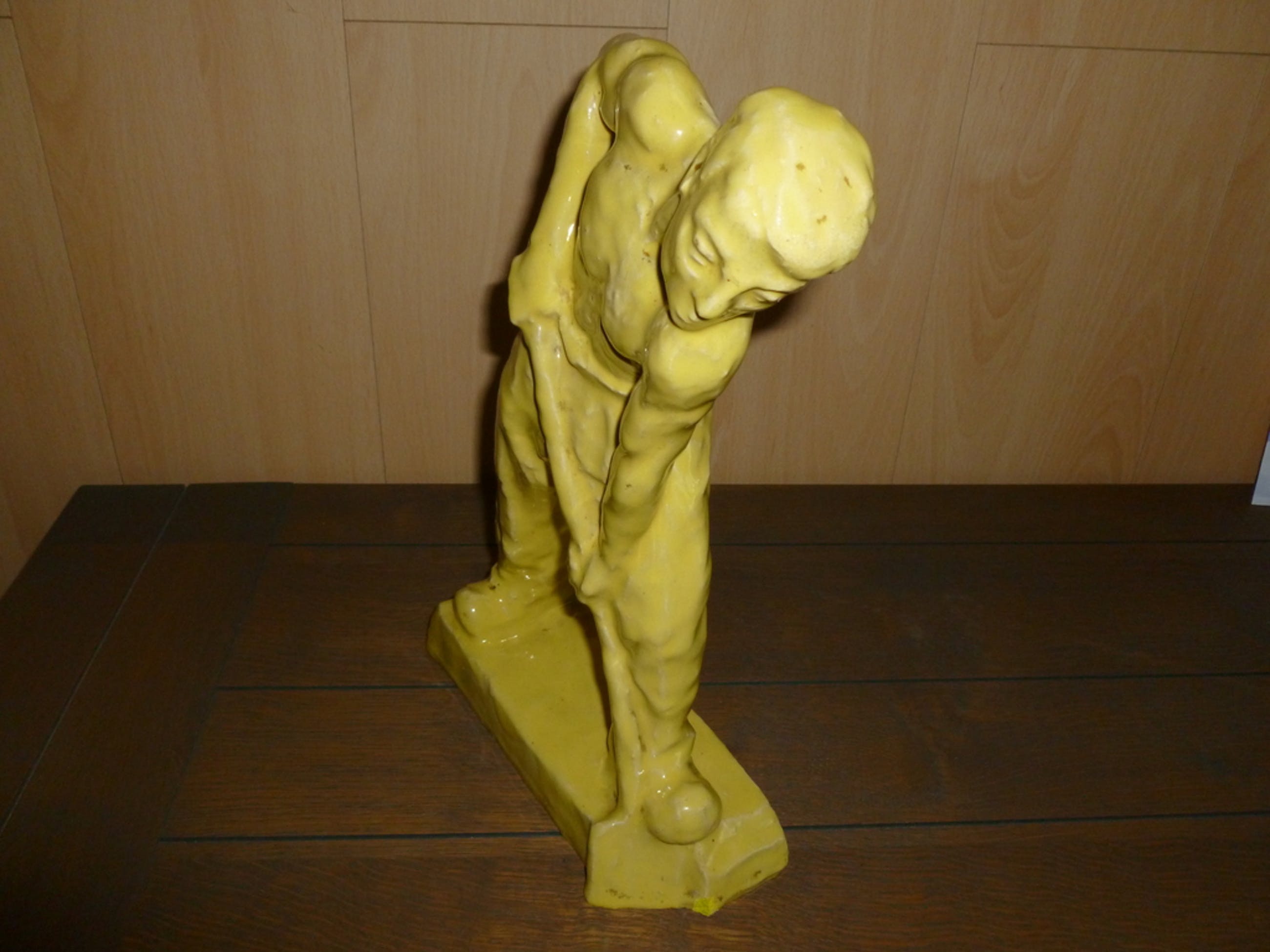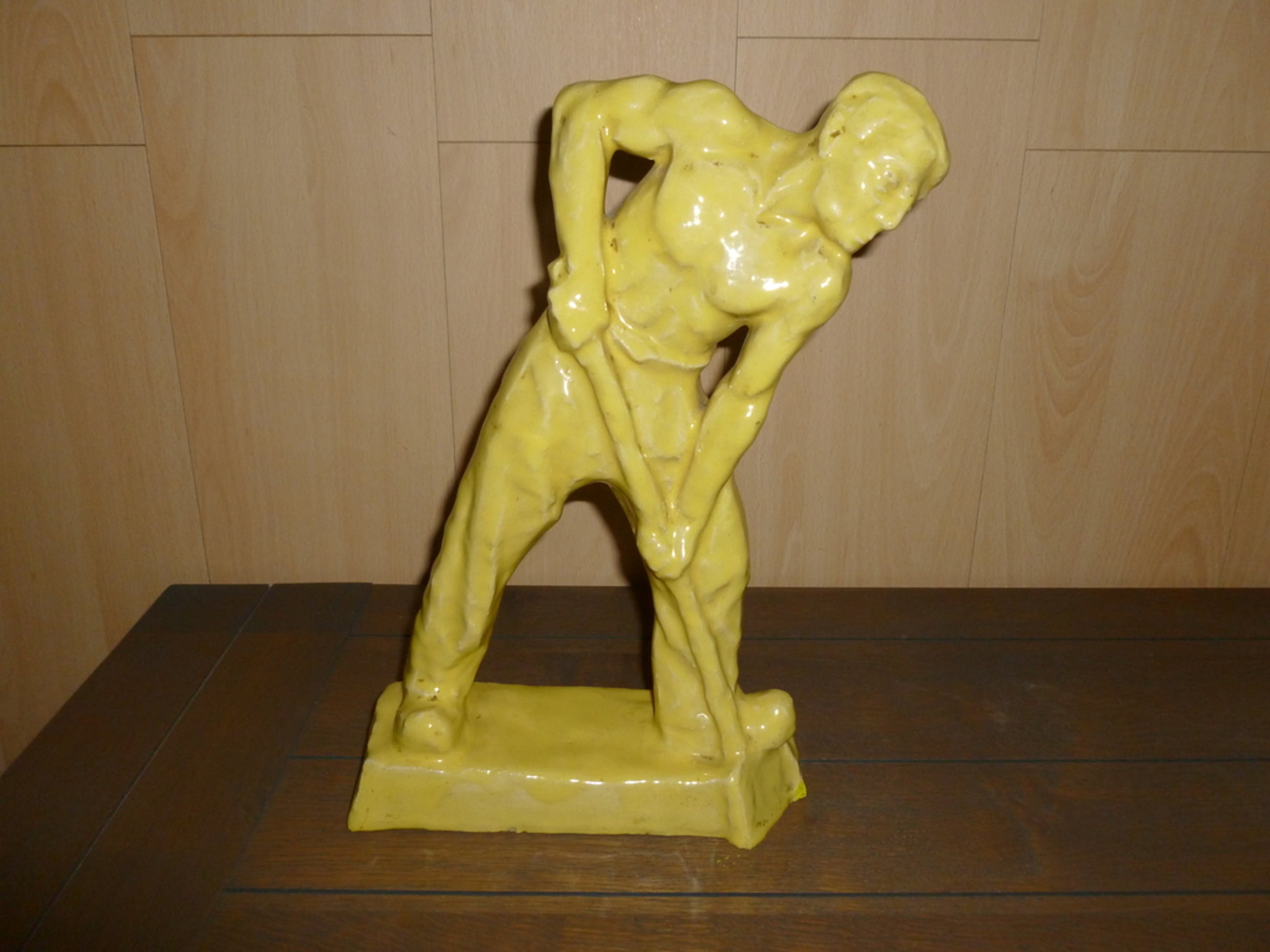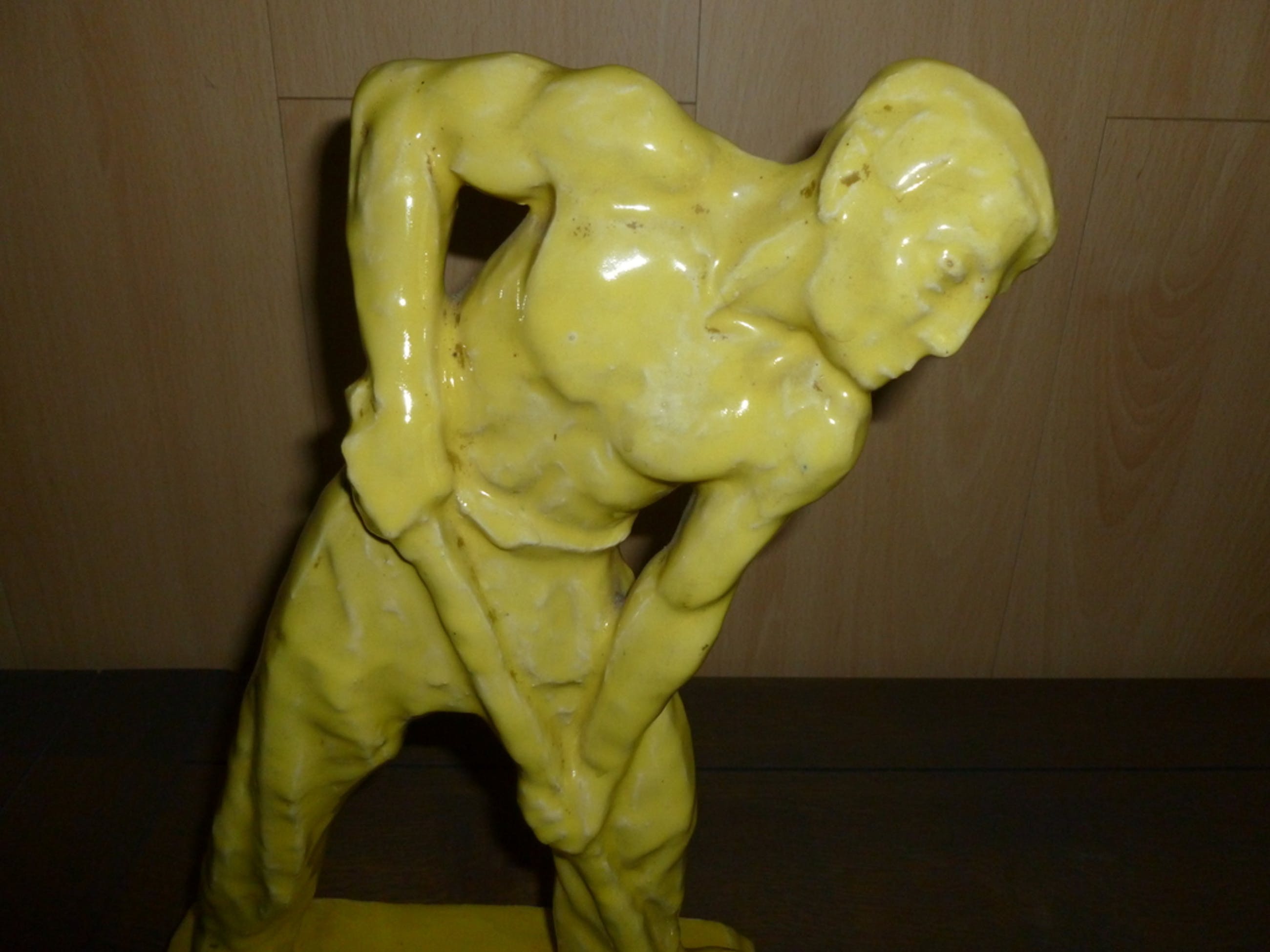 Mooi ontwerp van de Nederlandse beeldende kunstenaar Koos van der Kaay (Leiden 1899-Brugge 1976).Van der Kaay bracht een groot deel van zijn actief leven door in Belgie.Dit mooie ontwerp uit 1932 is gedateerd en getekend door de kunstenaar.Buiten een zeer kleine chip aan de rechteronderzijde van de sokkel is dit beeld in prima staat.Afmetingen:34 cm hoog en 22 cm breed.Ophalen is mogelijk,verzending in onderling overleg.