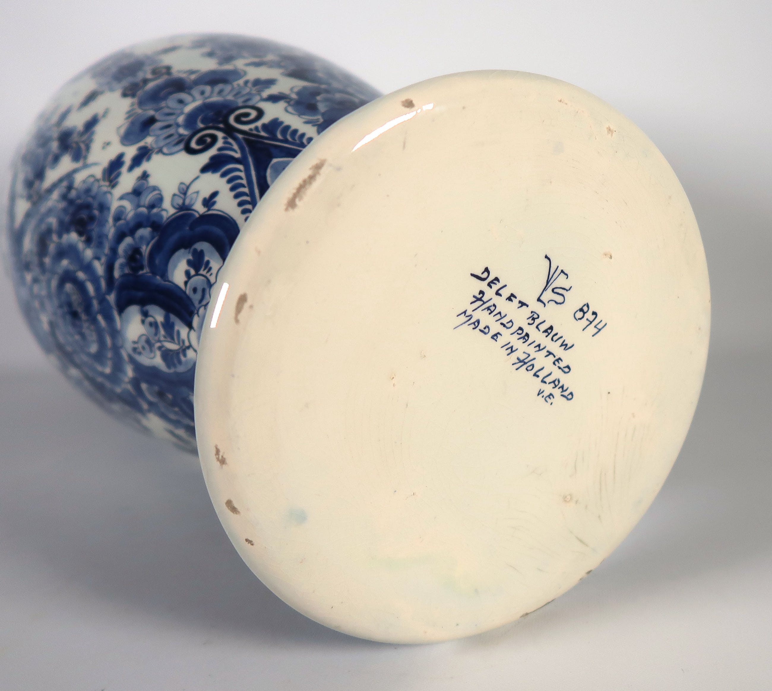 | Er zit craquelé in het glazuur verspreid over de vaas. | |