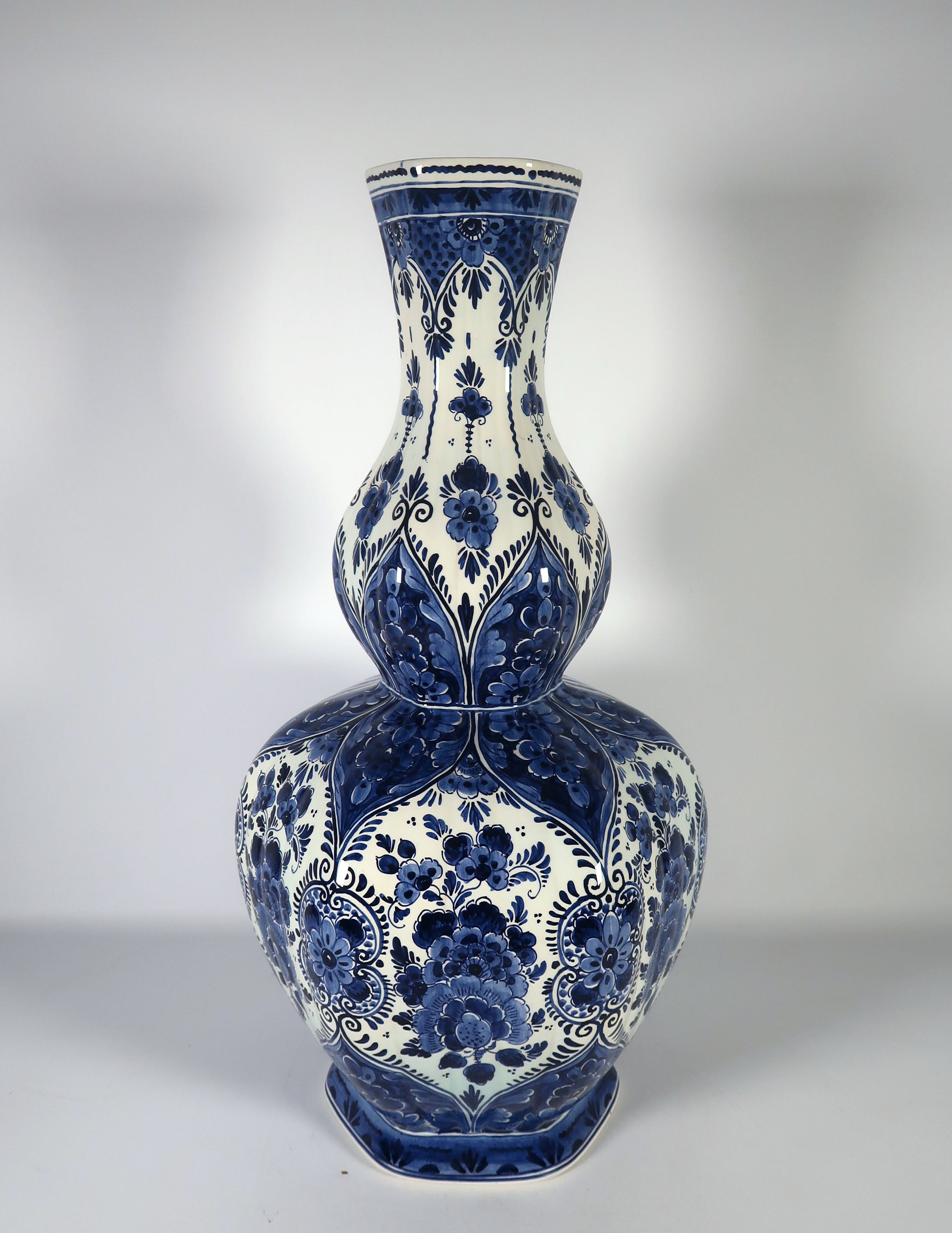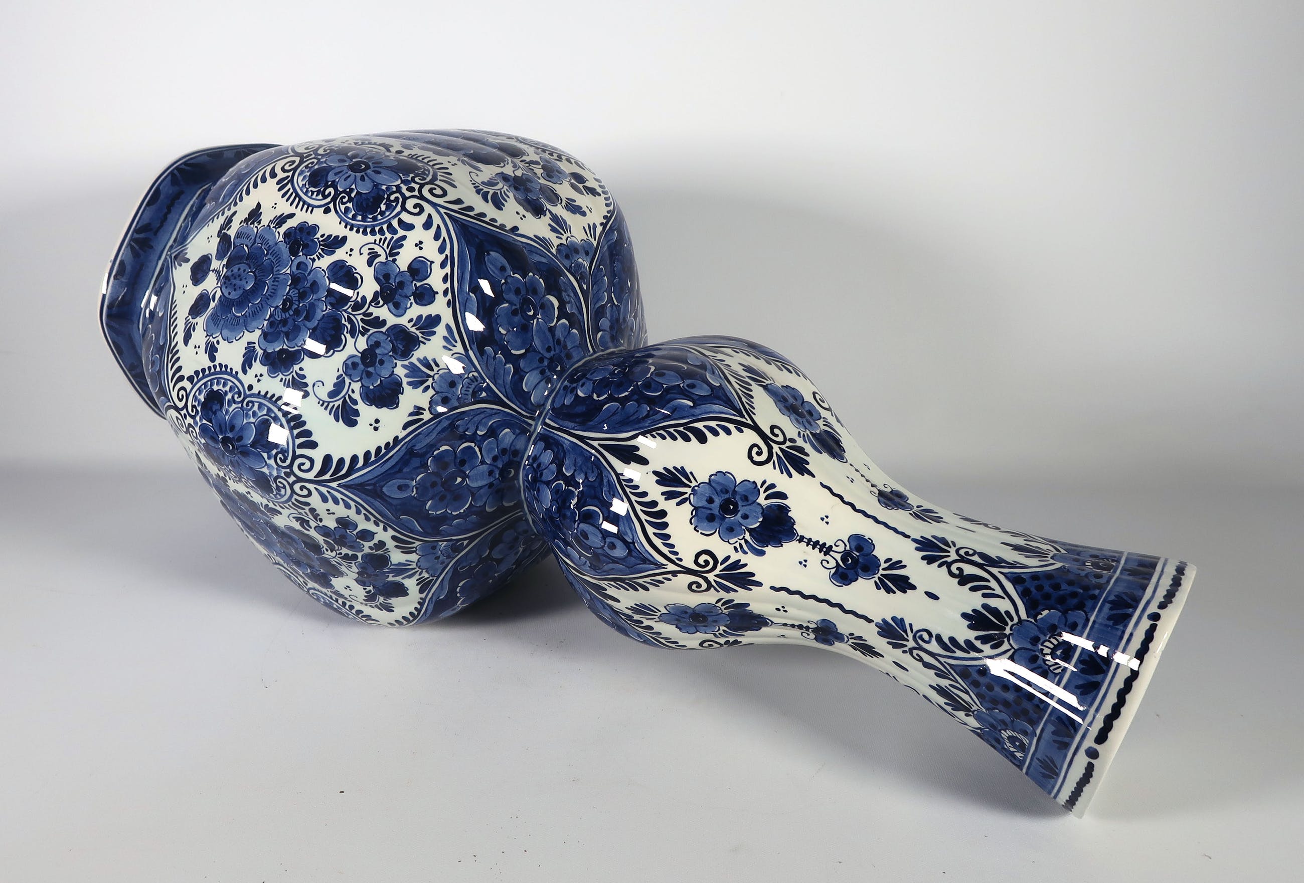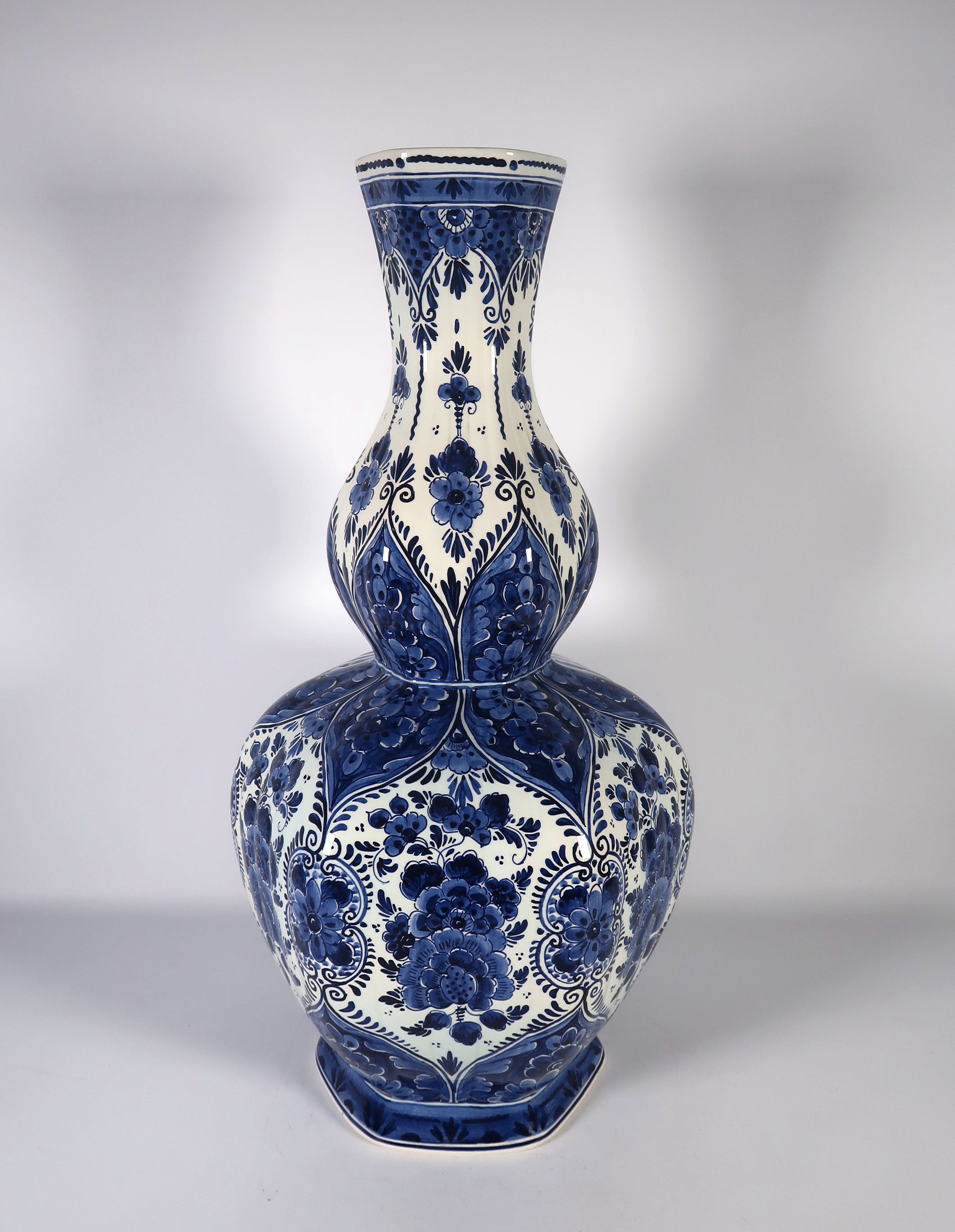 Zeer grote en elegante vaas door Keramiekfabriek Velsen. De vaas is rijkelijk gedecoreerd met bloemen.